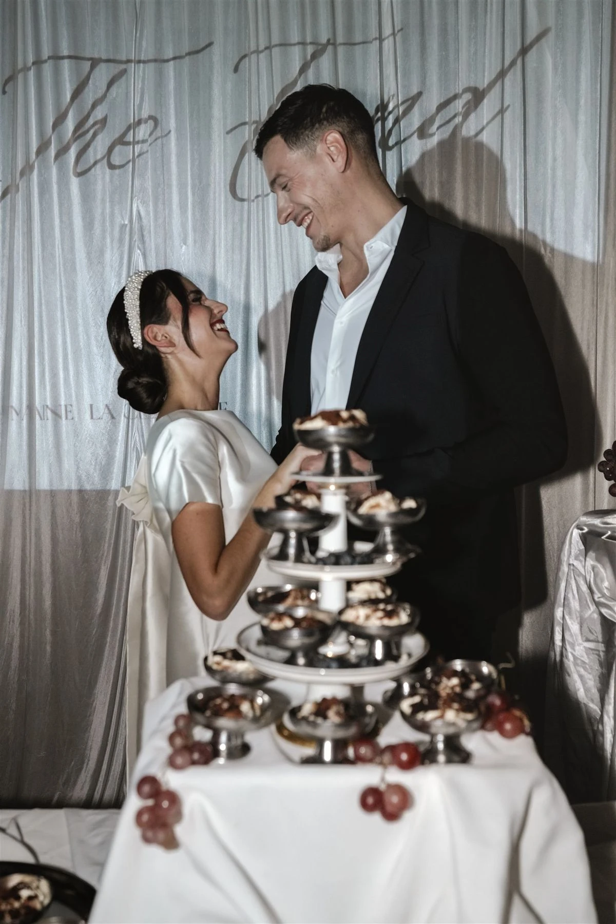 Imaginé comme un mariage chic et raffiné, ce projet met en scène un couple uni par un amour sincère et passionné. Le blanc apporte la lumière, la douceur et la simplicité, tandis que le bordeaux révèle une dimension plus intense, symbole de passion, de maturité et d’émotion.
