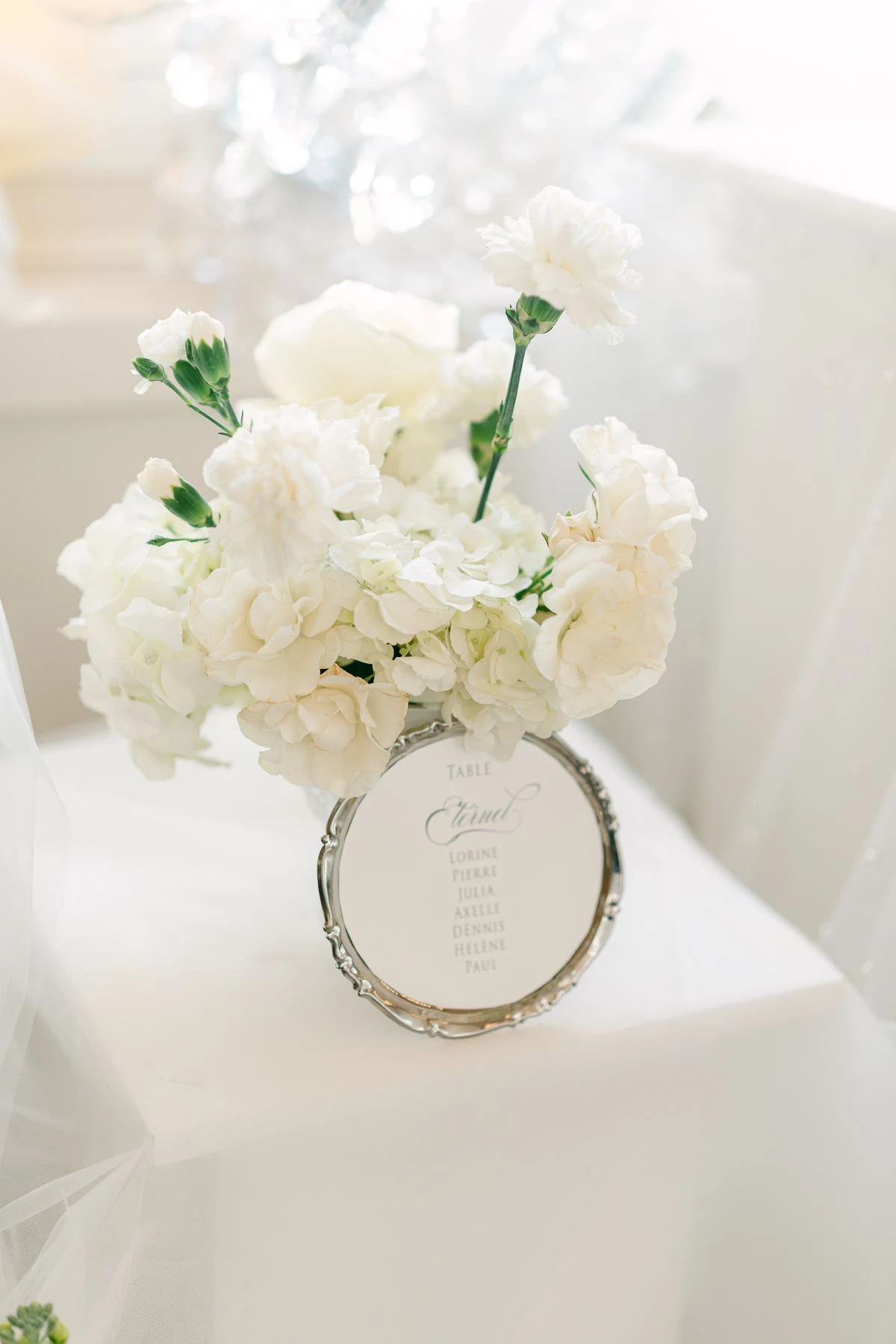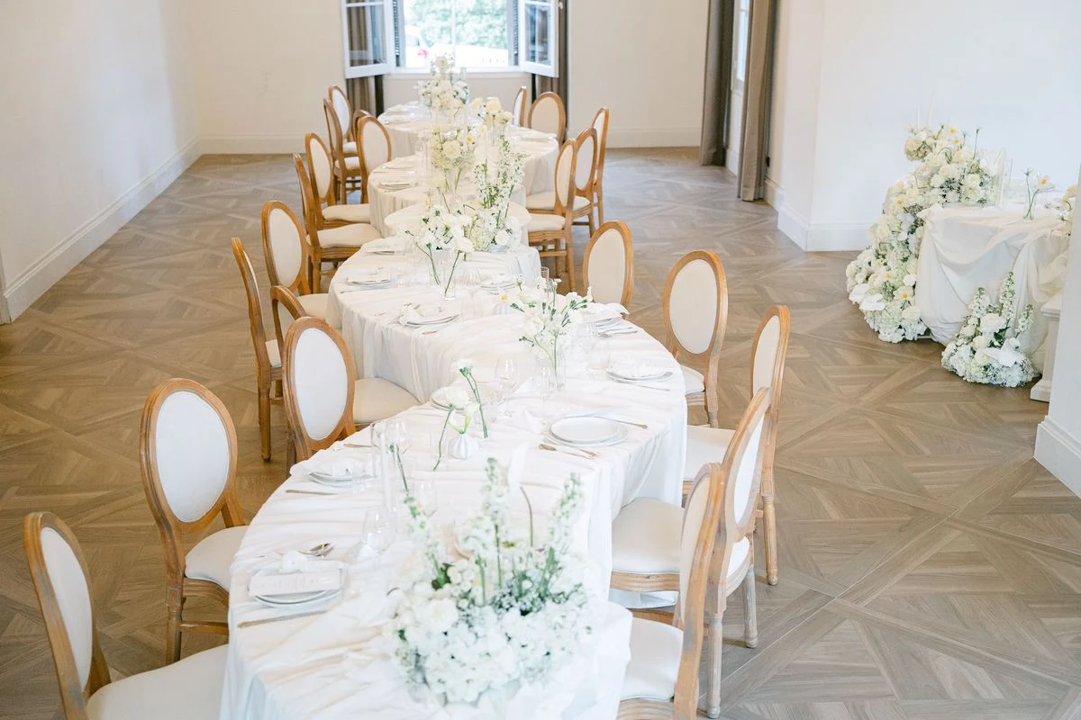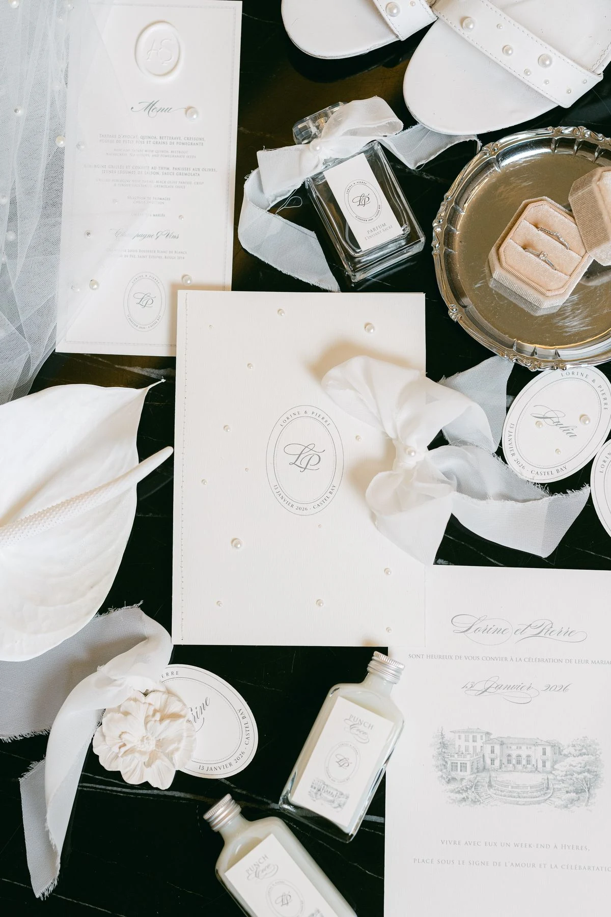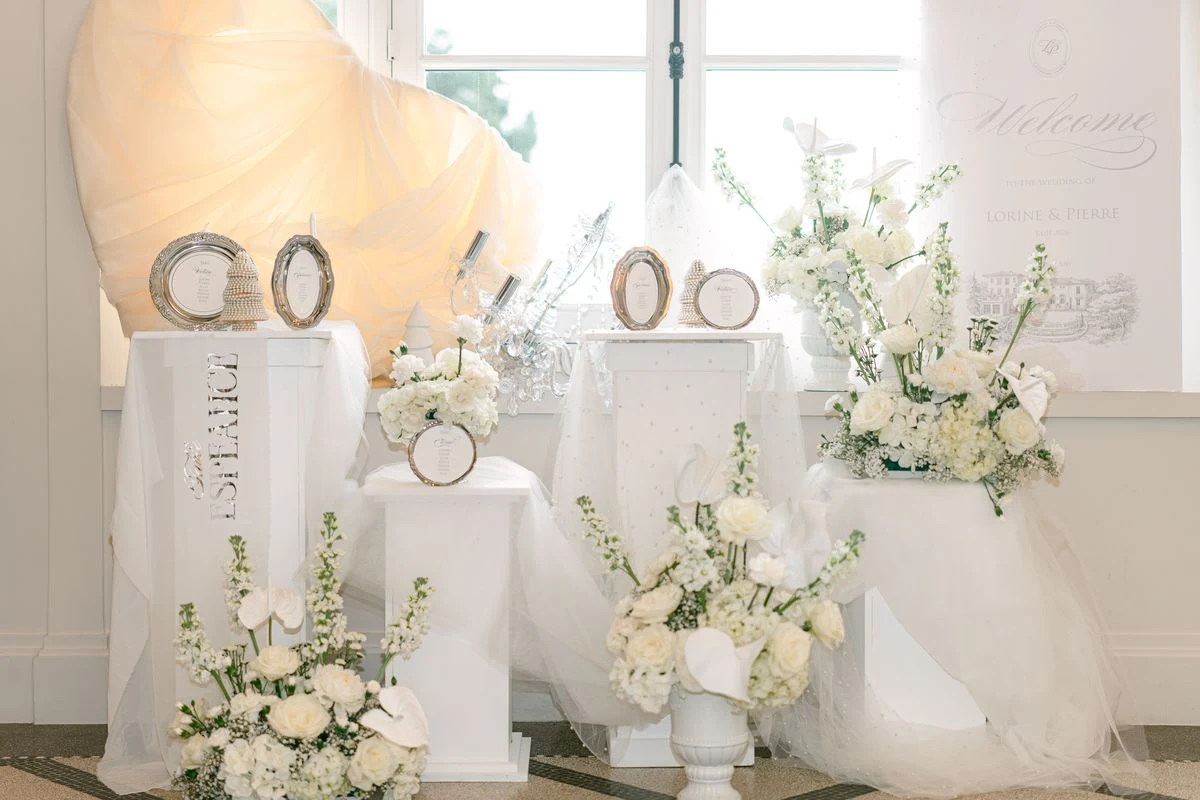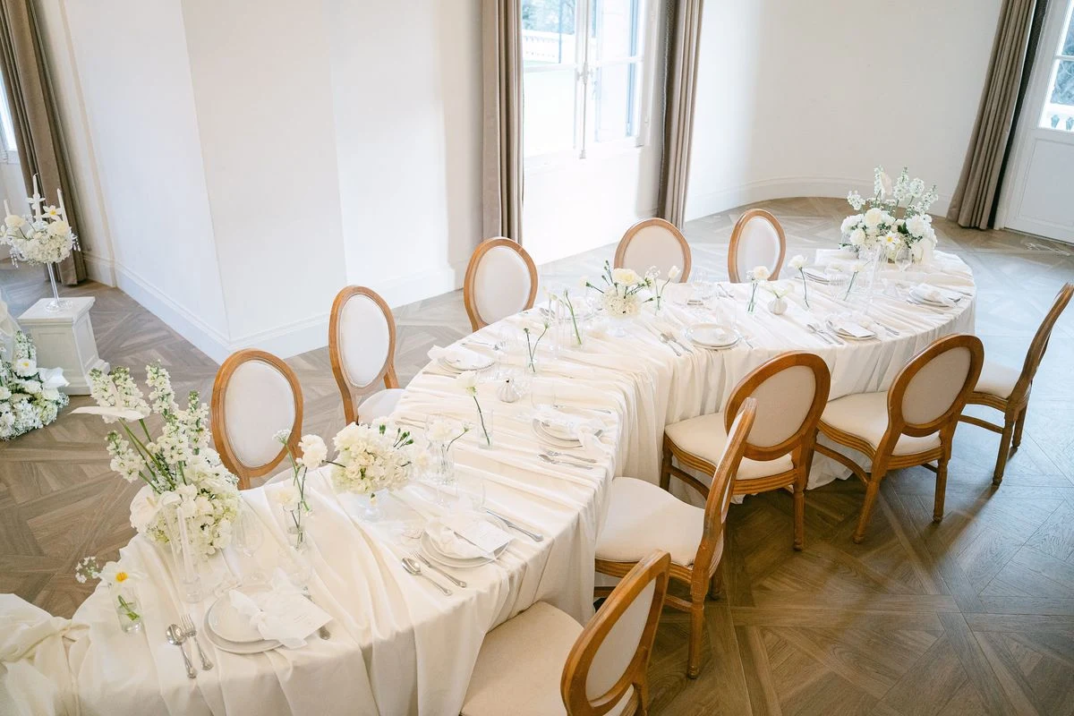 J’ai eu la chance de rencontrer Julie du Castel Bay, qui m’a donné l’opportunité d’organiser et de sublimer un shooting éditorial à l’intérieur du lieu en plein hiver. L’idée était simple : montrer qu’un mariage ne se limite pas à une saison, et que l’on peut créer une atmosphère tout aussi magique en intérieur. Une ambiance plus intime, plus chaleureuse, où chaque détail vient sublimer le lieu et raconter une nouvelle vision du mariage hivernal. Pour cette inspiration, nous avons imaginé une palette autour du blanc nacré, relevée par quelques touches d’argenté, pour apporter de la lumière, de l’élégance et une dimension presque intemporelle à l’ensemble. Chaque détail a été pensé pour créer une ambiance douce, élégante, et lumineuse.