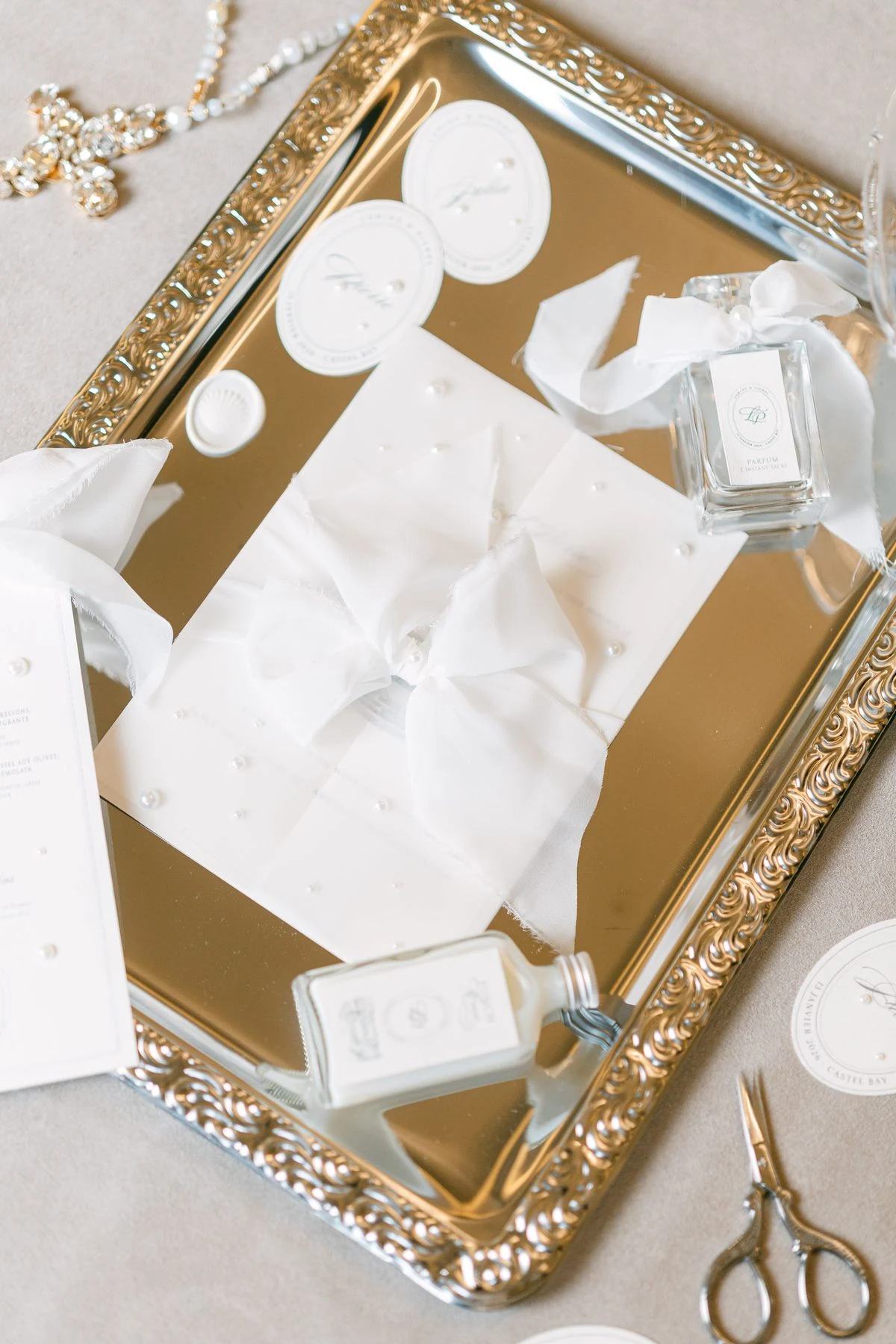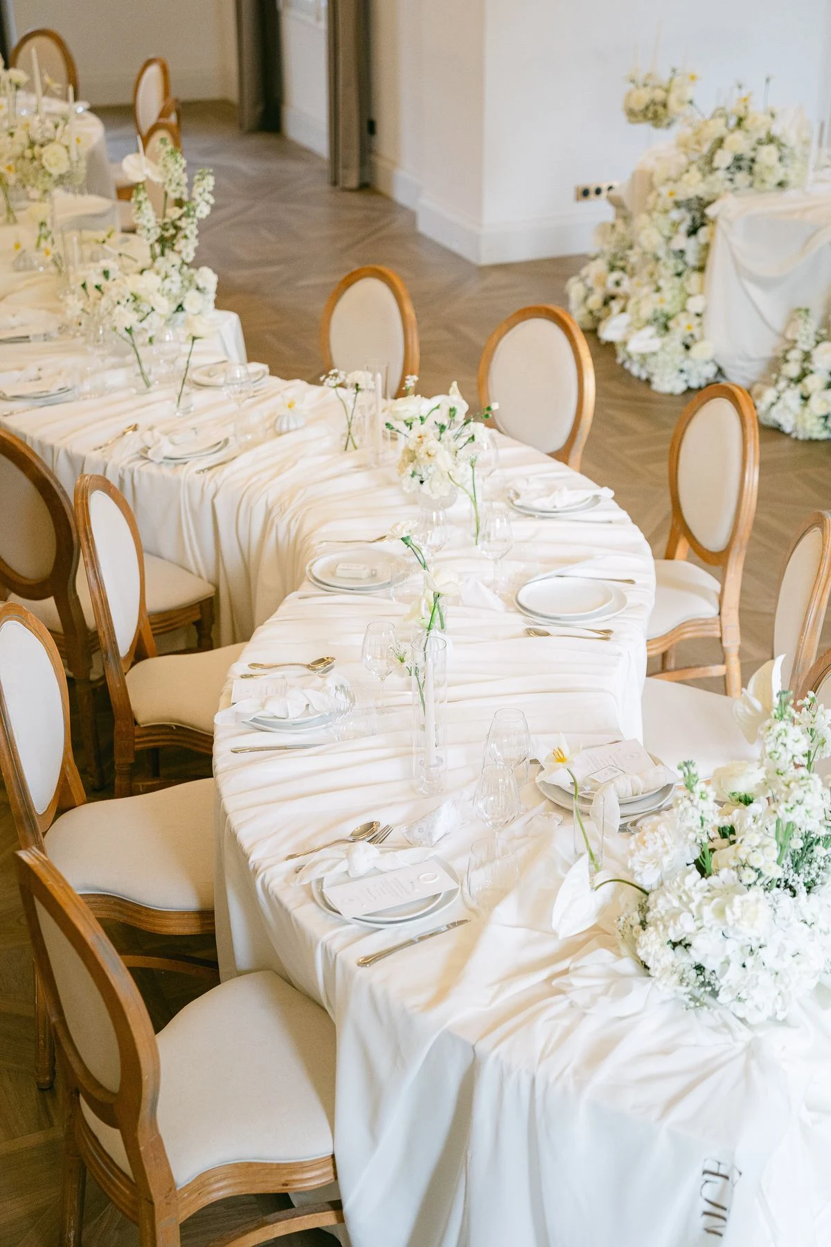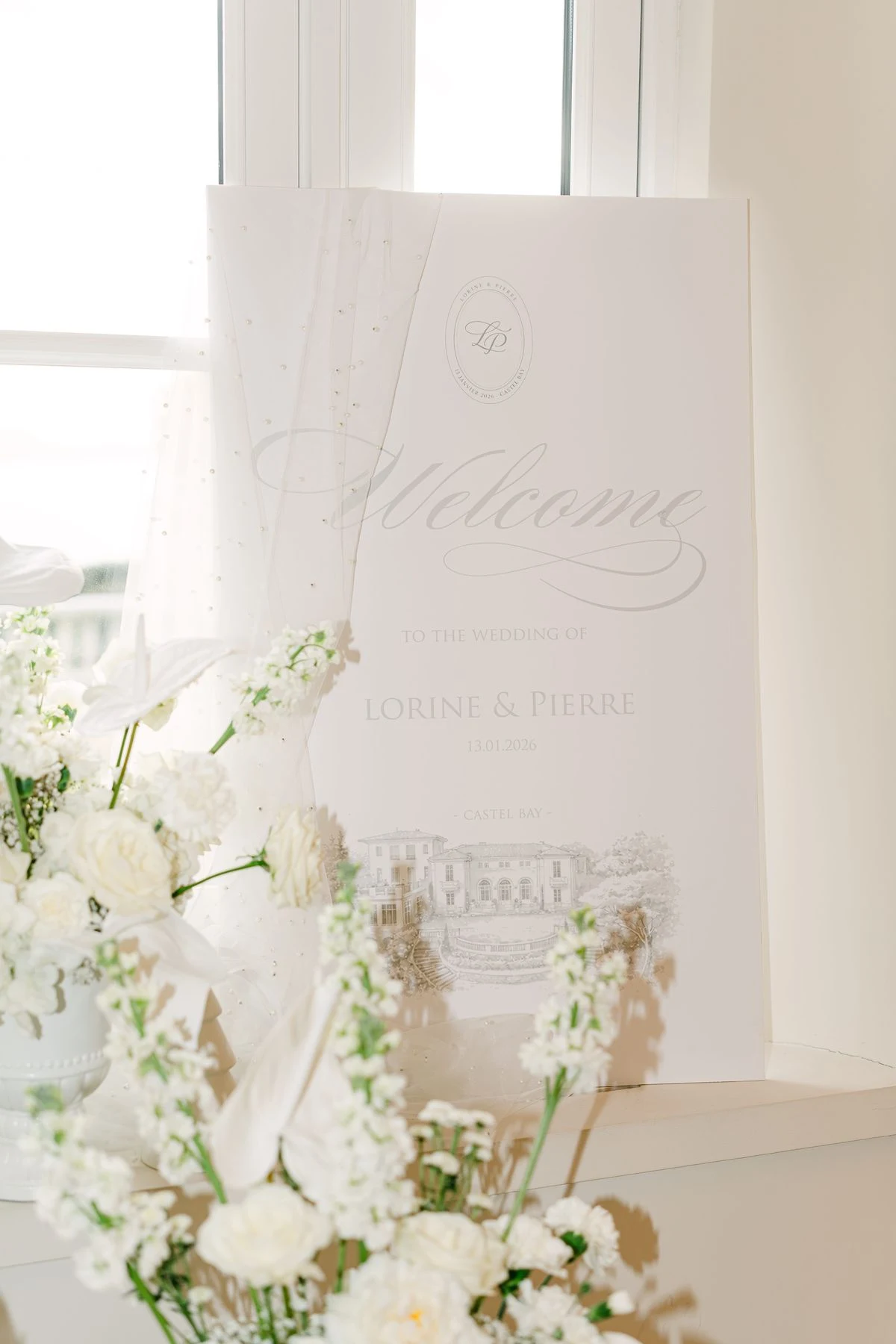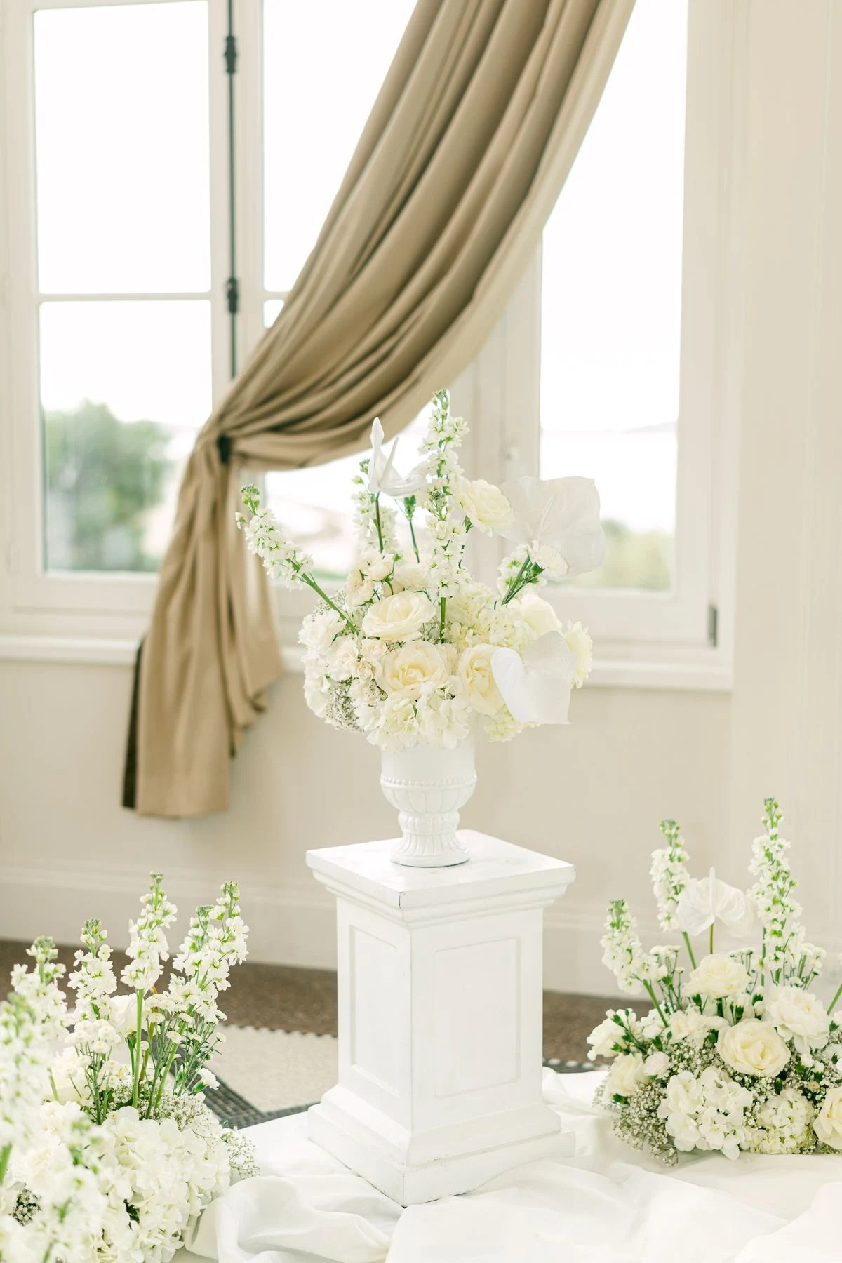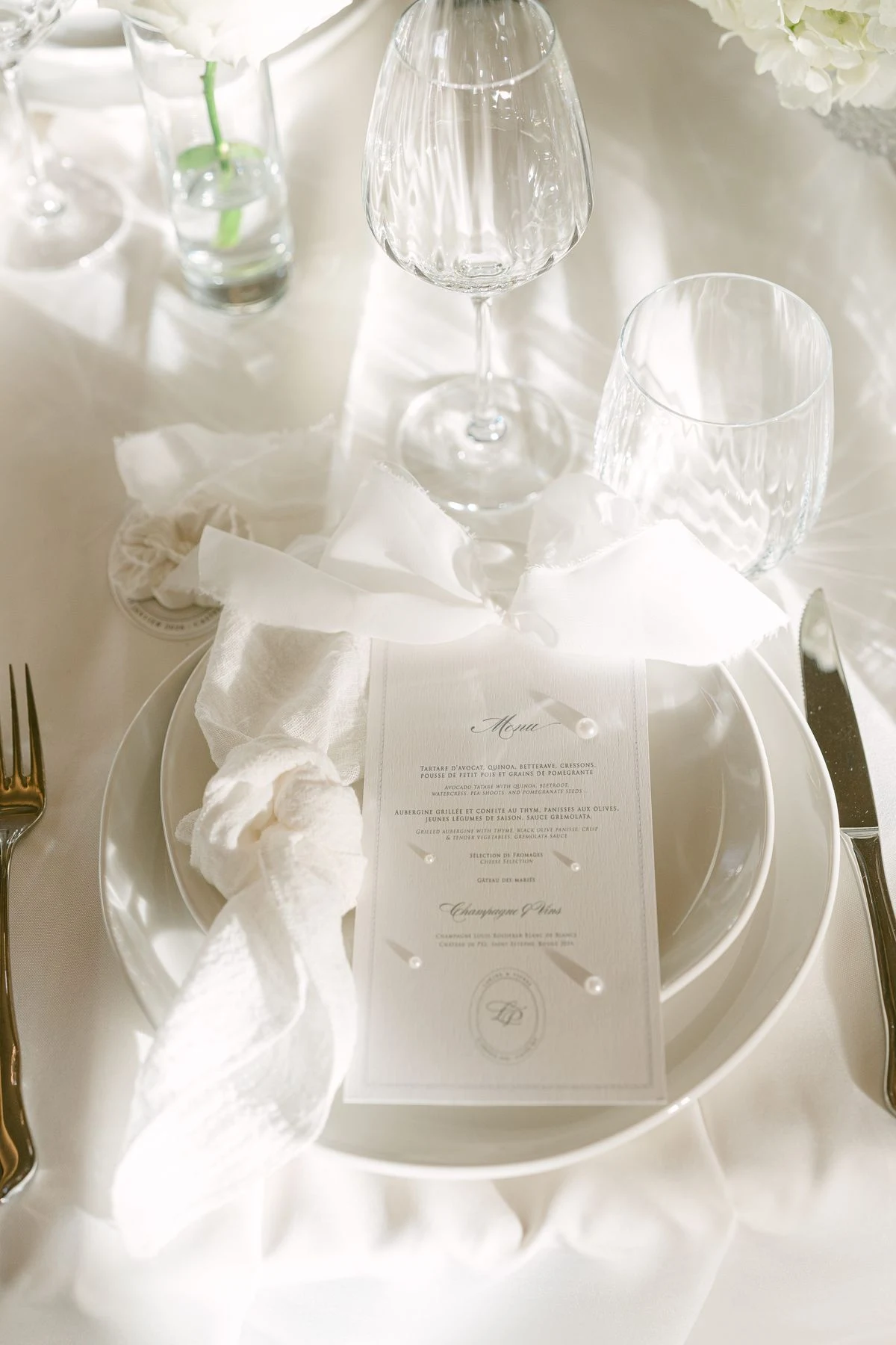 J’ai eu la chance de rencontrer Julie du Castel Bay, qui m’a donné l’opportunité d’organiser et de sublimer un shooting éditorial à l’intérieur du lieu en plein hiver. L’idée était simple : montrer qu’un mariage ne se limite pas à une saison, et que l’on peut créer une atmosphère tout aussi magique en intérieur. Une ambiance plus intime, plus chaleureuse, où chaque détail vient sublimer le lieu et raconter une nouvelle vision du mariage hivernal. Pour cette inspiration, nous avons imaginé une palette autour du blanc nacré, relevée par quelques touches d’argenté, pour apporter de la lumière, de l’élégance et une dimension presque intemporelle à l’ensemble. Chaque détail a été pensé pour créer une ambiance douce, élégante, et lumineuse.
