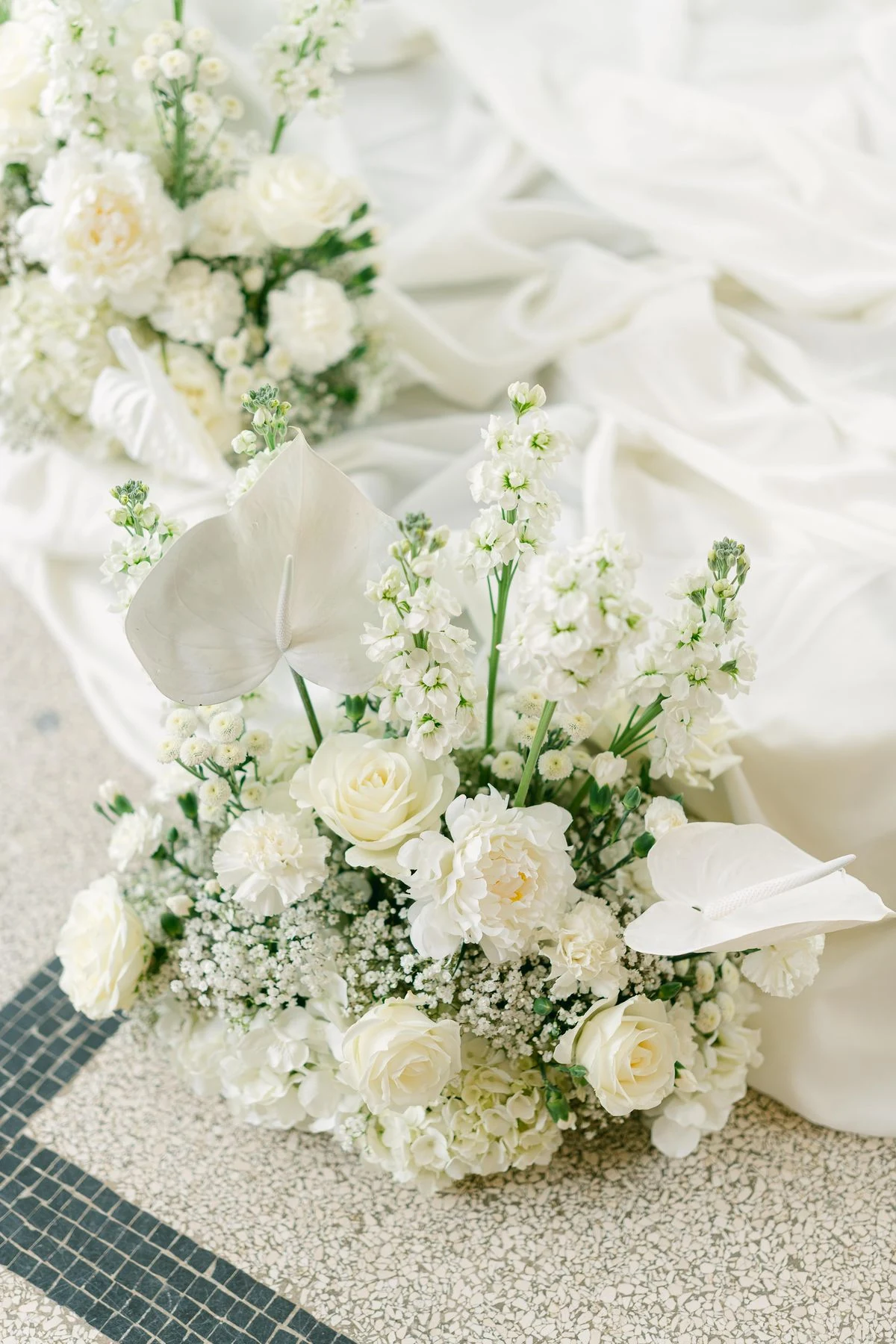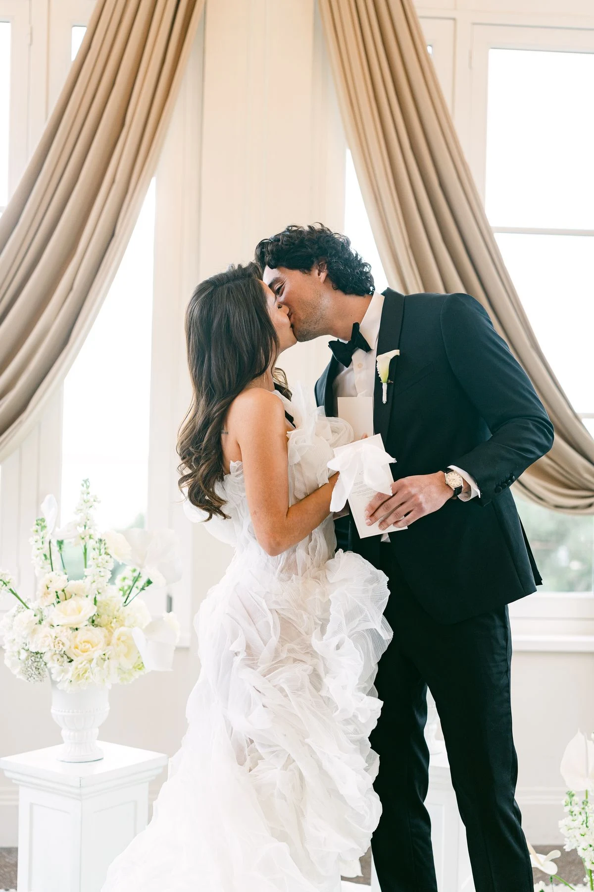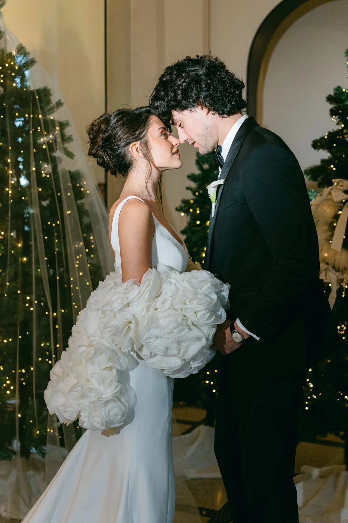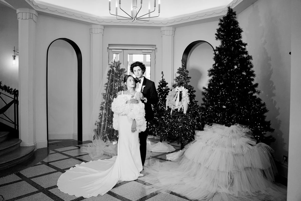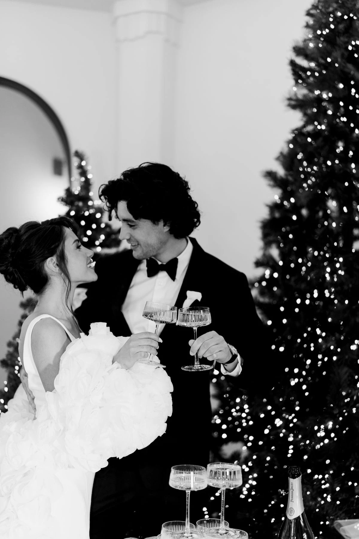 J’ai eu la chance de rencontrer Julie du Castel Bay, qui m’a donné l’opportunité d’organiser et de sublimer un shooting éditorial à l’intérieur du lieu en plein hiver. L’idée était simple : montrer qu’un mariage ne se limite pas à une saison, et que l’on peut créer une atmosphère tout aussi magique en intérieur. Une ambiance plus intime, plus chaleureuse, où chaque détail vient sublimer le lieu et raconter une nouvelle vision du mariage hivernal. Pour cette inspiration, nous avons imaginé une palette autour du blanc nacré, relevée par quelques touches d’argenté, pour apporter de la lumière, de l’élégance et une dimension presque intemporelle à l’ensemble. Chaque détail a été pensé pour créer une ambiance douce, élégante, et lumineuse.