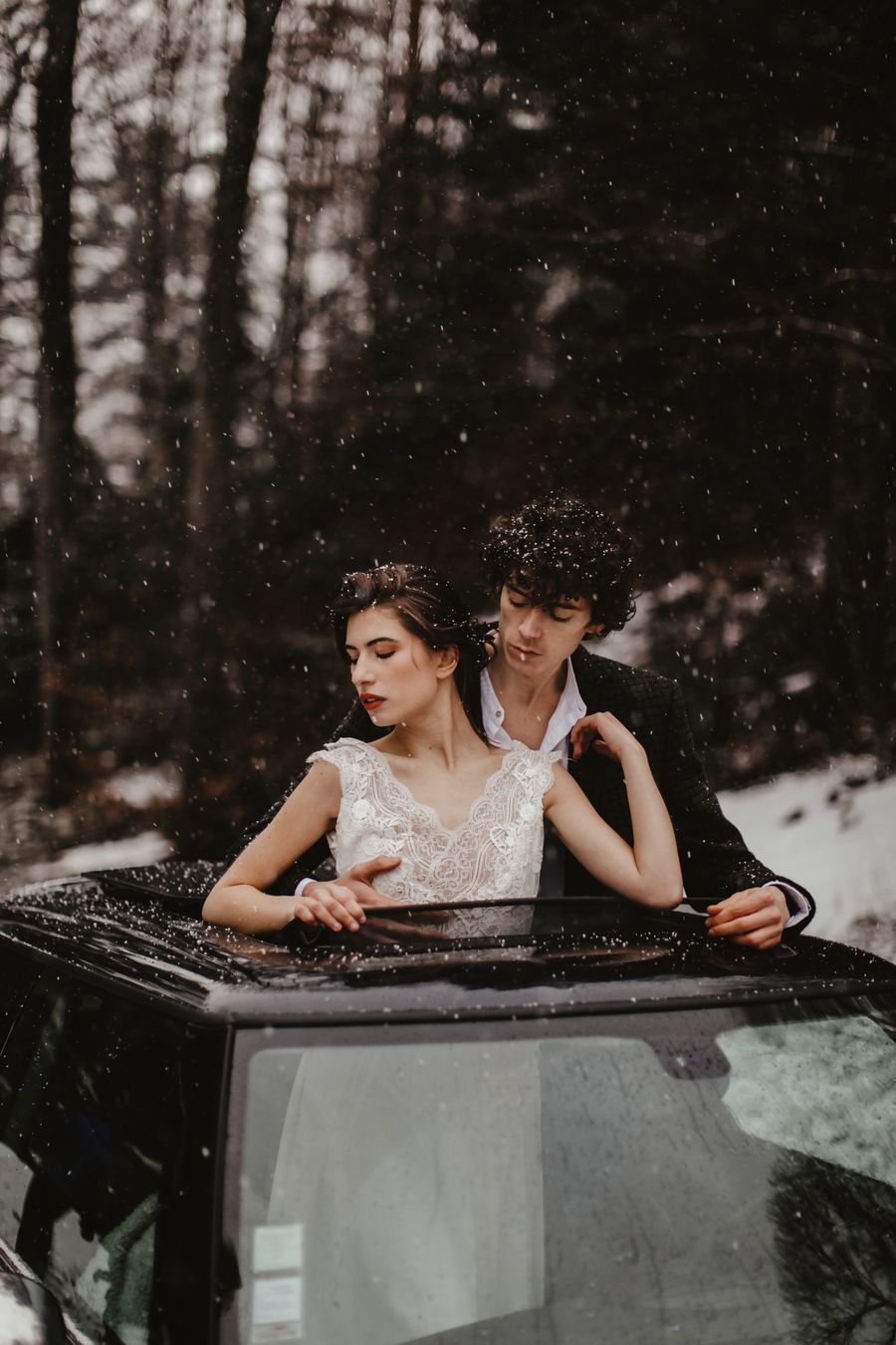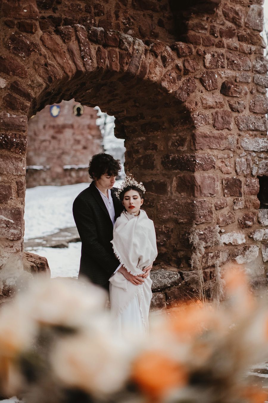 Découvrez les images de ce shooting enneigé, intitulé « Un mariage boho avec une touche médiévale ».