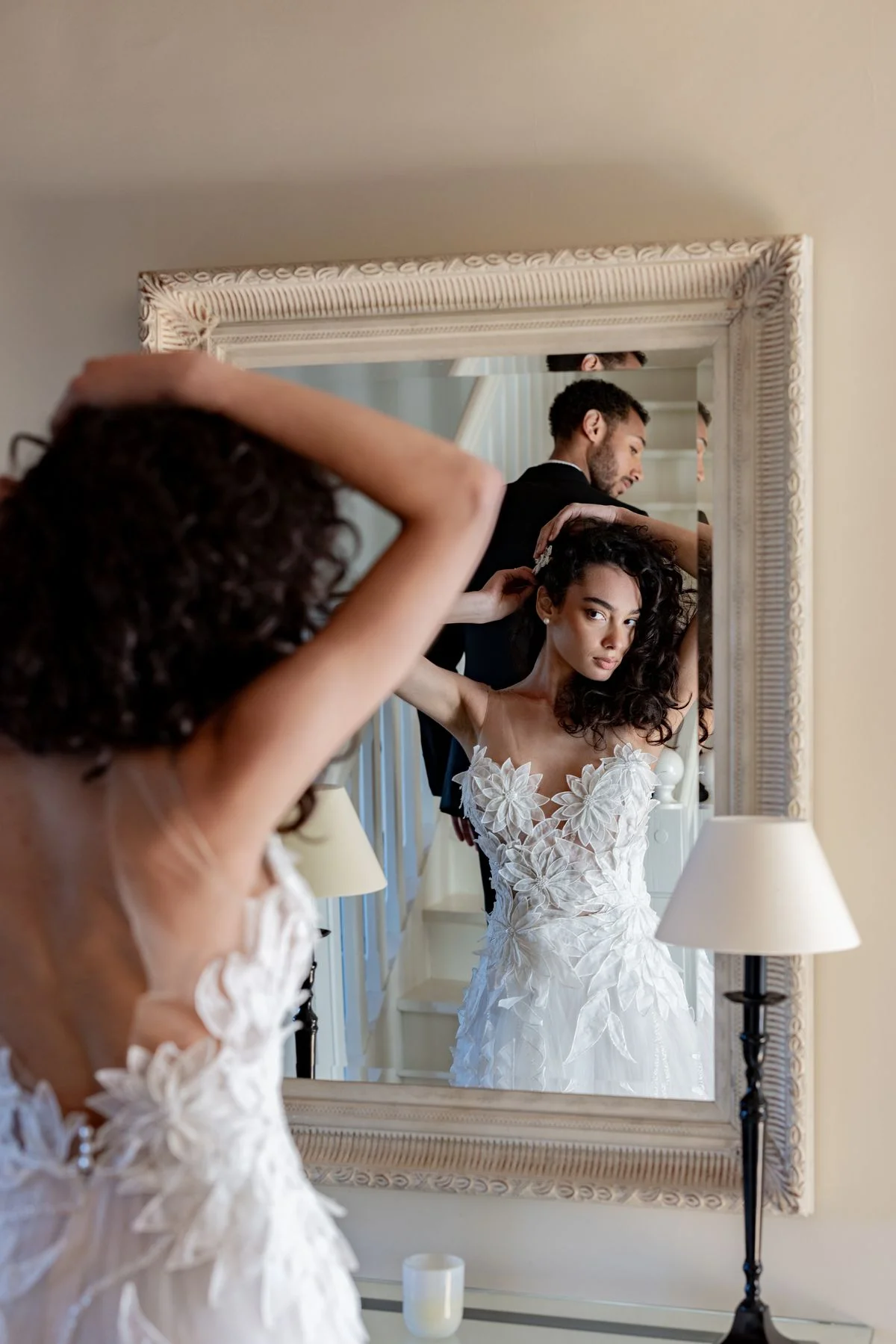Nous avons imaginé une histoire touchante et personnelle, celle d’Anissa et Alexandre, dont nous vous présentons le bonheur en images. Ils se sont rencontrés en Provence, un lieu empreint de lumière et de romance, il y a trois ans lors des derniers jours de l’été. Trois ans plus tard, ils ont choisi de revenir dans ces terres idylliques pour célébrer leur union, entourés de leurs proches. Le cadre de ce mariage, intime et romantique, est rempli de souvenirs et de promesses. Nous avons minutieusement travaillé pour recréer l’atmosphère de leur rencontre, en parcourant les ruelles pavées, témoins de leurs premiers pas ensemble.