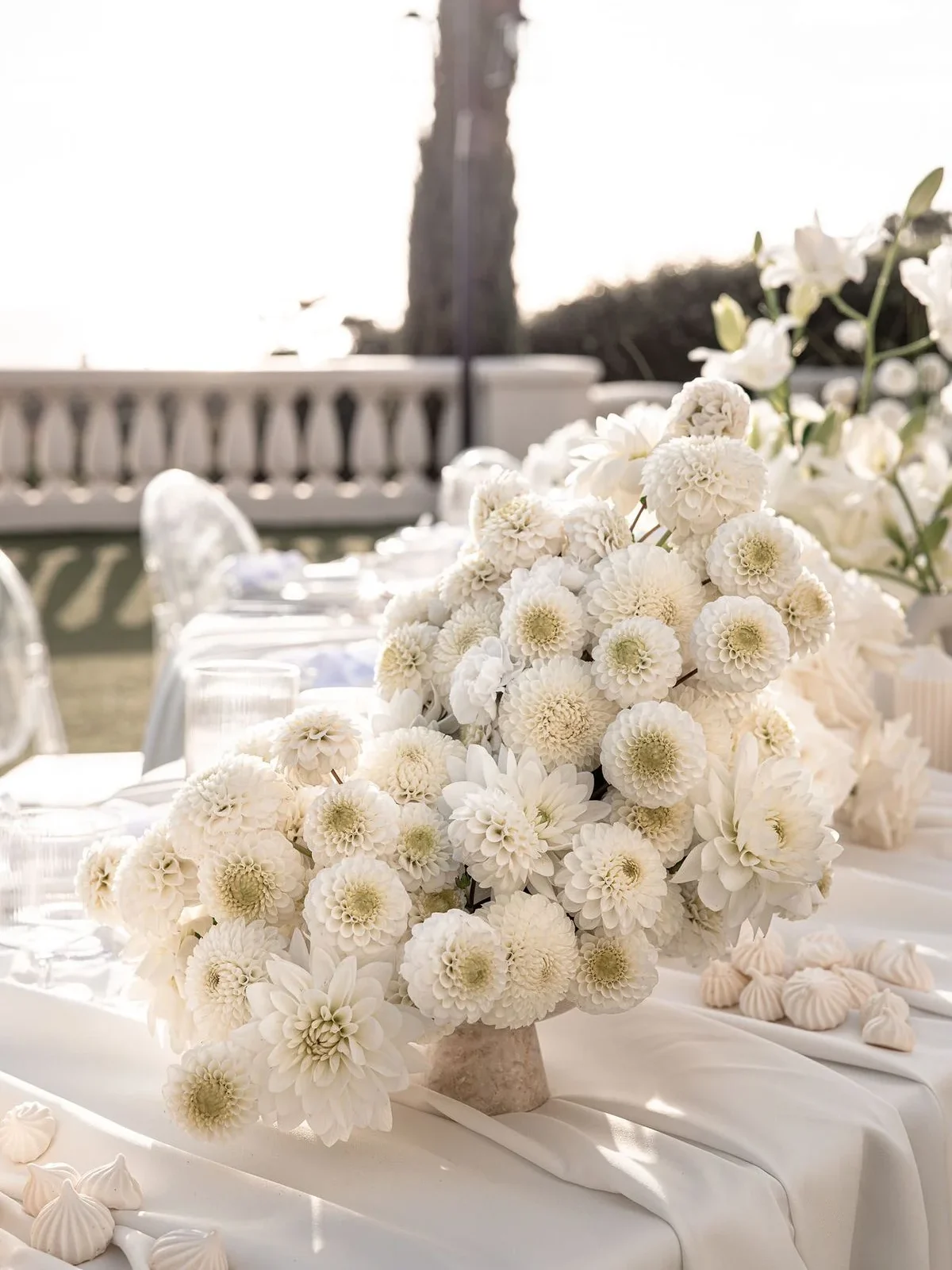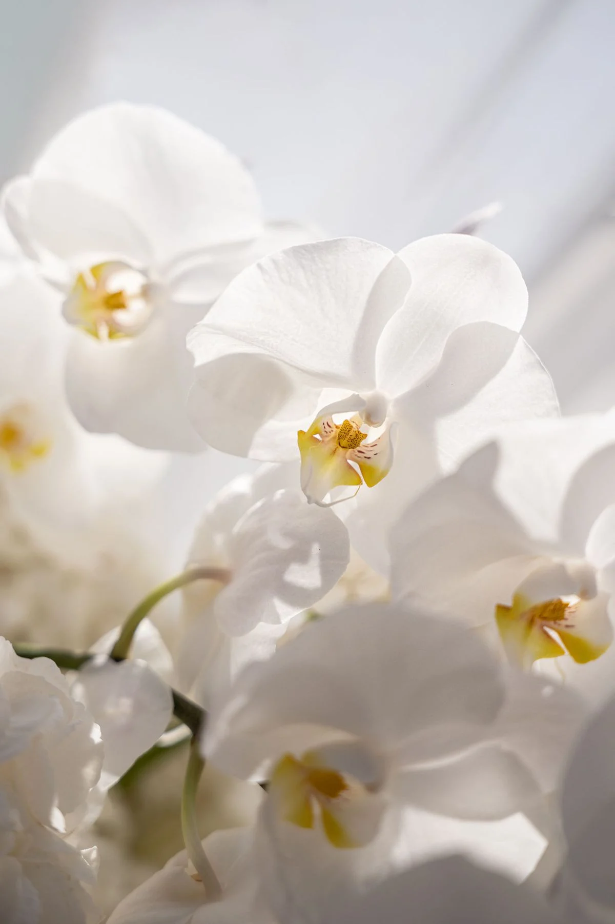 “Les fleurs blanches ajoutent une dimension poétique et symbolique, dans un environnement où la nature est prédominante. C’est justement ces différentes teintes de vert qui viennent bousculer ce monochrome blanc et y rajoutent de l’audace et de la force. L’utilisation de fleurs nobles comme les hortensias, les orchidées et les roses, maintient une esthétique délicate et luxueuse.”