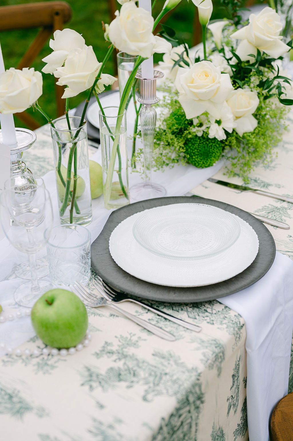 “À travers ce shooting, notre volonté était de revisiter l’univers des mariages « verts », souvent associés à la tendance vert sauge et pampas, en apportant une vision plus audacieuse, raffinée et contemporaine. Nous avons exploré les nuances de vert sous toutes leurs formes, en jouant sur les contrastes, les textures, et en mariant matières brutes et éléments naturels.