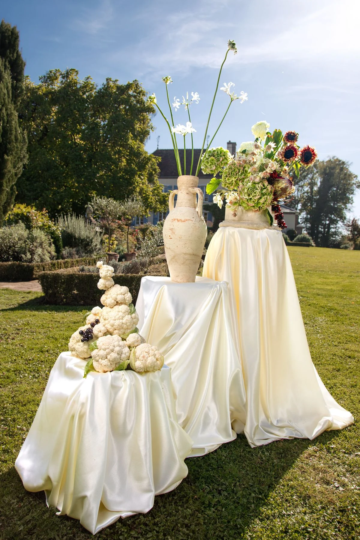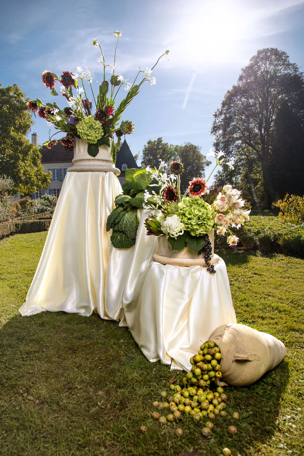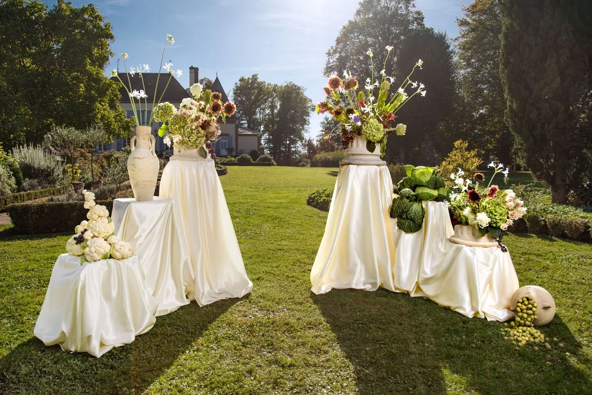 Des drapés fluides comme des silhouettes couture. Des compositions florales sculpturales. La nature comme décor, l’élégance comme langage. Une scénographie entre mode et art.”
