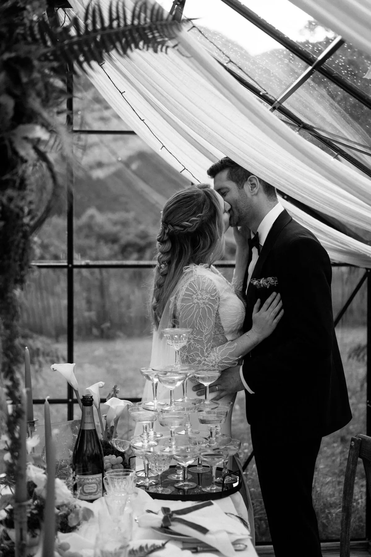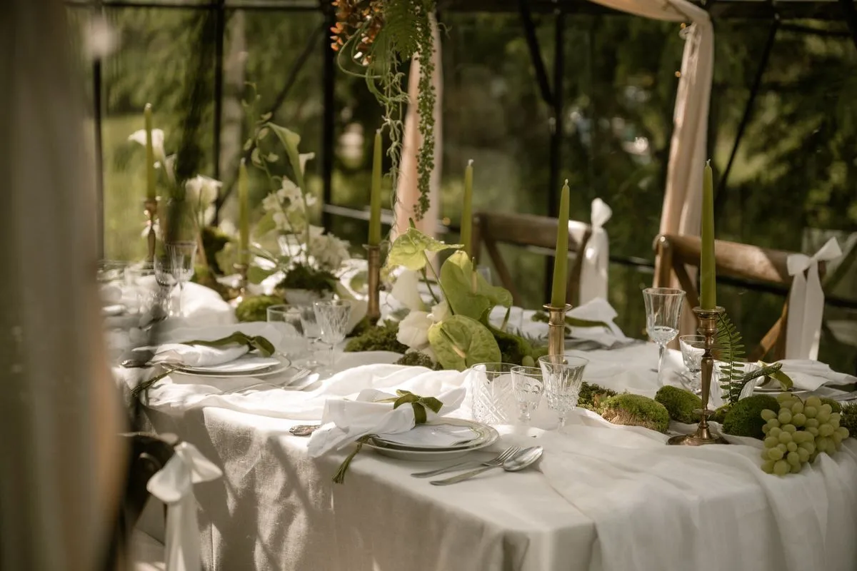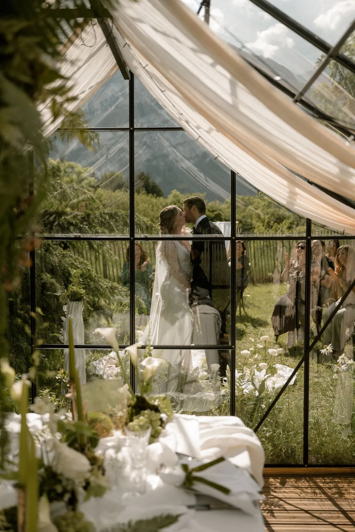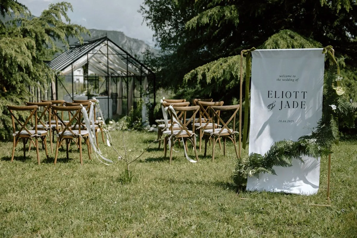 Ce shooting d’inspiration mariage intitulé Wedding Bliss, a été réalisé dans notre studio verrière situé aux portes de Grenoble. Ce lieu unique, baigné de lumière naturelle et entouré de champs, d’arbres et de montagnes, offre une vue imprenable sur les falaises du Vercors et de la Chartreuse. Nous avons souhaité y créer une ambiance moderne et chic, tout en mettant la nature au cœur de l’événement. Les tons verts lumineux choisis pour ce shooting s’harmonisent avec le décor naturel environnant, illustrant comment un mariage peut être à la fois élégant et profondément ancré dans son environnement.
