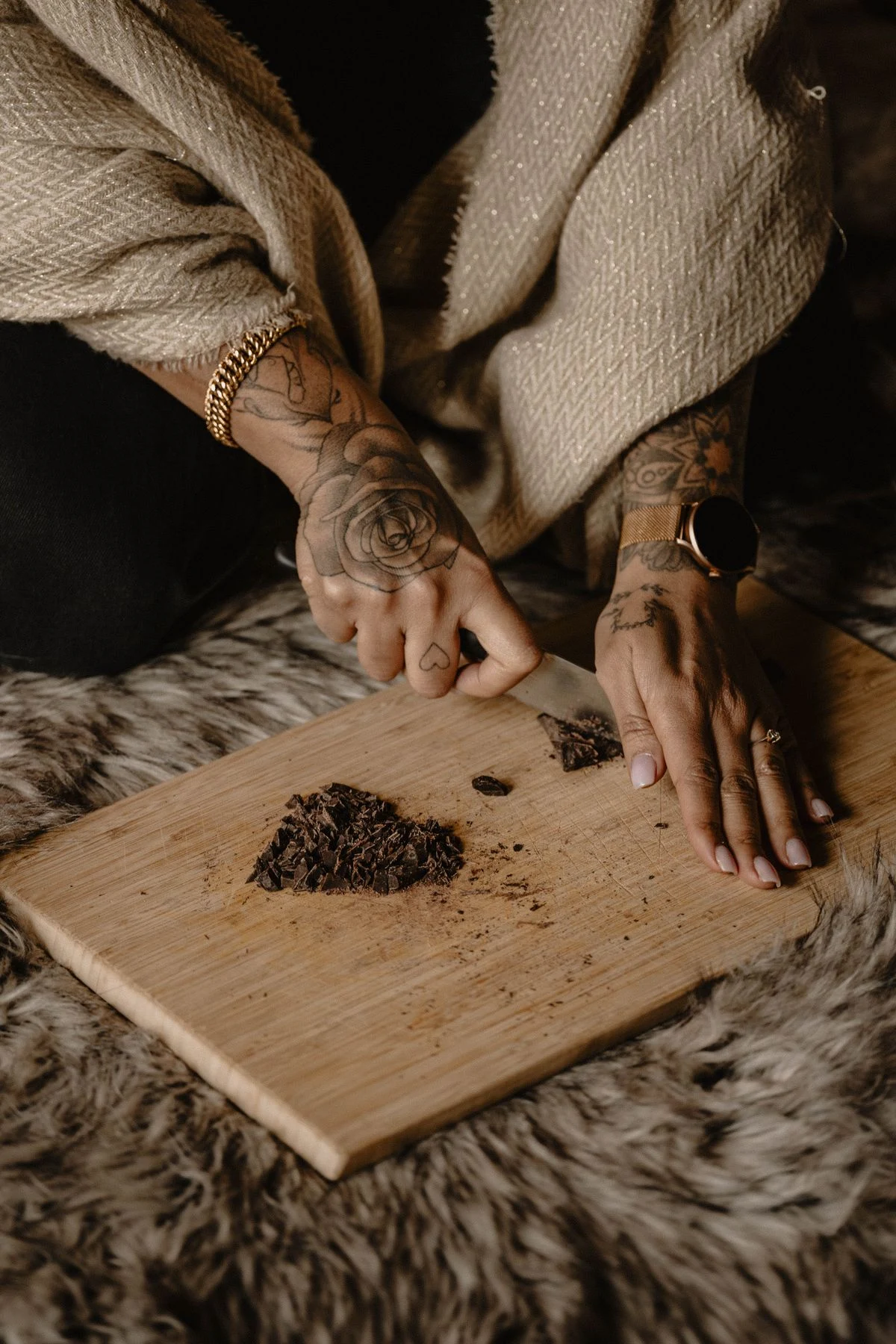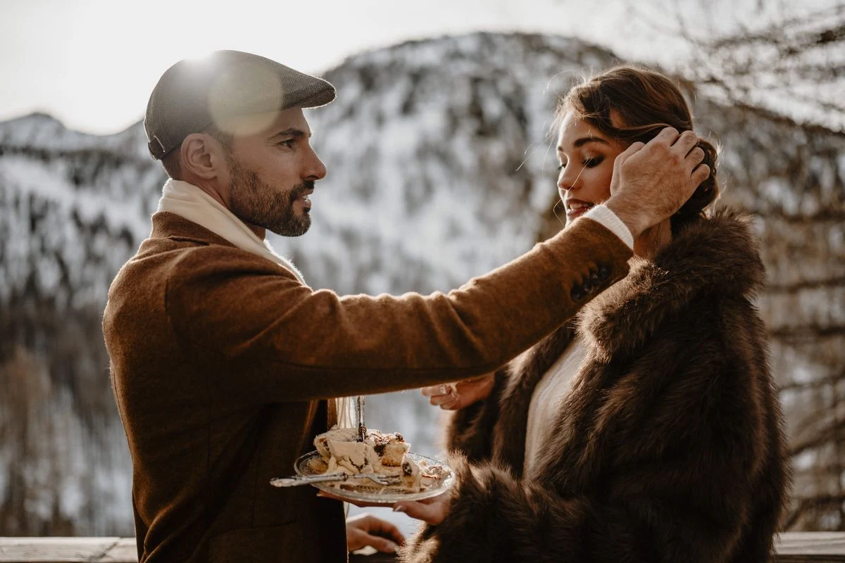 “Avant la célébration, le couple se retrouve dans l’intimité du chalet pour vivre une séquence symbolique : une cérémonie du cacao, rituel ancestral issu des traditions méso-américaines (que j’ai eu l’occasion de pratiquer moi même), pour se déposer, poser une intention, s’ancrer à deux, hors du regard extérieur. Puis, un moment d’accueil des proches que j’ai nommé Tea & Delights : une alternative élégante et chaleureuse au traditionnel welcome dinner. Le format goûter d’hiver, raffiné et cocooning, permet aux futurs mariés de se reposer réellement la veille, tout en partageant un temps doux avec ceux qu’ils aiment. Cette première partie souligne une vision du mariage centrée sur la qualité de présence et d’émotion partagée.”