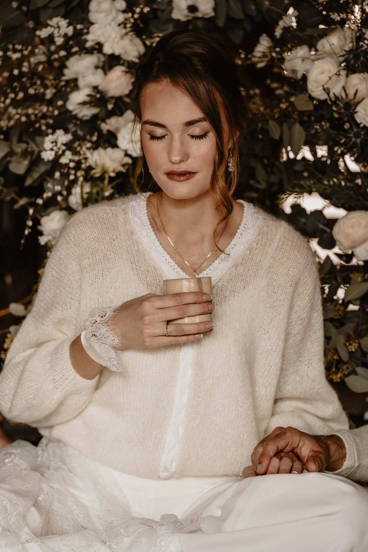 “À travers mes projets, j’ai à cœur de tisser des passerelles entre rituels symboliques ancestraux et vision contemporaine du mariage. Je crois que l’union peut être à la fois intime, spirituelle et résolument moderne : un moment qui honore ce qui nous précède, tout en restant profondément libre, incarné et aligné avec notre époque. Imbolc incarne ce passage subtil, au cœur de l’hiver, où la lumière renaît. Une fête de transition, de recommencement, d’intention. À mes yeux, une métaphore parfaite pour un mariage slow et sensible, une union choisie en conscience, même lorsque tout semble encore figé autour de soi.”