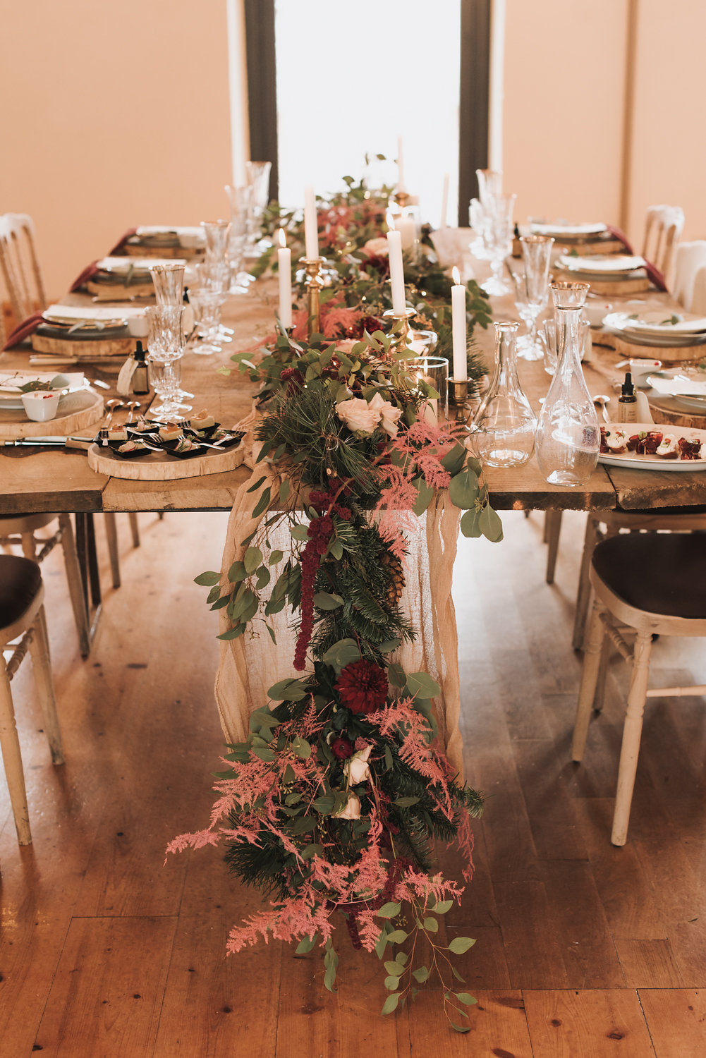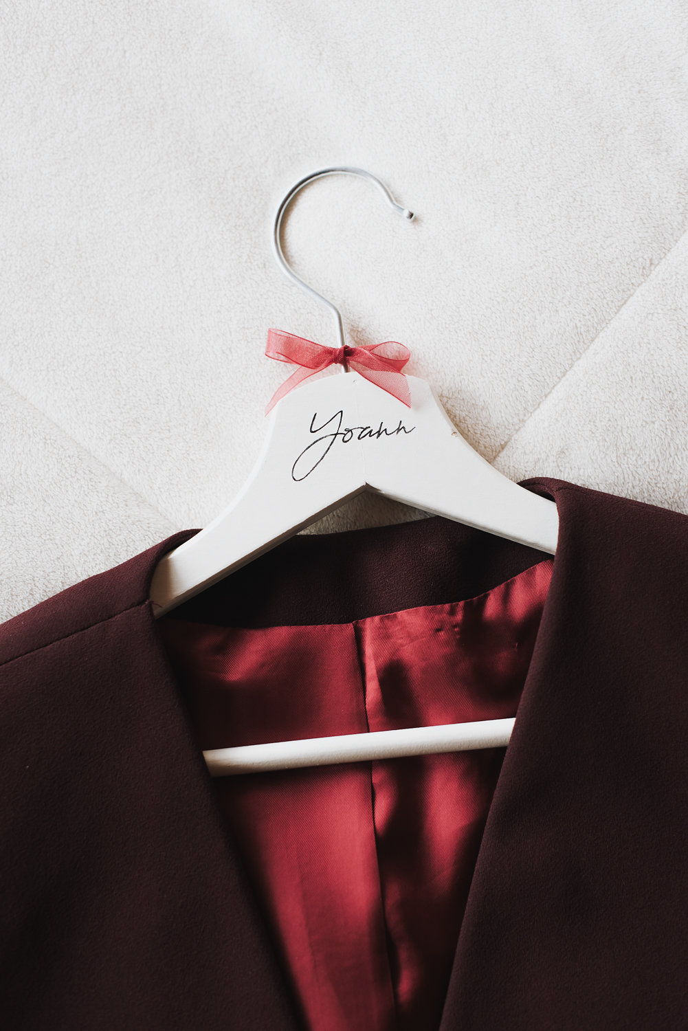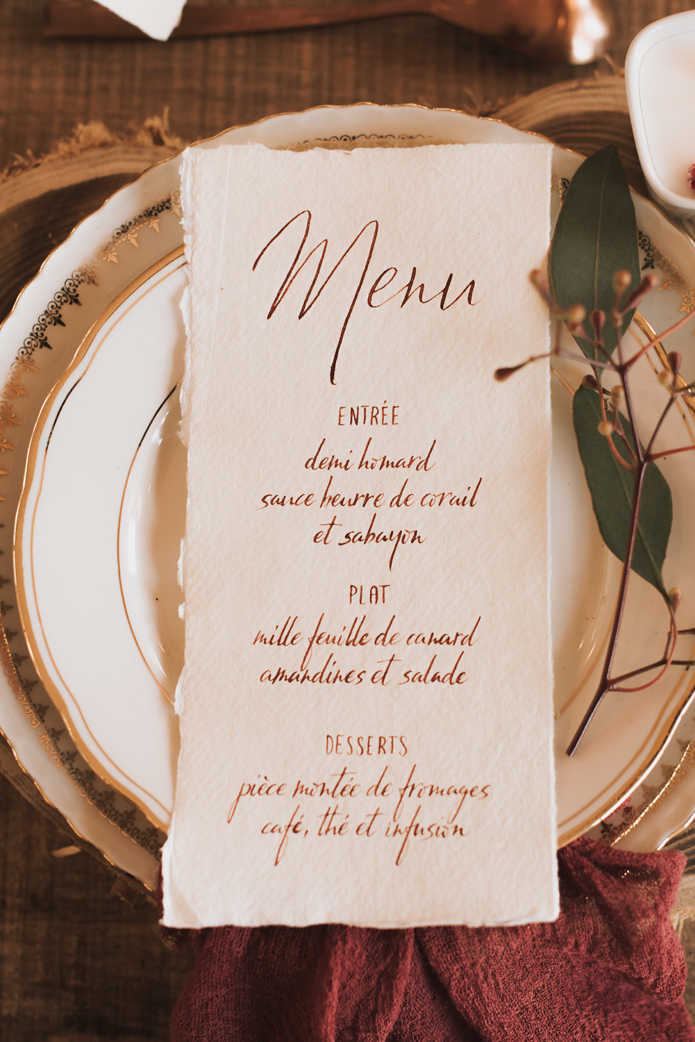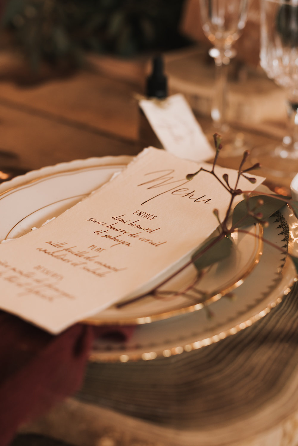 Le lieu a été choisi pour les mêmes raisons. Il s’agit d’un domaine qui fait maison d’hôte, un lieu rempli de chaleur et plein de charme. La couleur bordeaux relève la chaleur déjà présente grâce au décor. » Anouck Bandini.