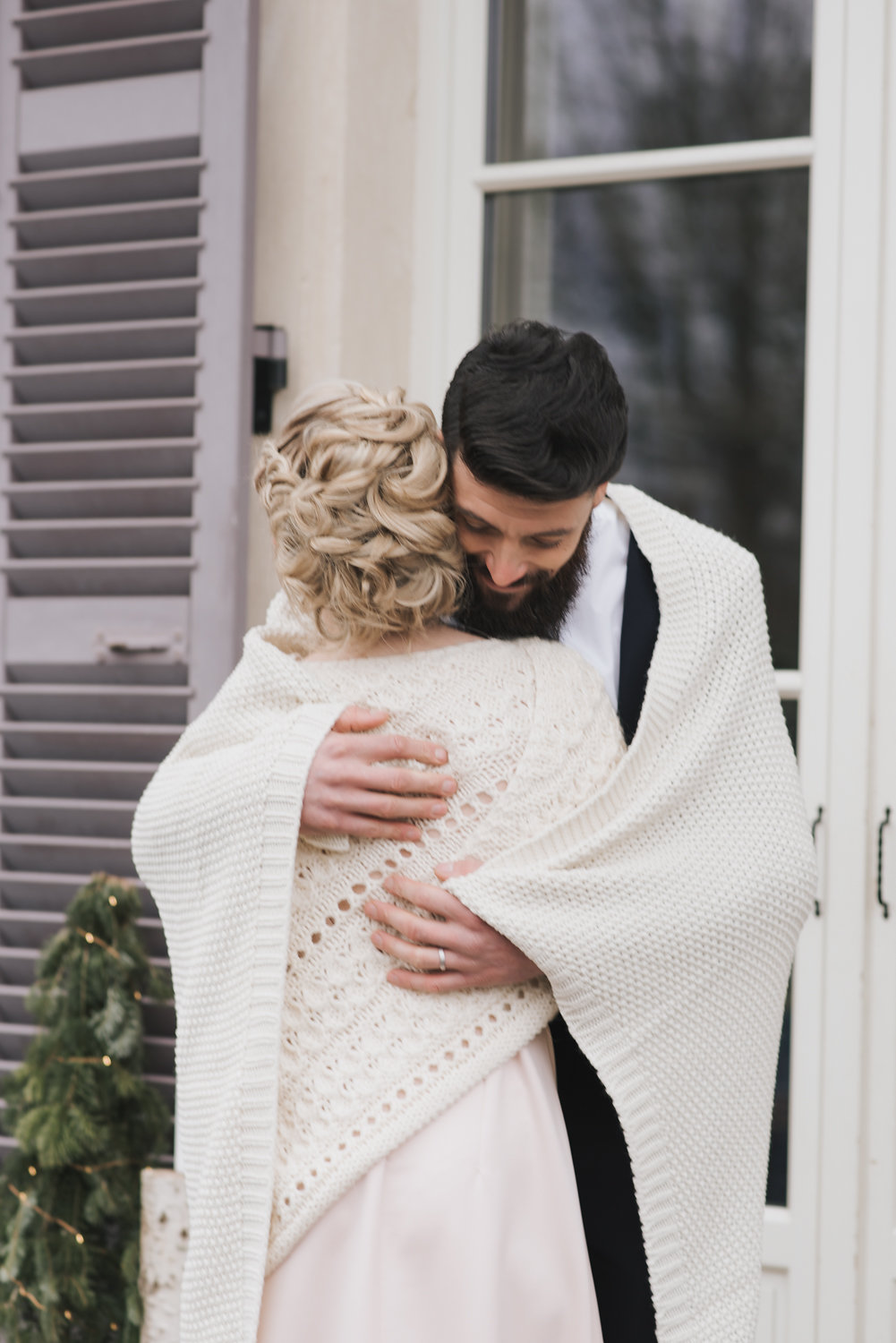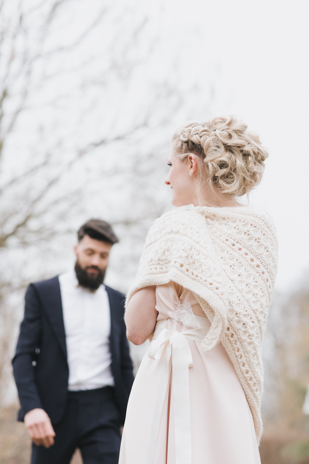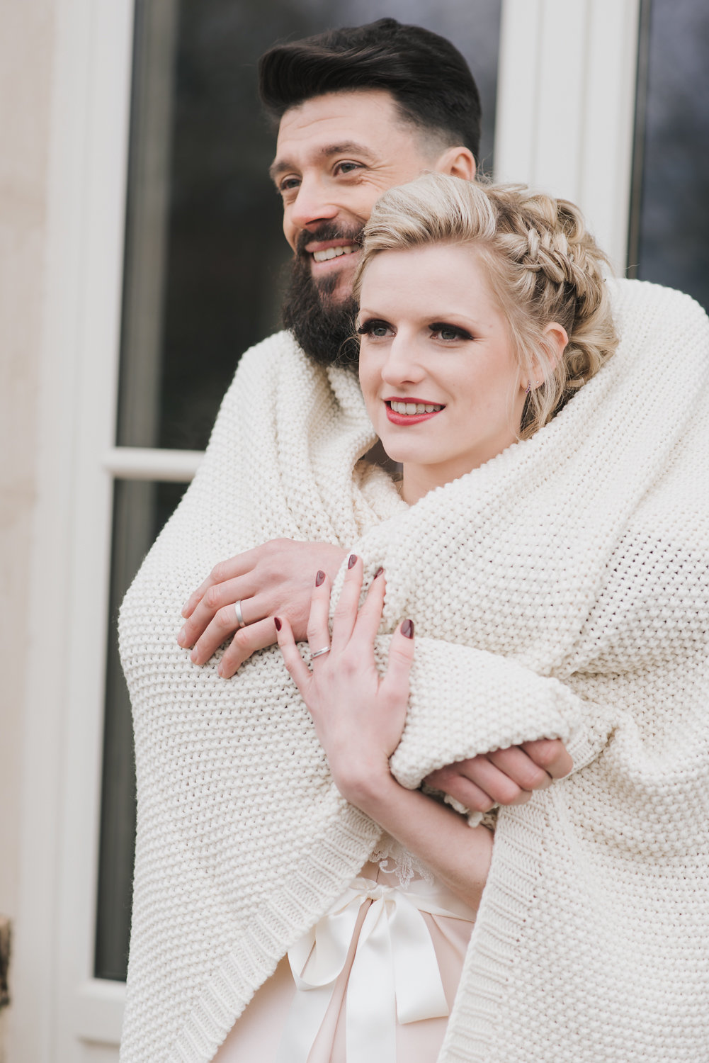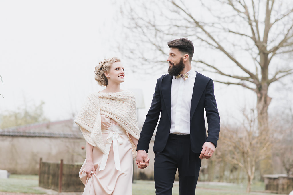 La table a été fabriquée par nos propres mains, les planches de bois ont été cherchées dans les Vosges et les pieds, fabriqués par un chaudronnier. C’était important que tout cela ressorte dans les photos, ainsi que l’état d’esprit et le côté chaleureux/cocooning que peut dégager le couple. C’est pour cela que beaucoup de plaids ont été utilisés.