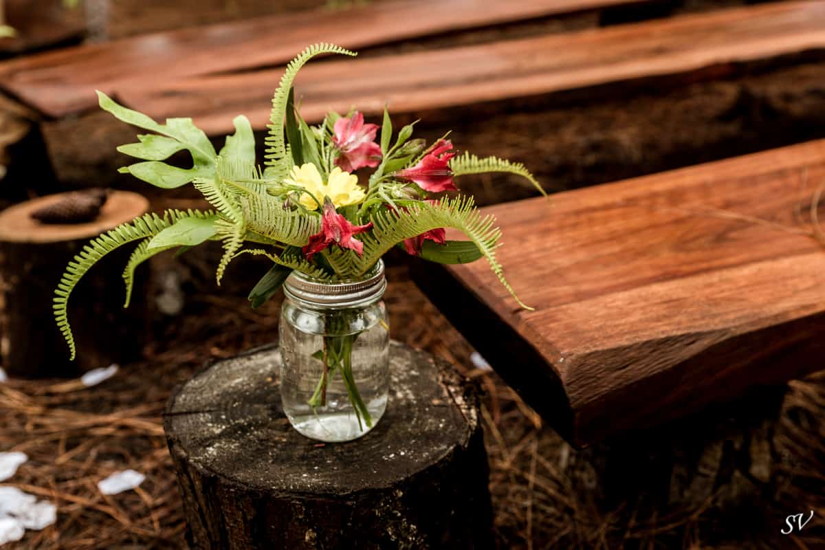 « Notre thème était « rustique/bois ». Nous sommes tout les deux des amoureux de la montagne et nous voulions que cela se reflète dans notre mariage. »
