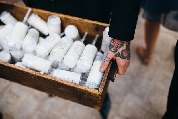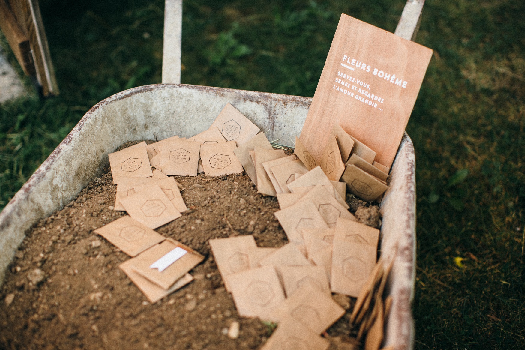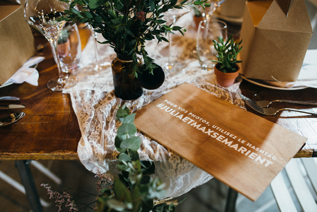 « Nous avons eu autant de plaisir à organiser ce mariage qu’à le vivre ! Mais nous avons été surtout motivés par la déco. Nous avions une vieille grange de 450m2 entièrement brute à décorer, un vrai terrain de jeu ! Et nous avons essayé de penser aux moindres détails, à deux mais aussi avec l’aide de notre wedding planneuse. Max a organisé autant que moi ce mariage, c’était vraiment génial de partager tout cela du début à la fin. »