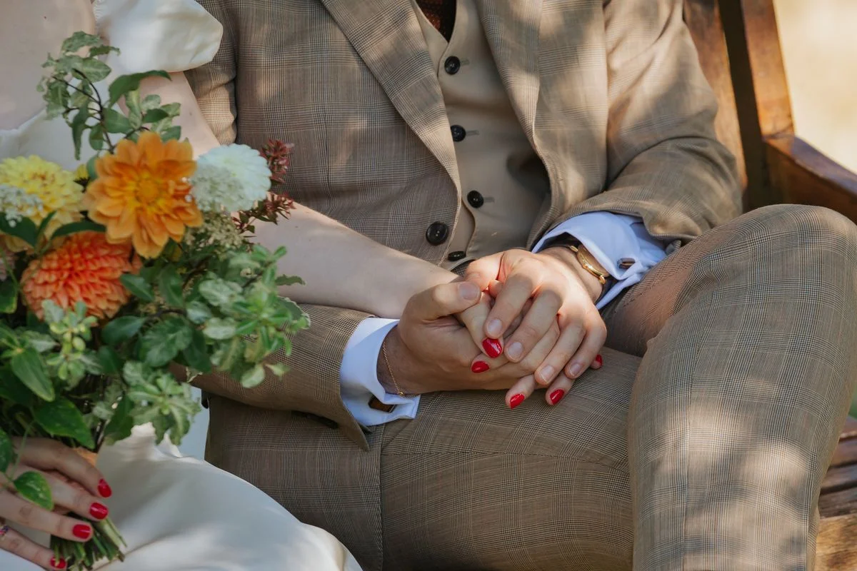 Juliette : J’espérais depuis longtemps une demande. J’avais déjà fait un tableau Pinterest “MARIAGE” et je trépignais d’impatience. Mais sachant que c’était un évènement important pour Maxime, je ne voulais pas le faire à sa place. En novembre 2022, lors d’un week-end à Strasbourg alors que je n’osais plus espérer car j’étais persuadée qu’il n’était pas prêt, nous nous sommes fiancés. Maxime avait très bien caché son jeu ! Nous avons passé une journée typique de touriste dans ma ville préférée au monde. Nous sommes montés dans la cathédrale, nous avons flâné dans la Petite France et c’est au bord d’un cour d’eau, dans un endroit discret et entouré de maisons à colombages que Maxime a mis le genou à terre. Dans le vif de l’action, il a ouvert l’écrin à l’envers ce qui nous a fait beaucoup rire et a permis à ce moment de nous ancrer dans la réalité. C’était romantique et parfait pour nous.