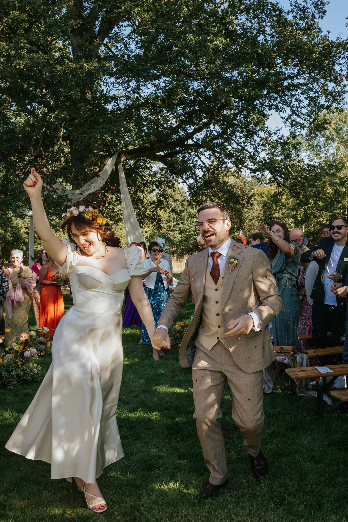 Juliette : Evidemment qu’il y a eu des imprévus ! L’années 2024 a été épouvantable sur la météo. Pourtant, nous pensions avoir pensé à tout pour un mois de septembre : A la pluie, à la canicule… Sauf au froid polaire ! Il a fait un magnifique soleil toute la journée mais moins de 5°C degrés la nuit. Heureusement, nous avions de bons prestataires qui nous ont recommandé une semaine avant le jour J de prendre des canons à air chaud. Ça aurait véritablement pu gâcher notre mariage. Le conseil que nous pouvons donner est de ne pas hésiter à se reposer sur les pro et de leur faire confiance. Mais surtout le jour J, lâchez prise ! Si vous avez besoin de quelque chose demandez à vos témoins de le faire pour vous. Vous êtes les mariés, profitez !