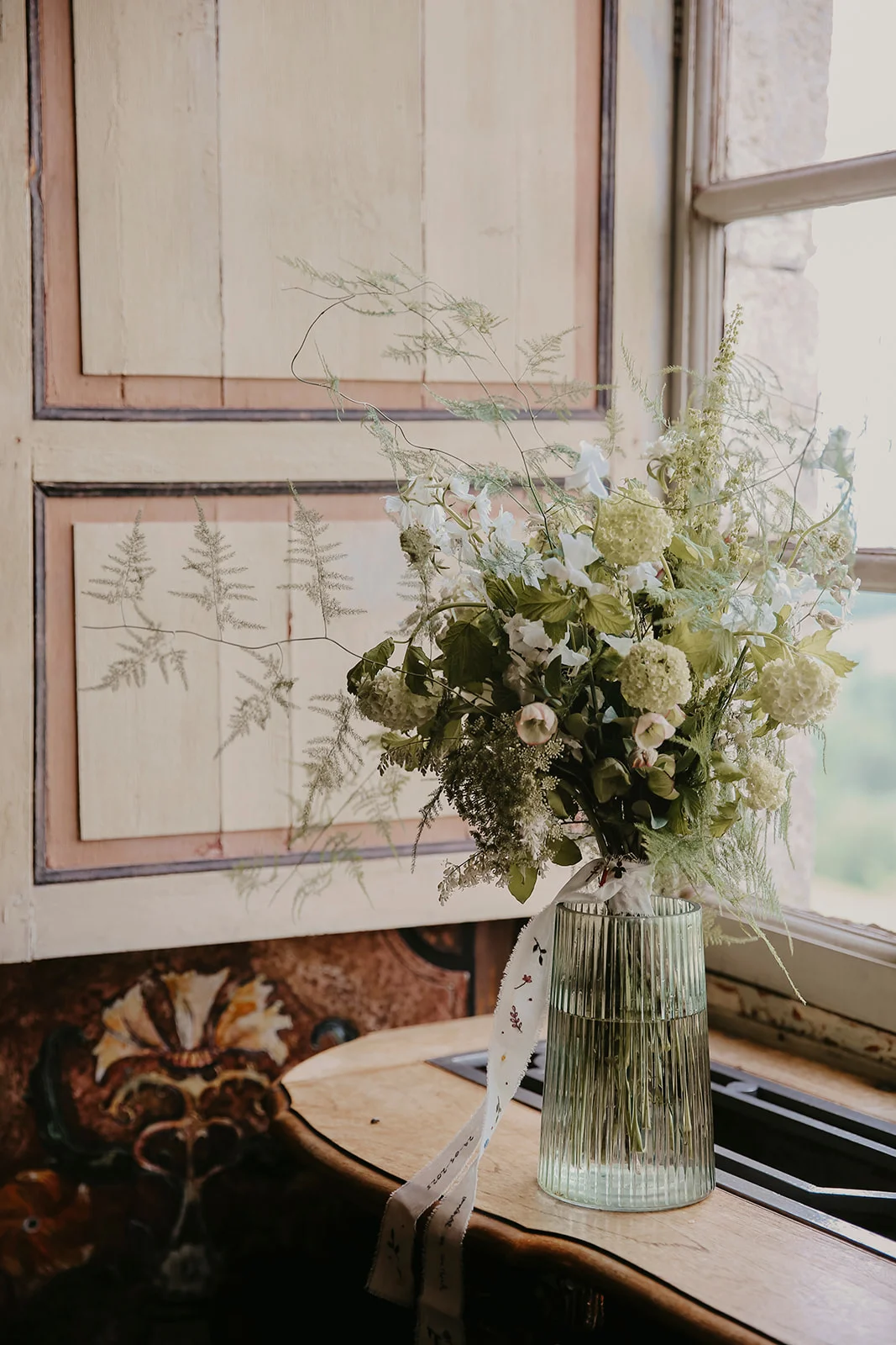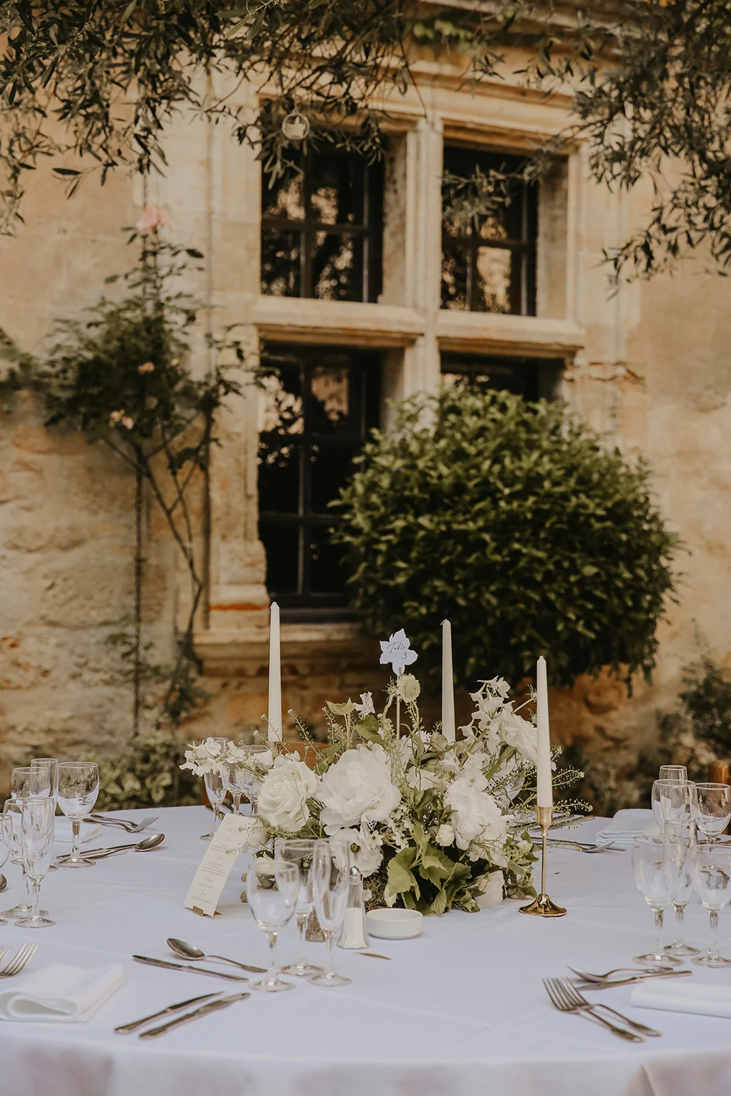 Il n’y avait pas de thème défini à proprement parler. Je souhaitais avant tout une atmosphère florale et élégante. Le lieu étant déjà remarquable, il se suffisait à lui-même et appelait à une décoration naturelle et raffinée.