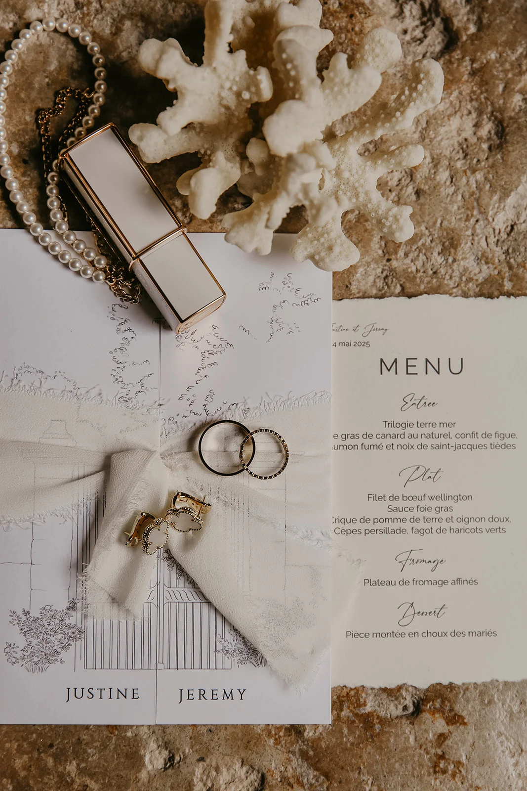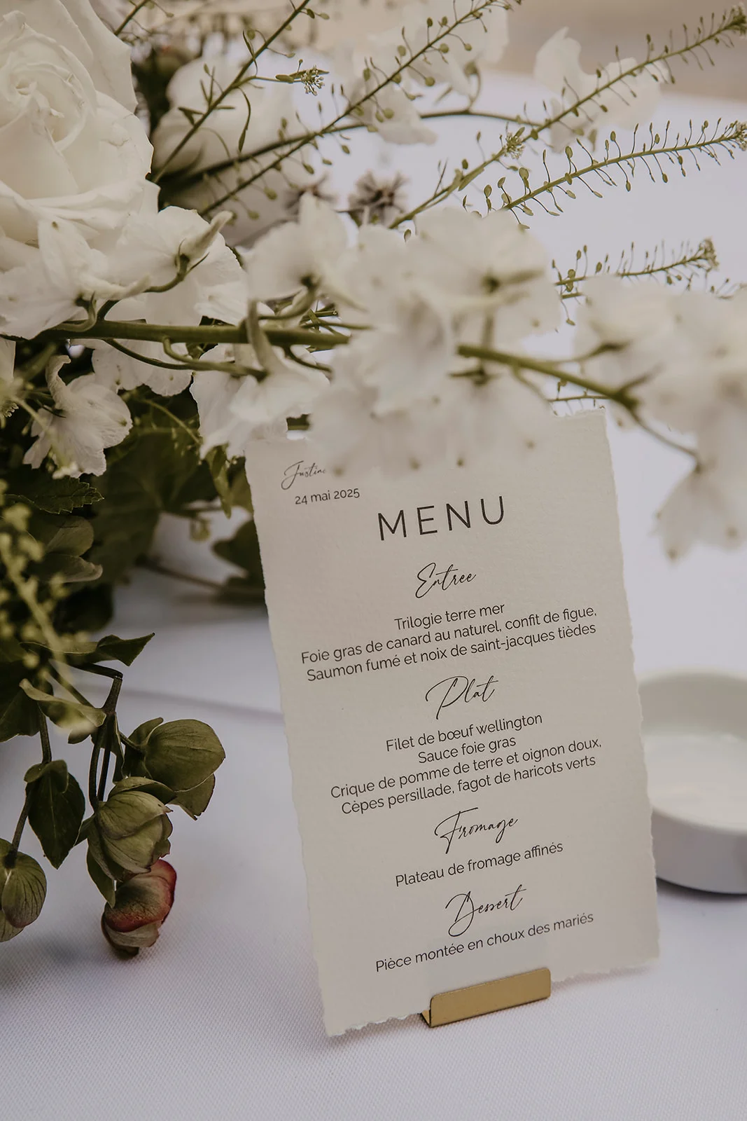 Ayant déjà assisté à de nombreux mariages, nous savions précisément ce que nous souhaitions et ce que nous ne voulions pas. L’organisation s’est faite en seulement six mois. Nous avons commencé par le choix du lieu et de la date, en retenant la seule date disponible au printemps/été 2025. Ensuite, toute la préparation s’est construite autour de listes détaillées et d’outils simples comme Excel, afin de ne rien laisser au hasard.
