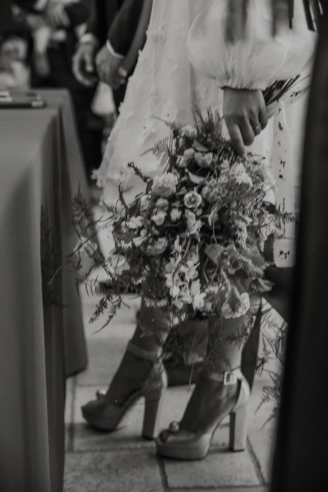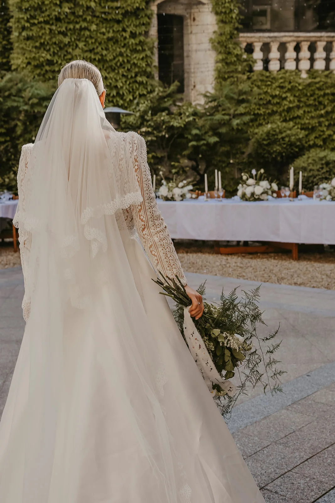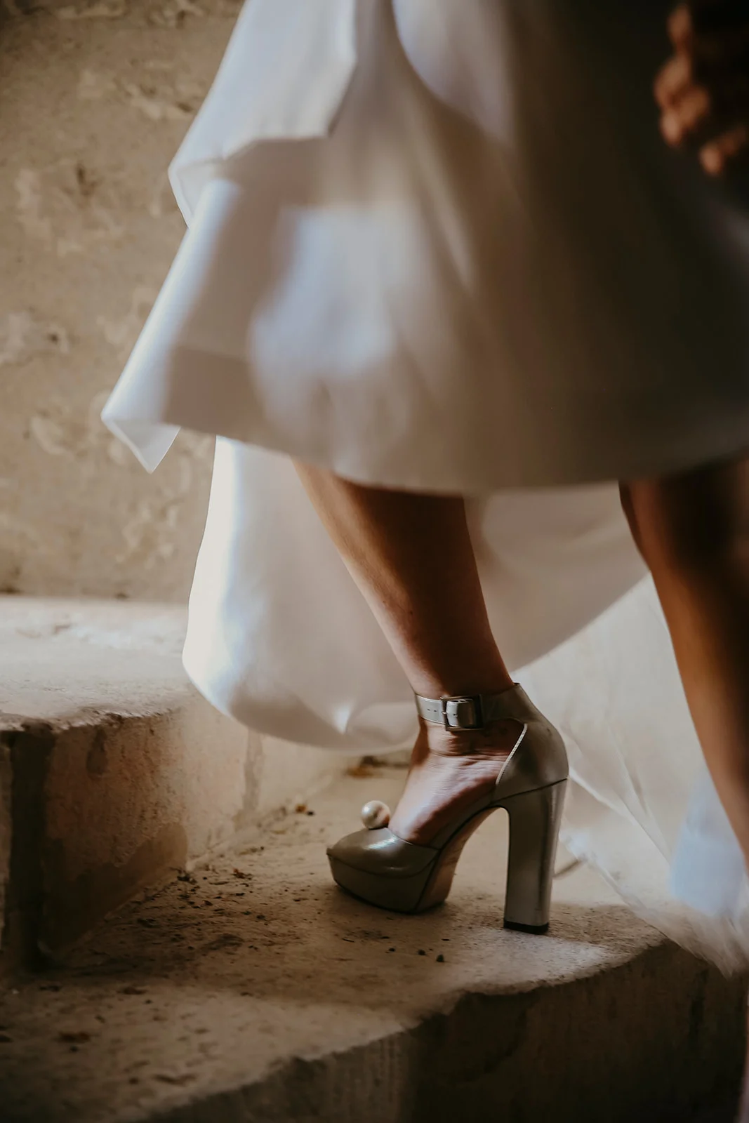 La robe de la mairie appartenait à une collection de l’année précédente. Je l’avais repérée bien avant le mariage et elle s’est immédiatement imposée comme une évidence. Lorsqu’elle n’était plus disponible, j’ai contacté de nombreuses boutiques Zimmermann à travers l’Europe. Contre toute attente, elle est finalement revenue en stock, comme si elle m’était destinée.