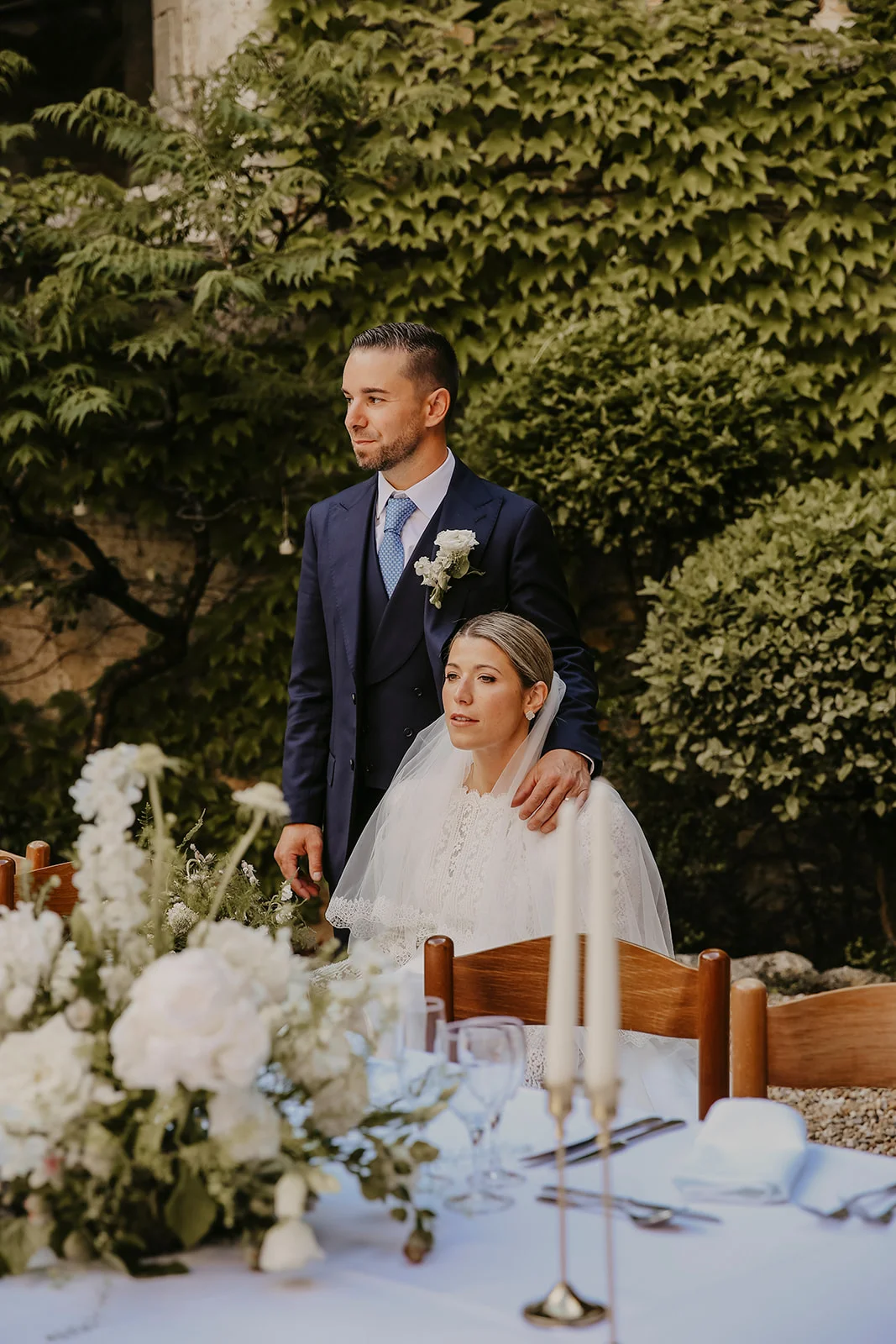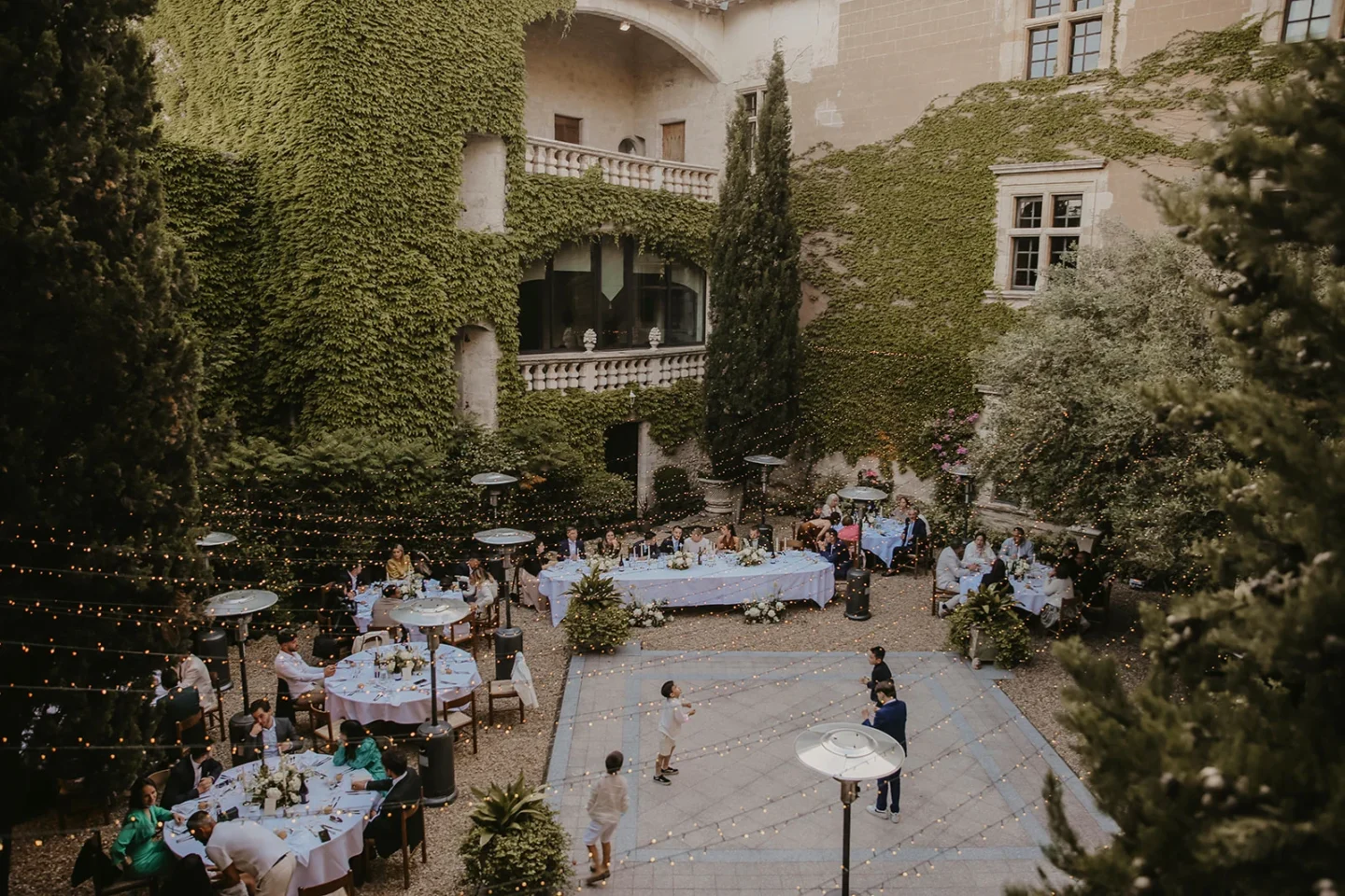 Il n’y a pas eu de véritable imprévu, mais une décision importante à prendre : organiser le dîner à l’intérieur ou à l’extérieur. Dès la première visite, nous avons eu un véritable coup de cœur pour la cour du château et souhaitions absolument y recevoir nos invités. La météo, fin mai, restait notre seule incertitude.