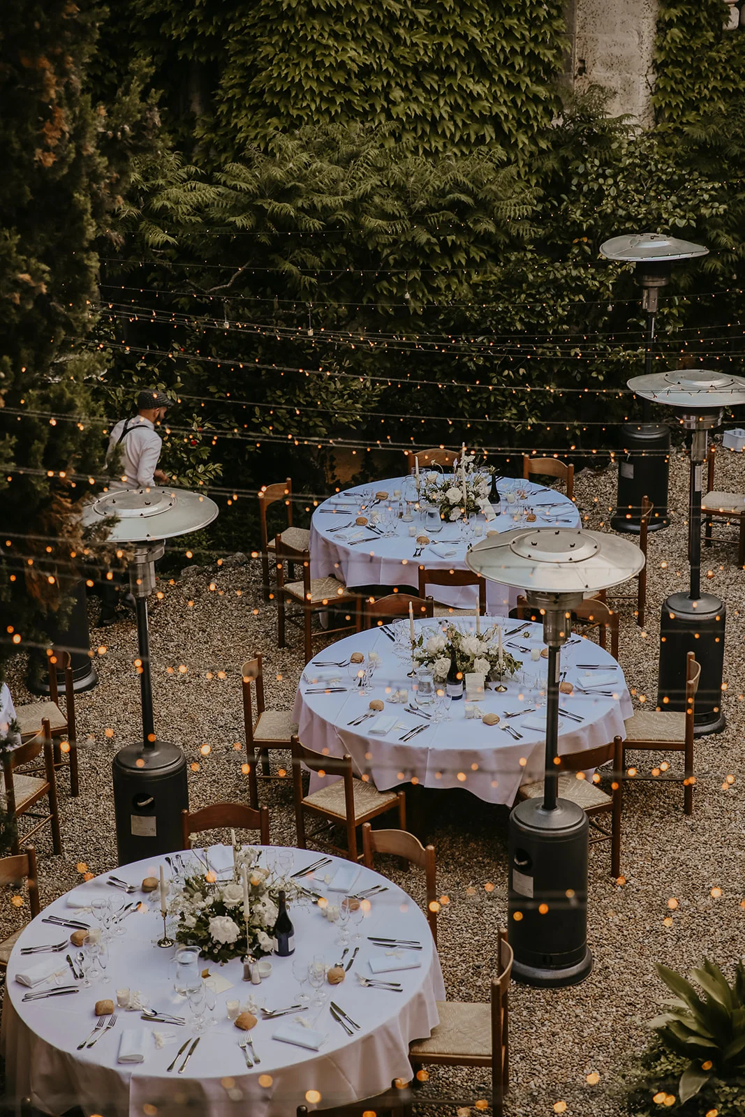 Nous avons fait le choix audacieux de dîner en extérieur et de transformer la salle intérieure en un espace festif, façon club, avec bar et piste de danse. Le pari s’est révélé gagnant.
