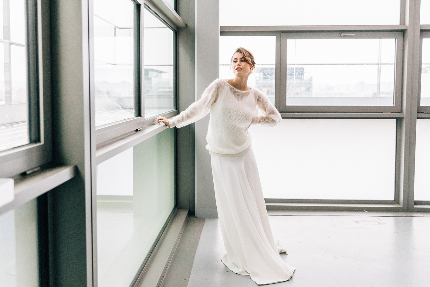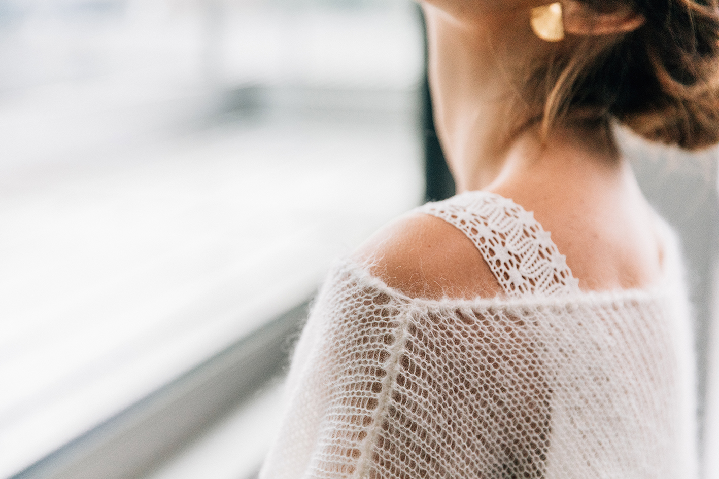 Mathilde Marie, créatrice de robes de mariée sur-mesure depuis 2013, travaille l’élégance et dessine des robes au style épuré et aux lignes fluides. C’est dans son atelier showroom, prés de la bibliothèque François Mitterrand, dans le 13e arrondissement, que la créatrice accueille ses mariées et leur fait découvrir ses collections, où détails subtils d’autrefois se mêlent au goût d’aujourd’hui. Julie Primot, créatrice de la marque CINEMAILLES, est tricoteuse depuis 2014. Elle conçoit et fabrique des costumes historiques pour le cinéma, le théâtre et l’audiovisuel, mais aussi de la maille contemporaine en sur-mesure. Son atelier est à Paris dans le 19ème arrondissement. Spontanément attirée par une maille aérienne, pure et poétique, elle s’est rapprochée de l’univers de la mariée et a rencontré Mathilde.