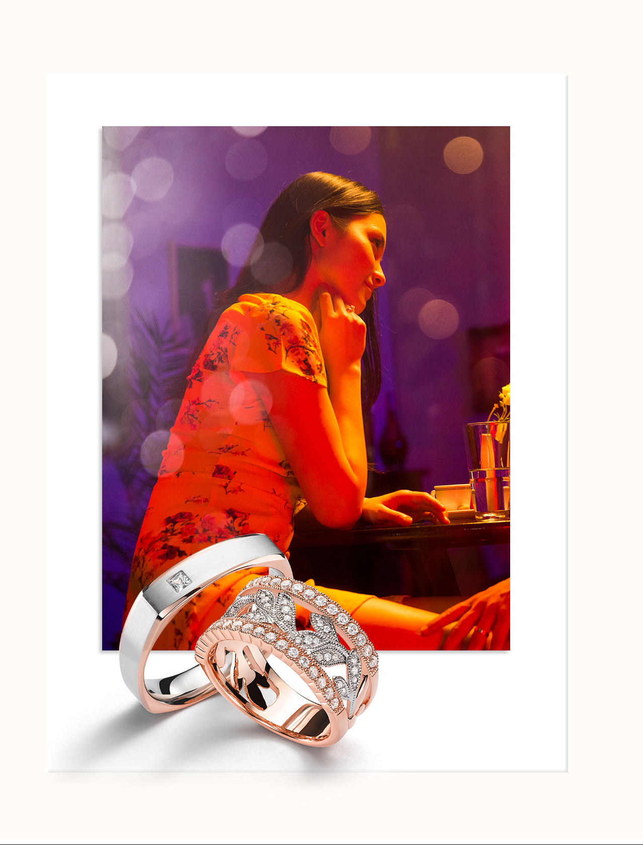 Dans cette campagne, les couples semblent attirés et retenus par des forces inconnues et invisibles. Celles-ci sont symbolisées par un anneau, un cercle, sans début ni fin, qui prouve alors leur amour.