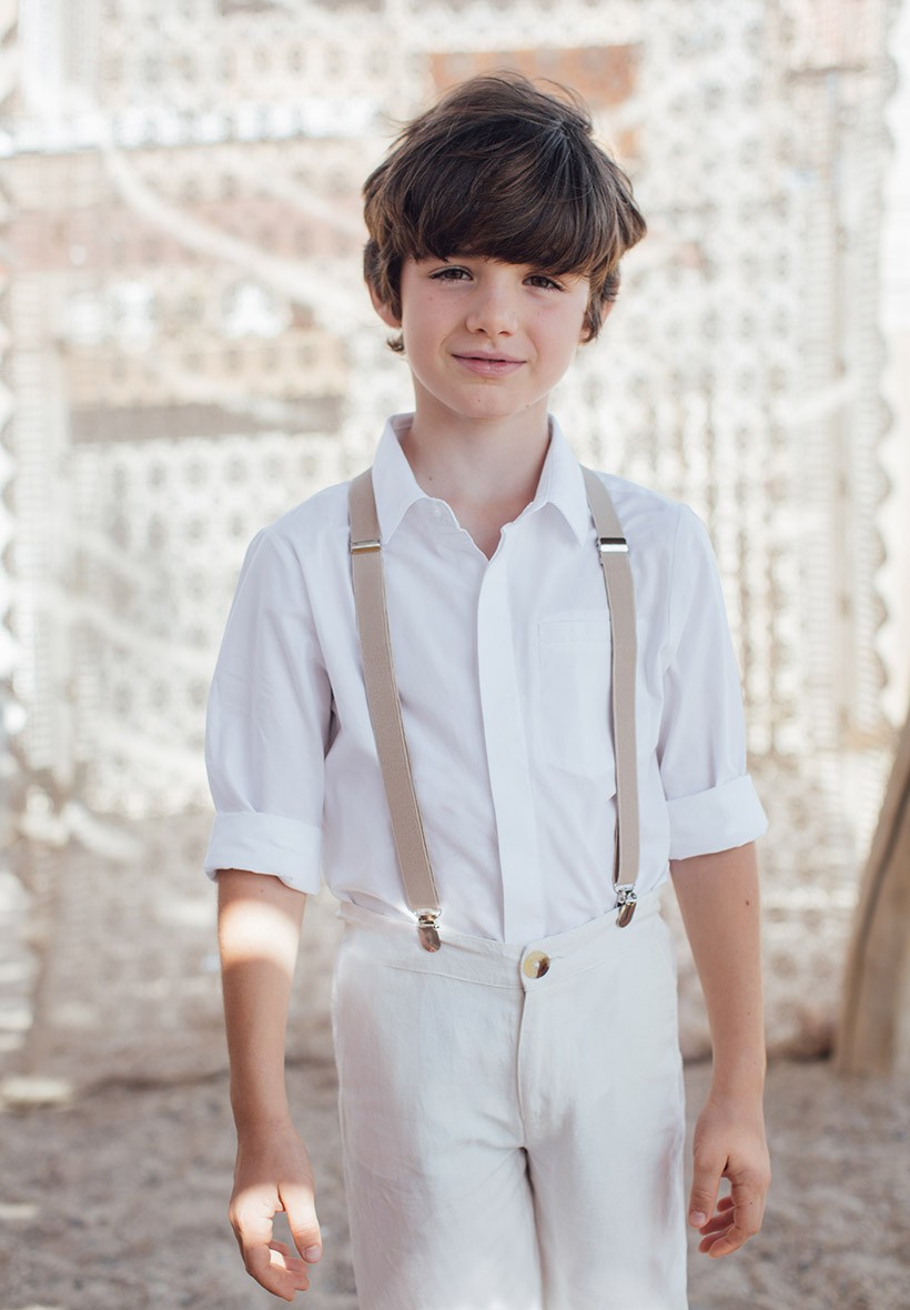 Continuons avec le buste. On peut porter un jolie collier ou un bracelet selon l’envie. Sinon, Les Petits Inclassables proposent des noeuds papillon et des bretelles adorables. Sur une chemise blanche, l’ensemble s’accorde et donne toujours plus d’allure. Les noeuds sont réglables, en popeline de coton ou en satin pour un effet brillant. De quoi rendre votre progéniture très chic et fin prête pour un mariage.