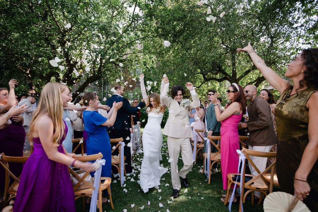 Tout ! Mais nous avons particulièrement adoré la soirée. C’était une vraie fête, tout le monde a dansé et profité. La cérémonie a également été très touchante, avec les différents discours de nos familles et amis.