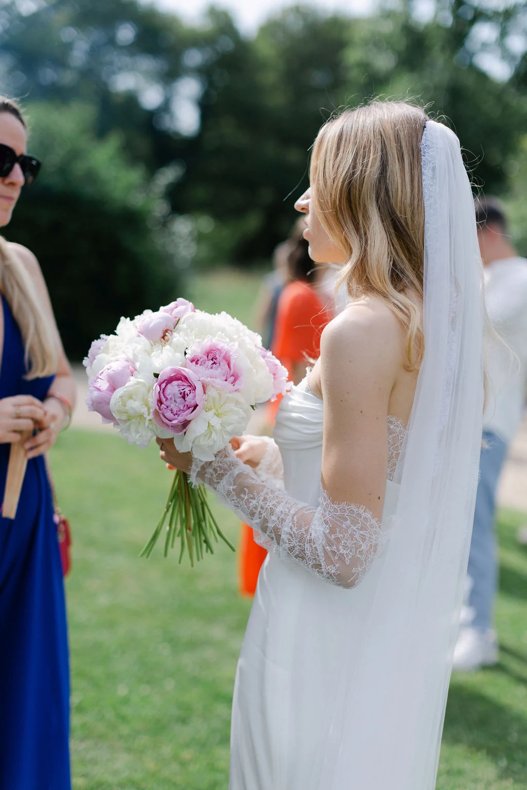 Pour la robe, j’avais une idée plutôt précise en tête : de la dentelle, de belles manches et un voile brodé pour avoir quelque chose de moderne, élégant et unique. Je ne voulais pas quelque chose de trop extravagant ou « princesse ».