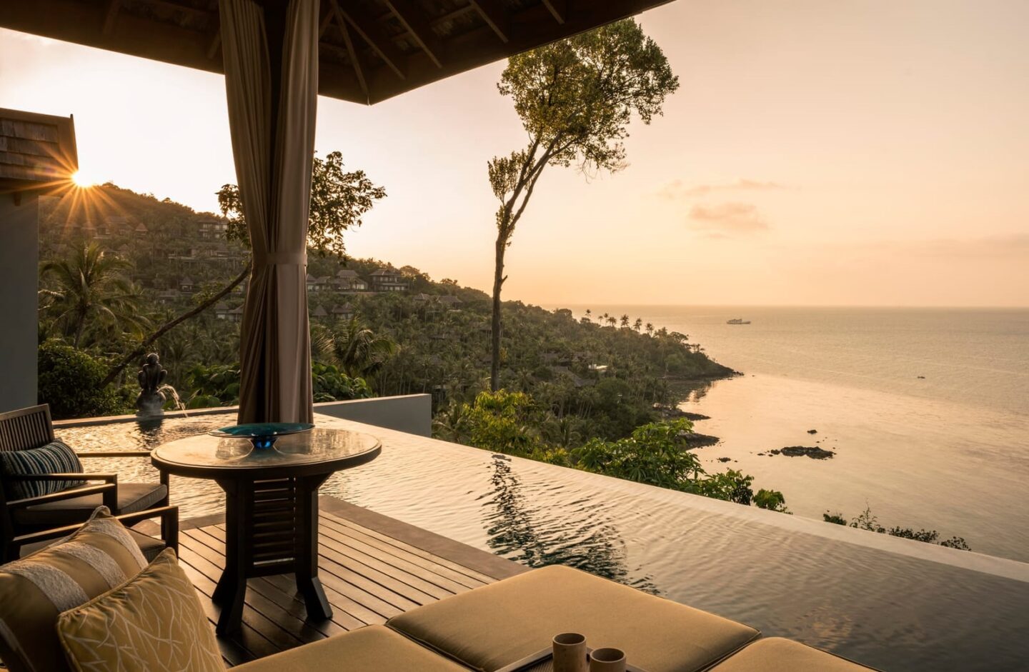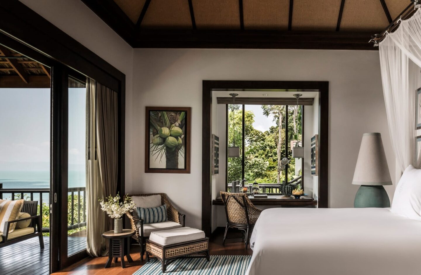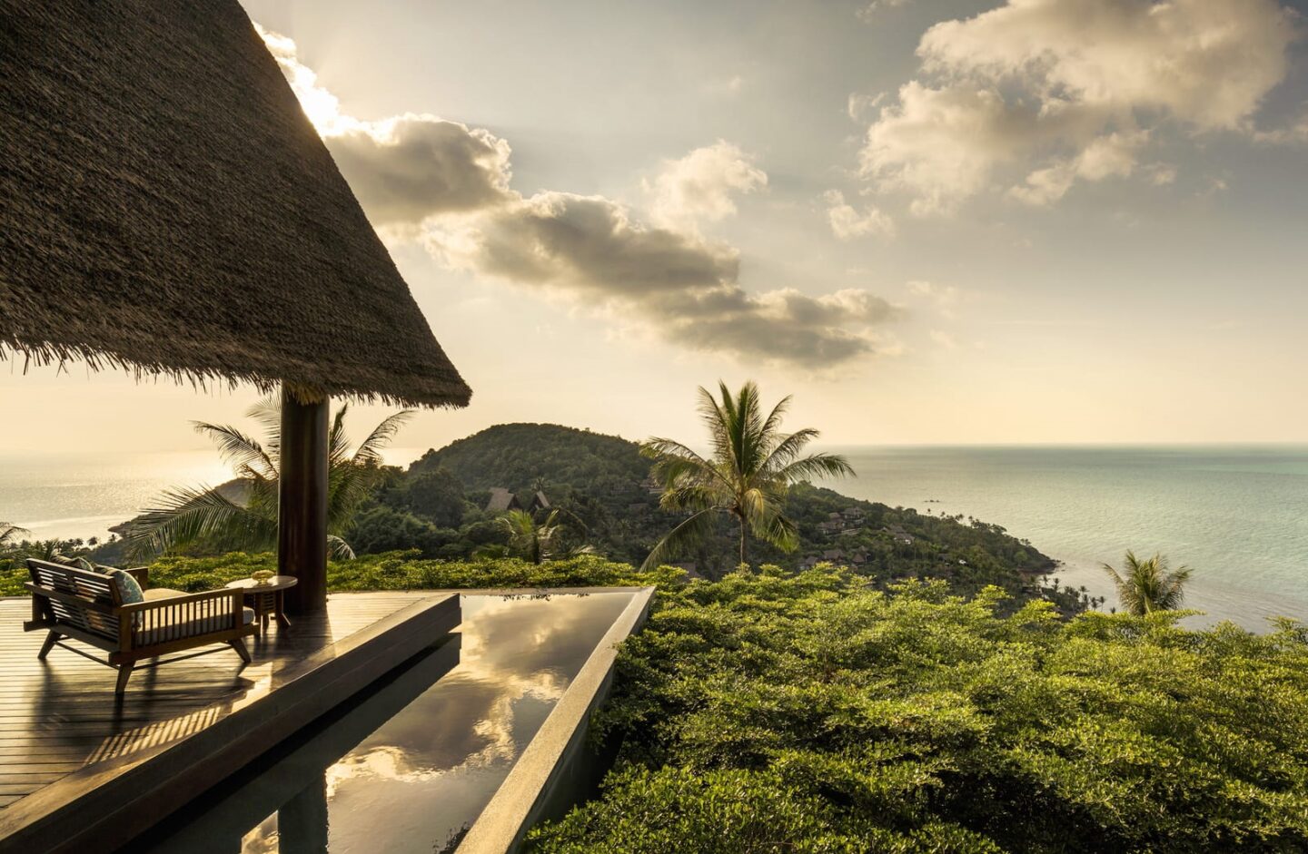 La troisième saison de The White Lotus nous emmène cette fois en Thaïlande, et plus précisément au somptueux Four Seasons Resort Koh Samui. Perché sur une colline tropicale face au golfe de Thaïlande, cet hôtel cinq étoiles offre un cadre spectaculaire pour une lune de miel mêlant spiritualité, nature et raffinement.