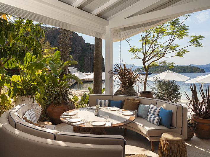 Fethiye offre un cadre intimiste où la mer Égée invite à la détente et à la découverte. Le Hillside Beach Club s’ouvre sur trois plages de sable clair et une crique bordée de pins. La mer tranquille se prête aux activités nautiques comme le paddle ou le snorkeling, tandis que des concerts et ateliers créatifs rythment le séjour. Le personnel attentif, qui connaît ses visiteurs par leur prénom, ajoute une dimension chaleureuse à ce séjour, où les couples peuvent profiter pleinement du cadre naturel et de la lumière unique de la mer Égée. La région de Fethiye est également chargée d’histoire : à quelques kilomètres, les tombes lyciennes sculptées dans la roche et les ruines antiques rappellent la richesse culturelle de la côte.