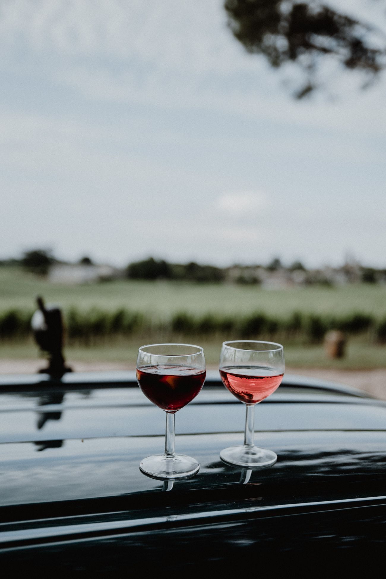 Nous prenions des photos de couple au milieu des vignes avec Anais, notre photographe, lorsqu’un groupe de musiciens s’est mis à jouer : nous n’étions au courant de rien ! Des copains nous ont fait la surprise en ouvrant le vin d’honneur sur une belle touche musicale.