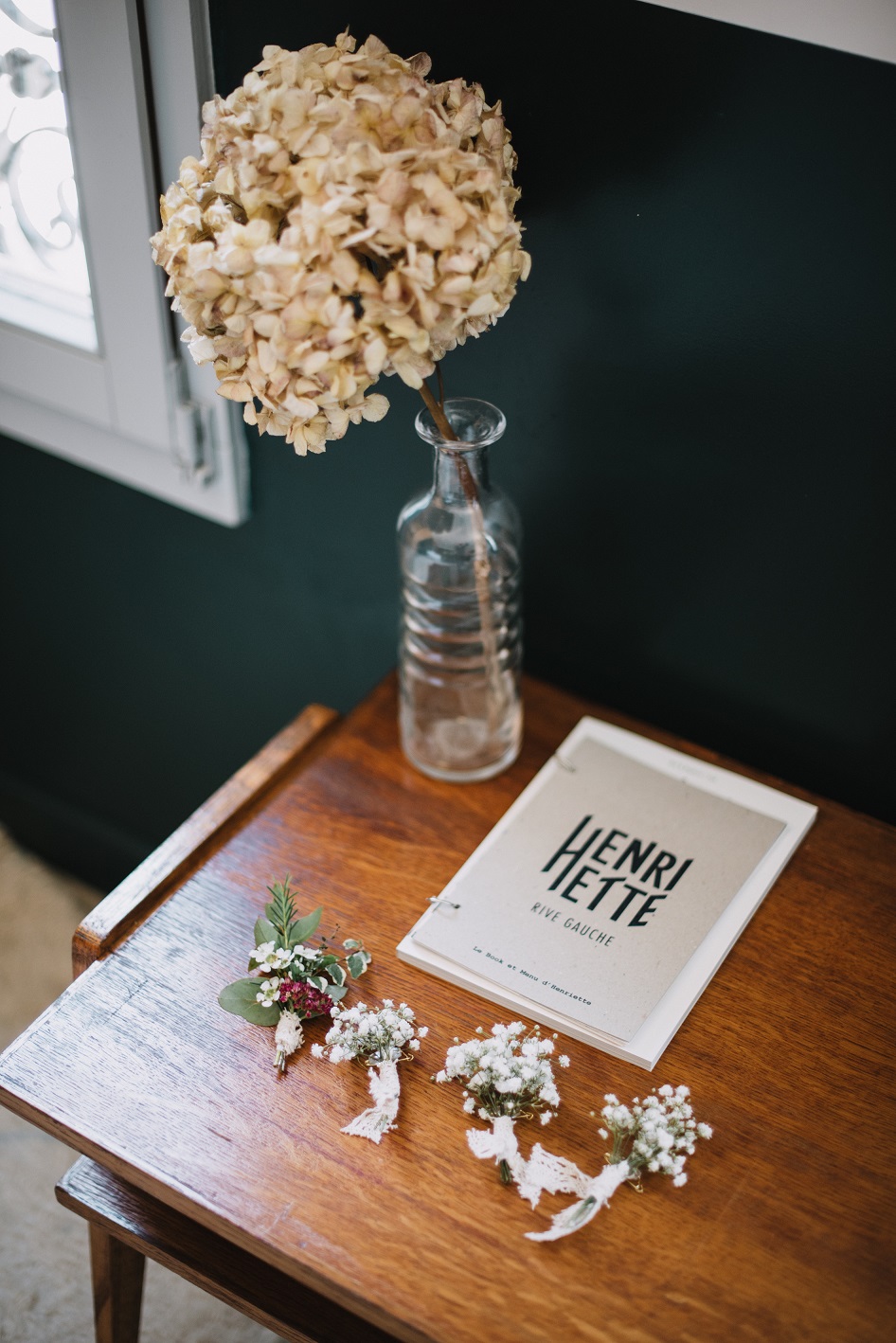 Les petites idées un peu folles à construire comme réaliser le faire-part soi-même incluant un assemblage qui nécessitait 10 minutes de couture au fil doré par carte, les 800 coquelicots en papier de soie étaient aussi un beau challenge !