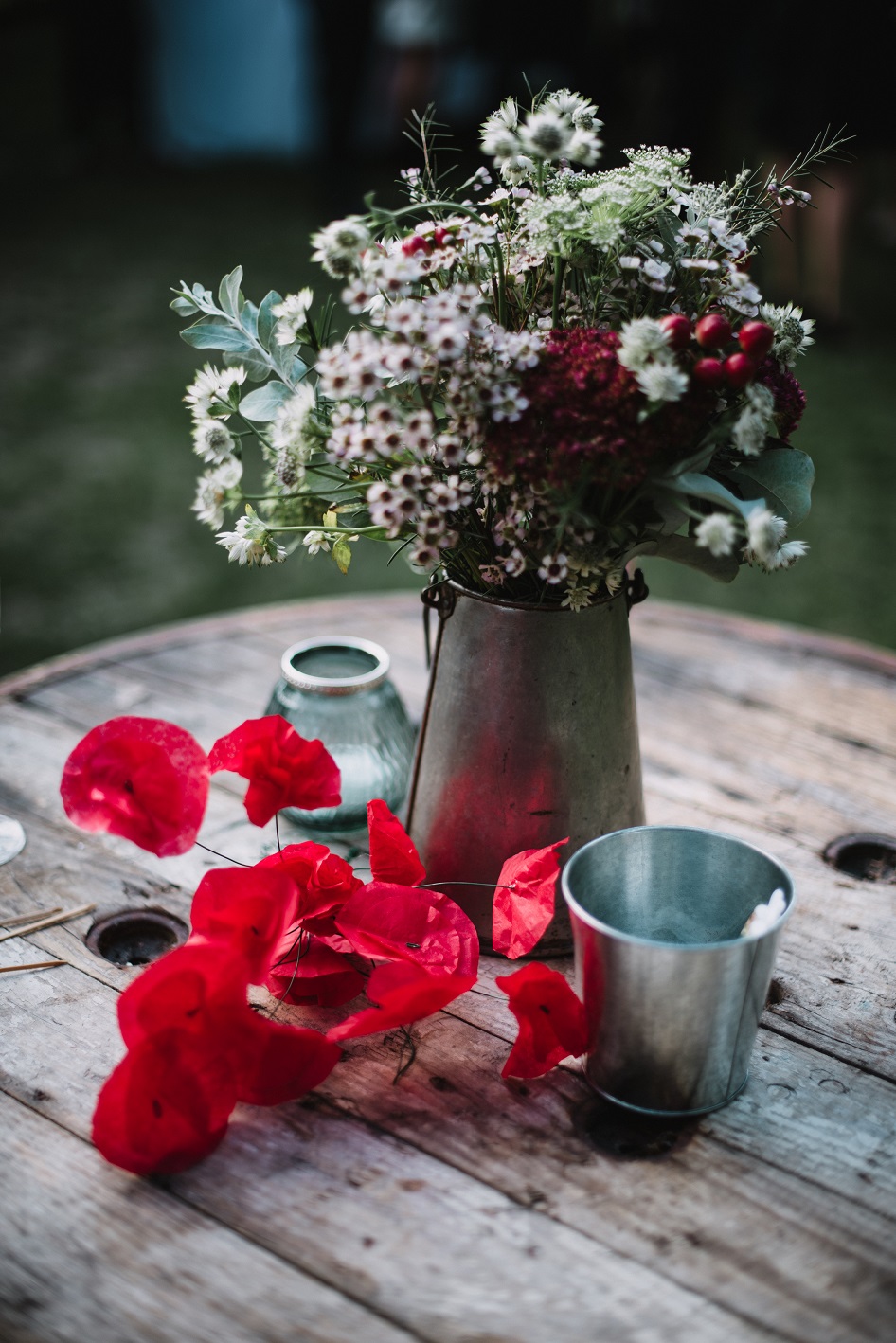 Notre plus beau souvenir a été la cérémonie laïque. Nous y avions mis beaucoup de cœur à la préparation, décoration du lieu, choix des musiques. Charly avait réalisé un parterre de 800 coquelicots en papier de soie qui nous entourait. Quand nous repensons à ce moment, il était juste parfait, nous étions dans notre bulle d’amour. Tout était beau, le soleil était doux et nous étions entourés de tous ceux qui nous sont chers.