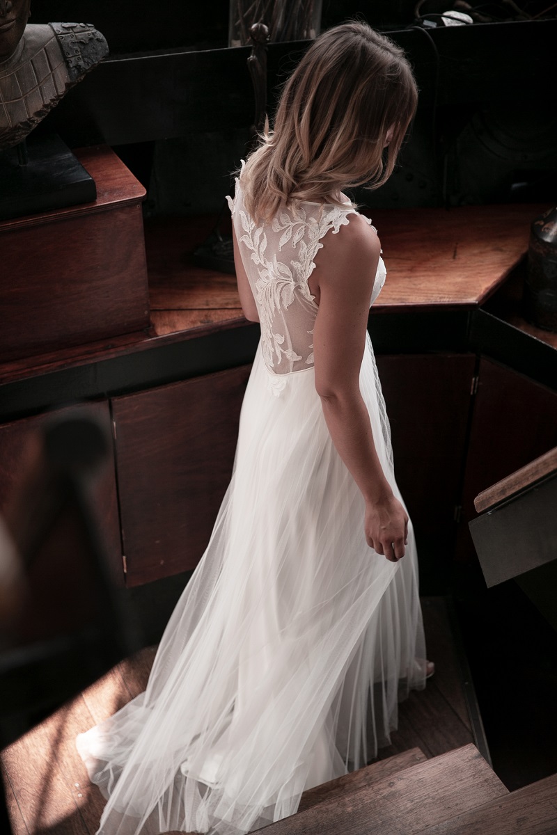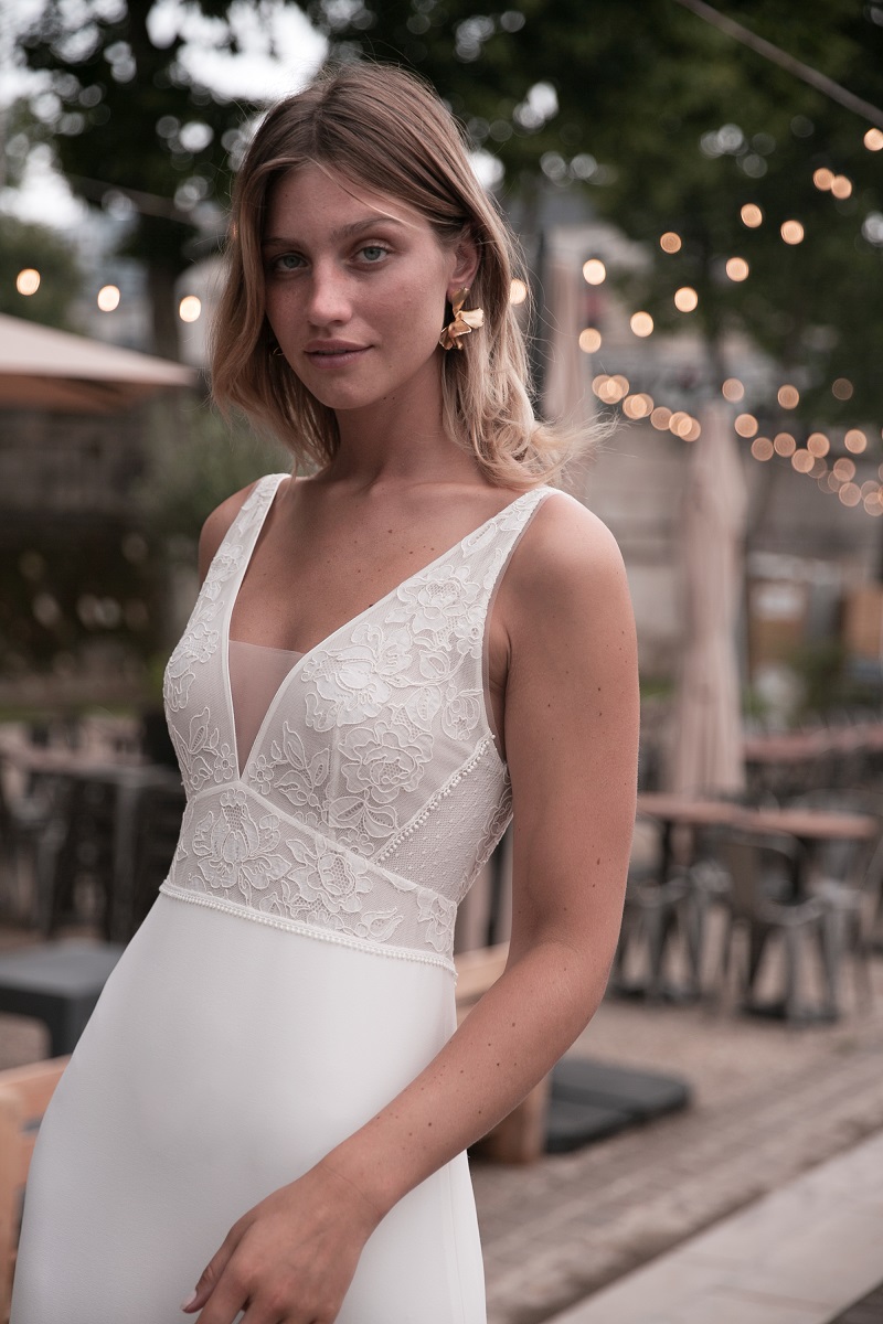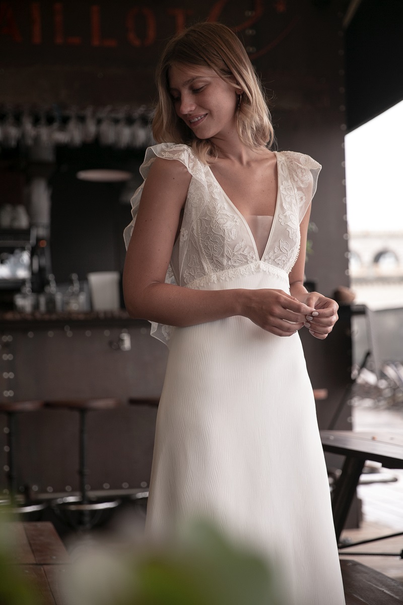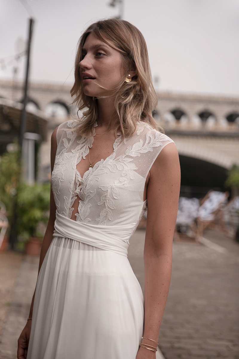 La créatrice accompagne les mariées dans leur choix en donnant vie à leurs robes sur mesure ou en proposant des modèles de sa collection de prêt-à-porter. Les créations Amarildine insufflent un vent de fraîcheur tout en volupté. Un monde de dentelles, de voiles et de légers drapés qui sait révéler la beauté et la sensualité de la future mariée.