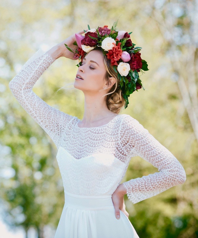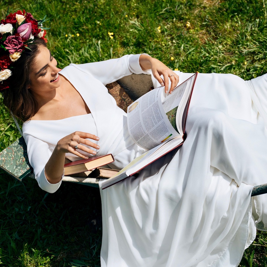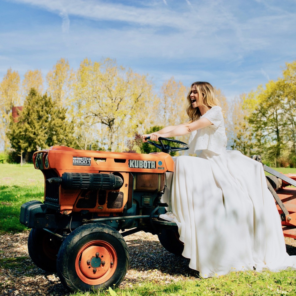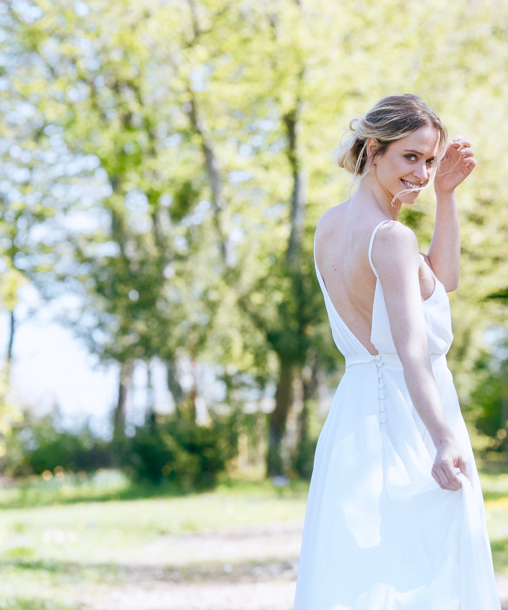 En pleine nature, la mariée 2020 de l’Atelier Gasparine veut une tenue confortable qui pourra s’adapter à sa folie. L’enseigne propose donc, cette année, des pièces à assembler selon les préférences de chacune avec un libre choix de matières. Un top sur une jupe courte brodée, un top en dentelle de Calais par dessus une robe en crêpe de soie… Composez votre tenue de mariage à votre guise ! Mais ce n’est pas tout, la collaboration Atelier Gasparine x Chat-Malo Paris est également disponible !