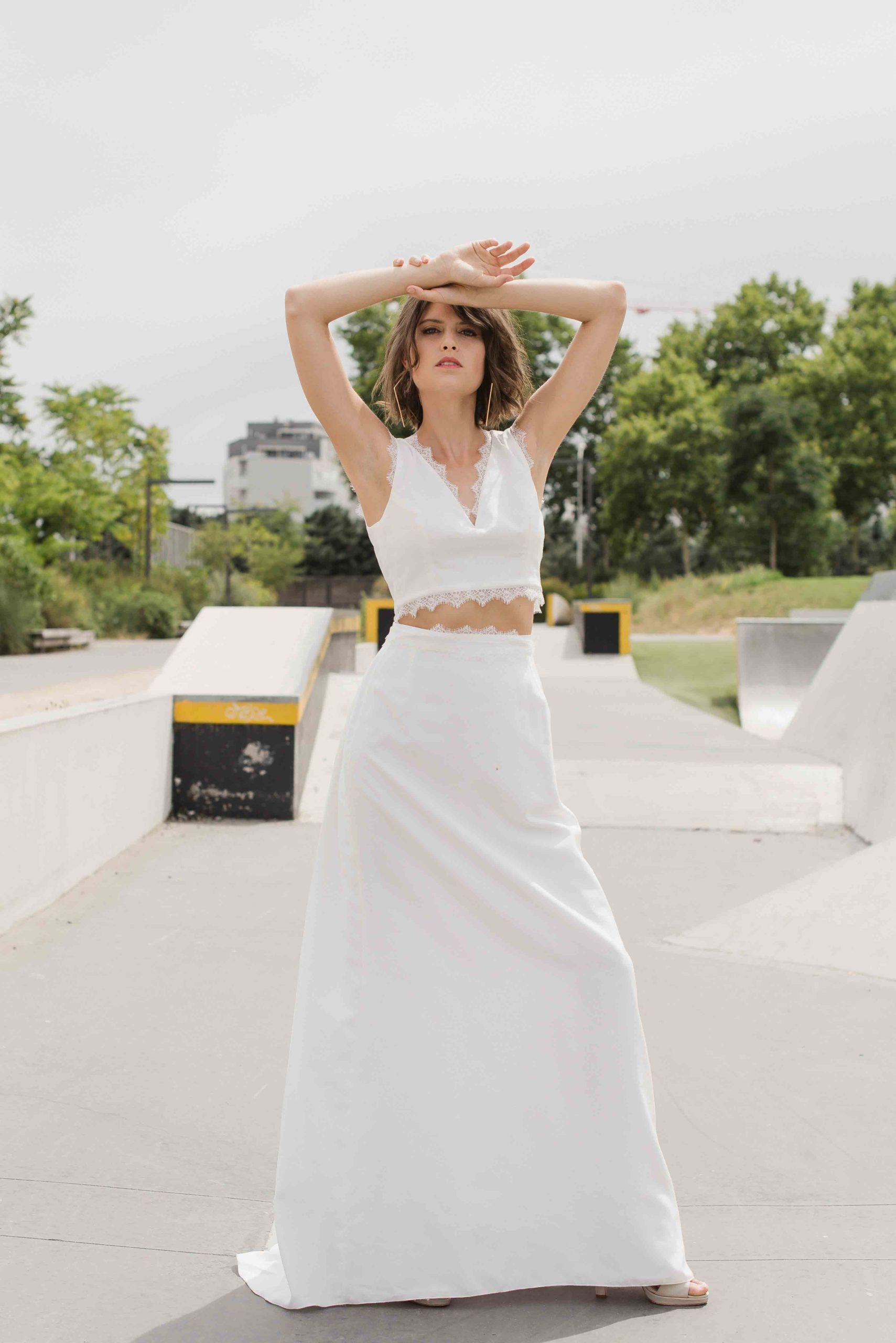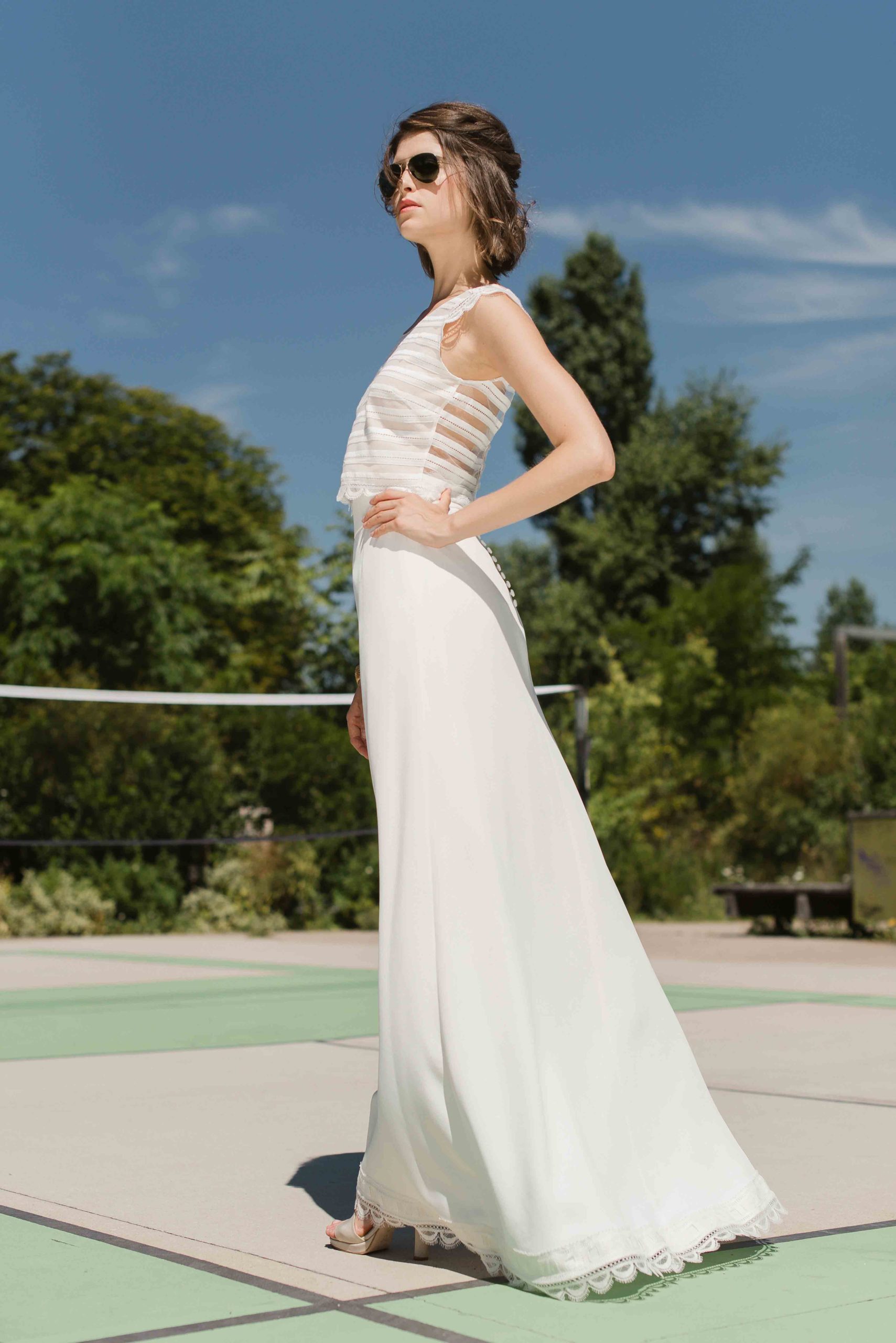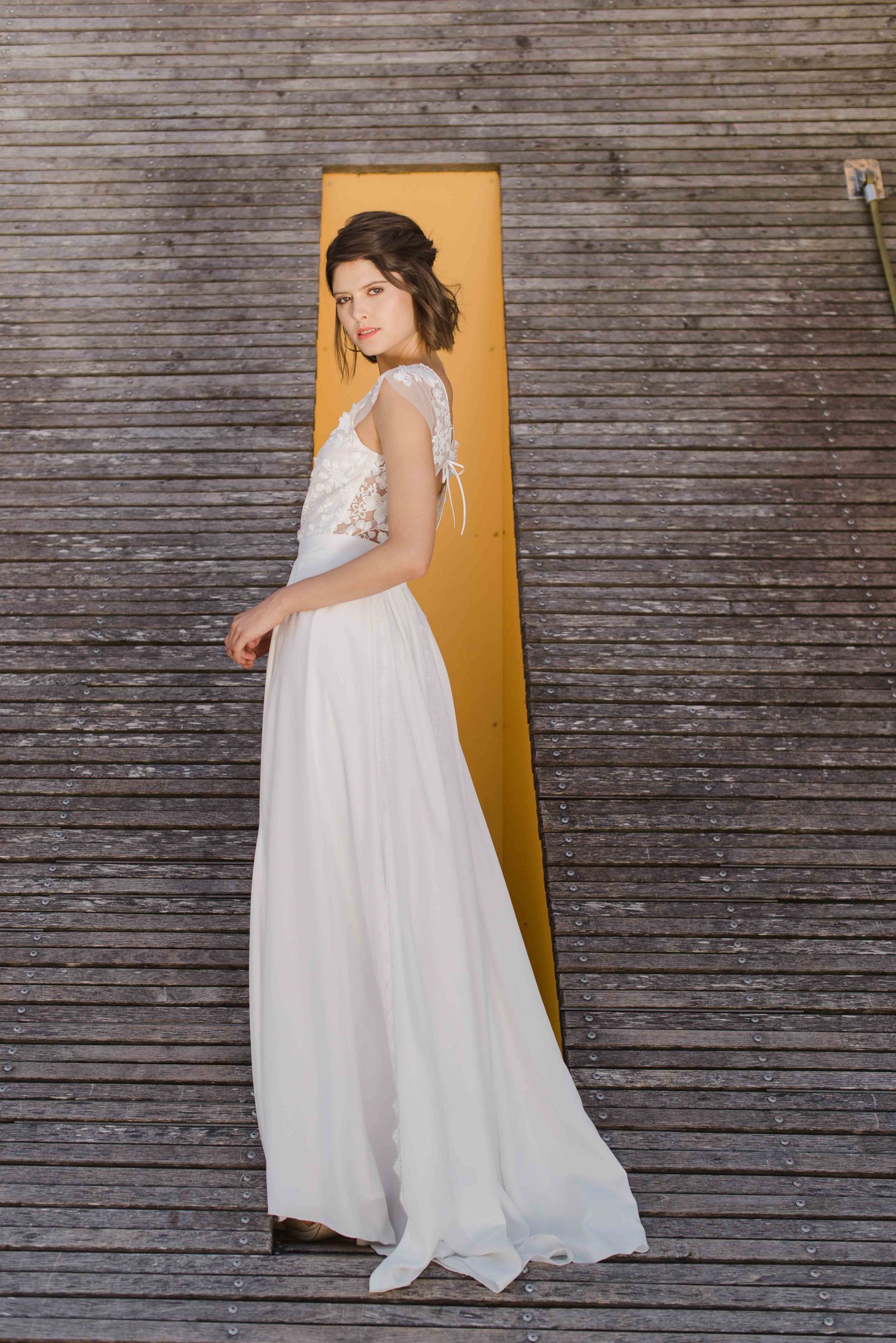 Dès son plus jeune âge, AuréliaHoang avait une attirance marquée pour l’art et plus particulièrement le dessin. Elle peignait fréquemment en prenant exemple sur sa maman artiste peintre et, rapidement, elle développa un certain sens du détail. Son amour pour les arts incita la créatrice à étudier la mode notamment à Lyon et à Milan. Ses études lui ont permis de travailler au sein de grandes maisons de couture tel que Kenzo, Isabel Marant ou encore Véronique Leroy. Puis, en 2010, AuréliaHoangeut l’envie de voler de ses propres ailes et créa sa propre maisonà Lyon en préservant l’idée de showroom. En effet, elle reçoit ses clientes chez elle, dans son espace personnel teinté d’inspiration artistique et culturelle. Chaque rencontre commence par un dialogue entre la créatrice et la future mariée. Cette dernière parlera de son mariage en décrivant les moindres détails afin que la créatrice puisse comprendre au mieux ses attentes et son univers. A partir de cela, AuréliaHoang proposera des modèles de robepour qu’elle débute les essayages.Afin que la future mariée soit comblée et qu’elle obtienne la robela tenue de ses rêves, les détails sont affinés. Ainsi, le modèle sera unique, sur-mesure et en corrélation avec la personnalité de la cliente.