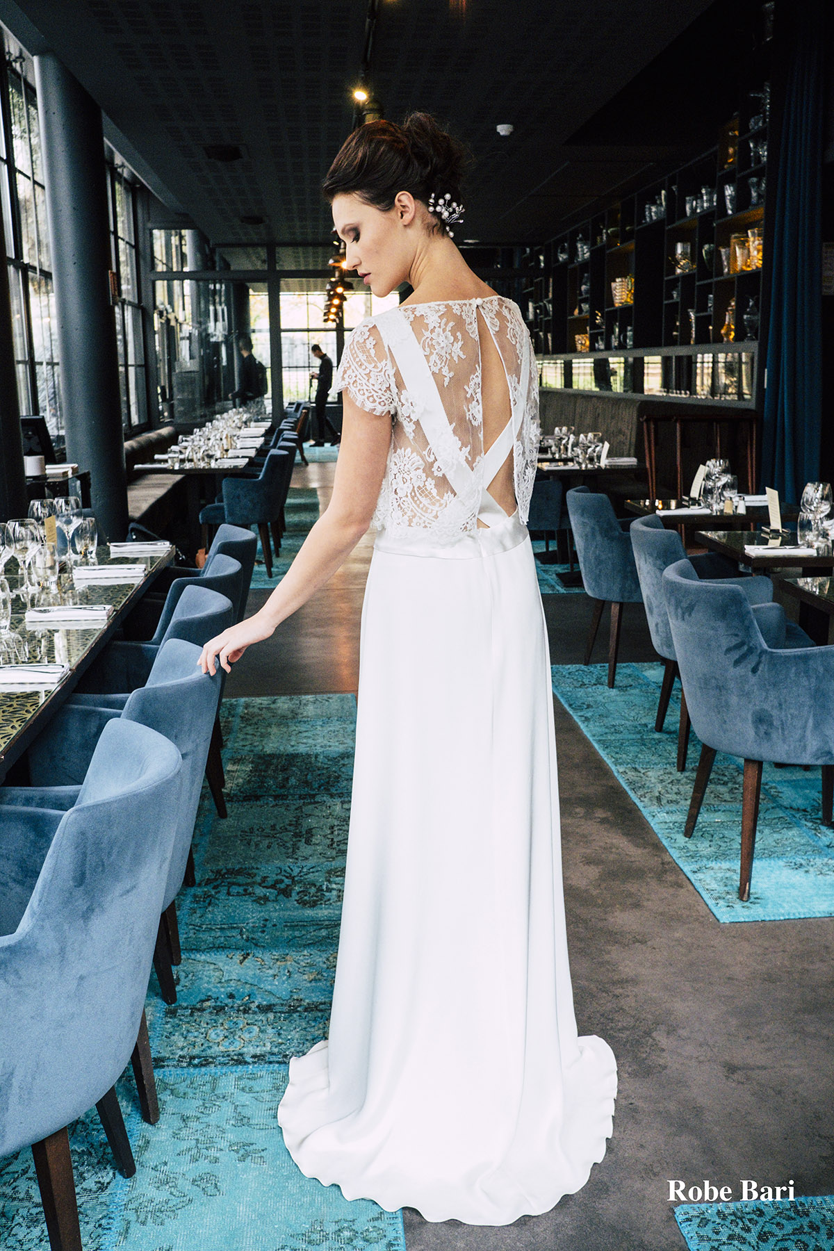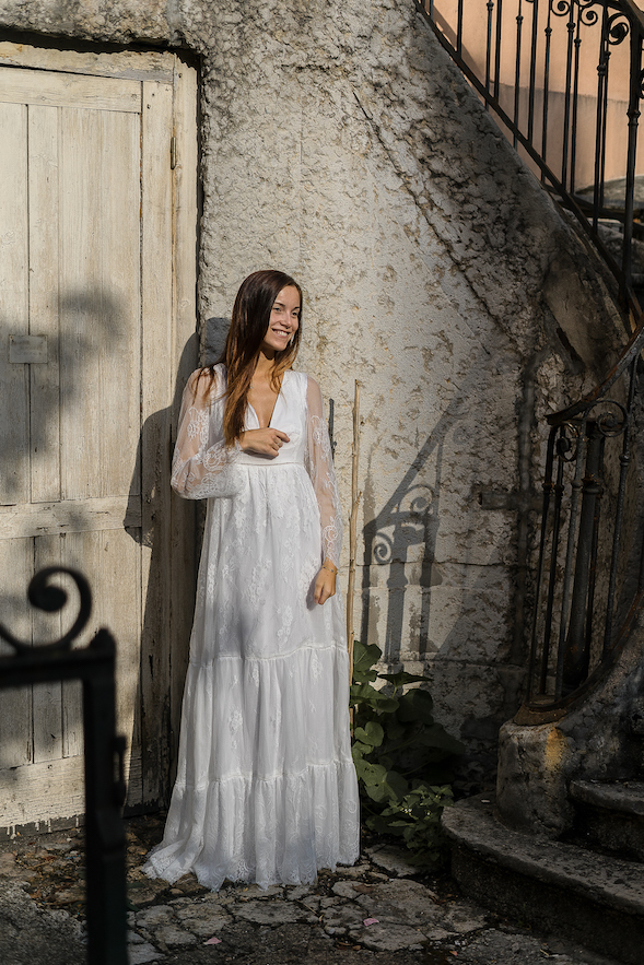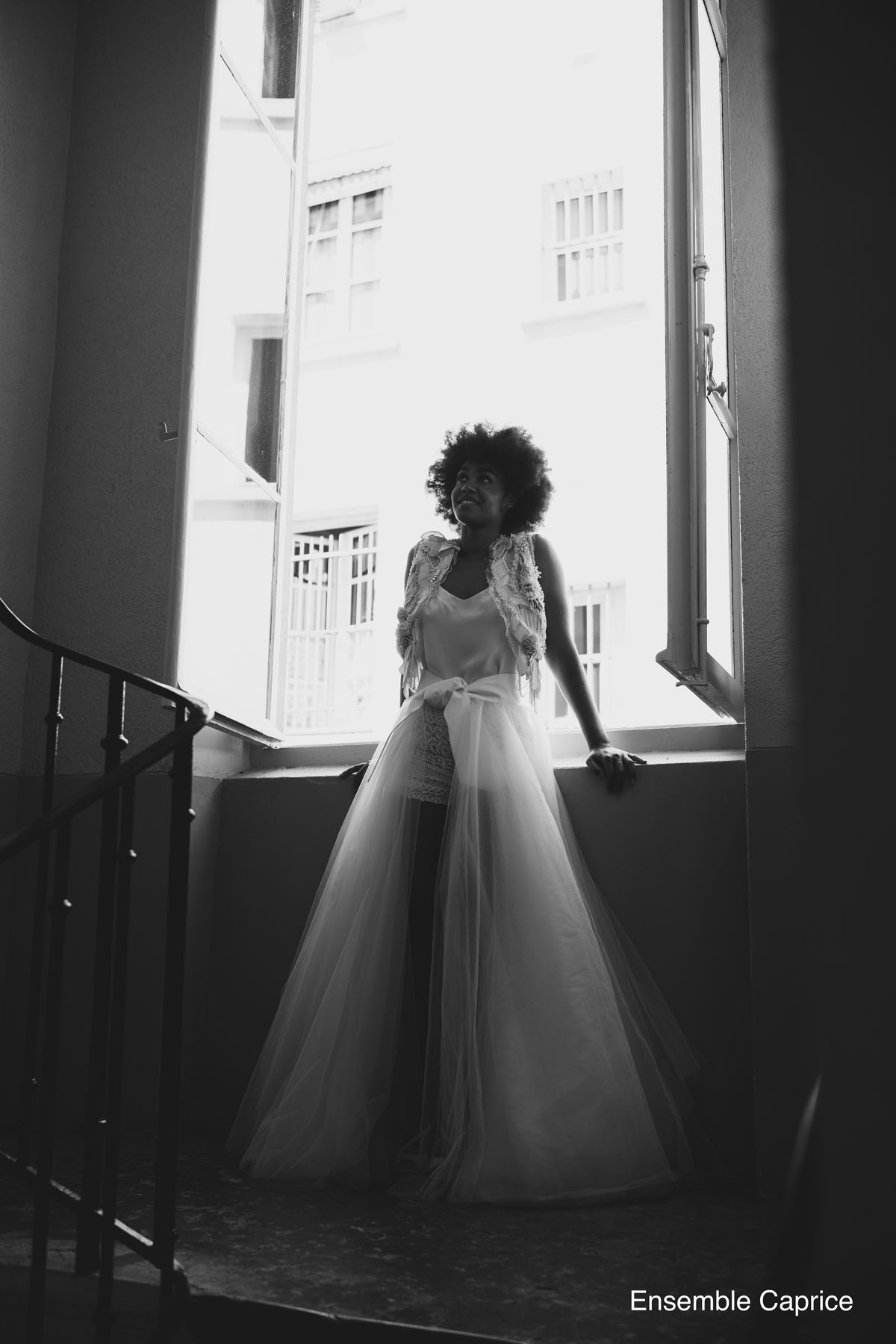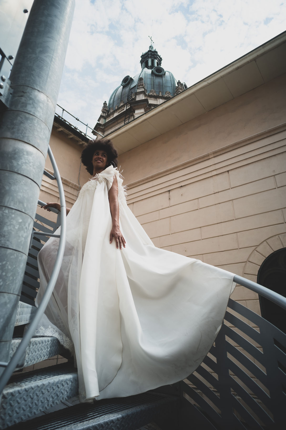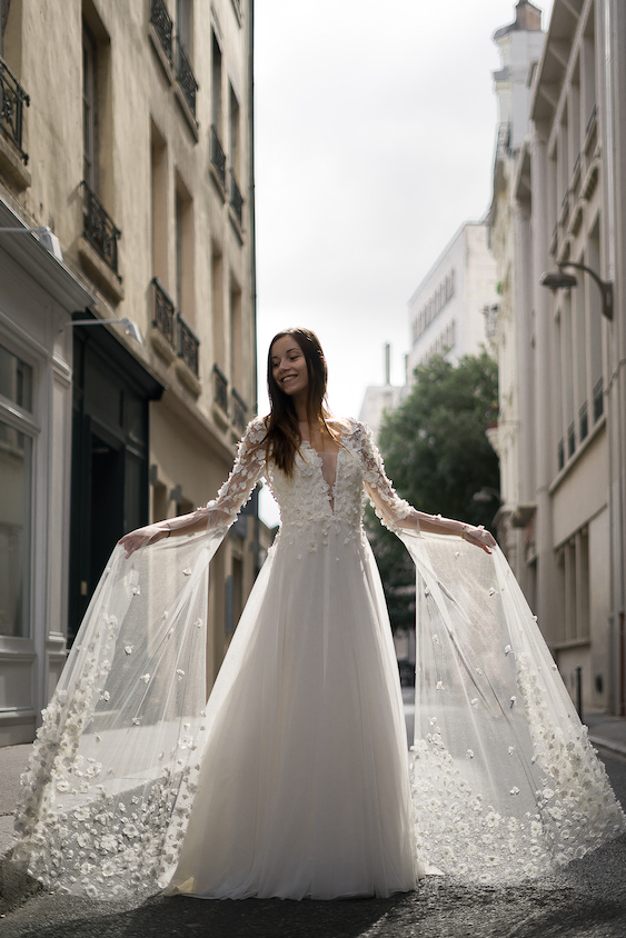 La mariée Max Chaoul se veut urbaine, dynamique et à le goût des robes audacieuses. Elle souhaite une tenue qui reflétera la magie du mariage avec des tissus aériens.