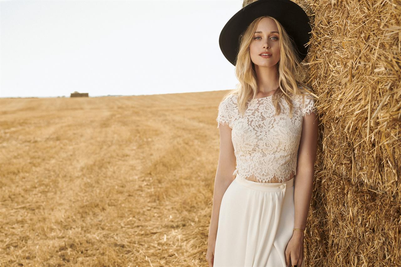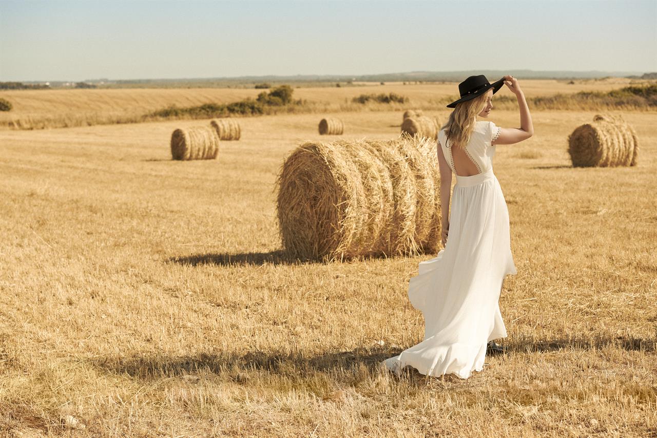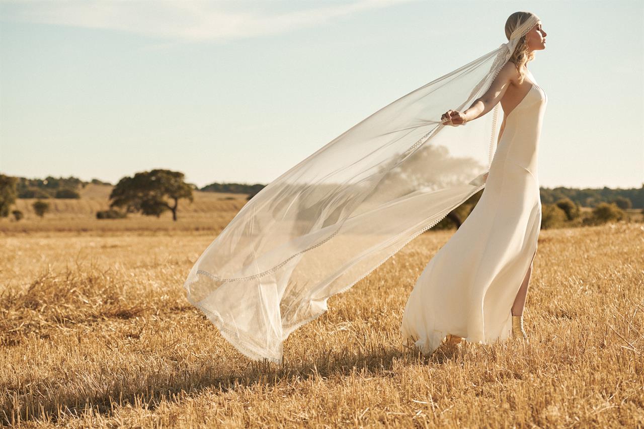 Pour la collection 2020, Rembo Styling nous propose un décor de vie sauvage avec une mariée libre et naturelle qui aime les grands espaces où elle peut respirer à pleins poumons et profiter de la vie. Ainsi, les robes se laissent porter par le vent et s’adaptent aux mouvements de la mariée. Les franges et les détails dentelés sont au rendez-vous pour des tenues à l’allure country.