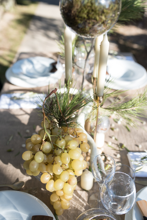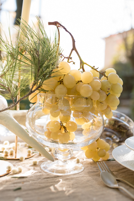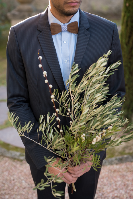 “Il s’agit d’un thème à la fois tendance et intemporel. Plusieurs possibilités s’offraient à nous pour la réalisation de notre shooting. Nous avons donc décidé de prendre ce qui nous semblait le plus judicieux pour le mettre en valeur. Le végétal est souvent relié à la nature, aux couleurs et matières naturelles telles que le vert et le blanc cassé, le lin brut, le feuillage et feuille primaire comme le pin, l’olivier, la mousse, les glands … Il était donc logique de s’inspirer de cet ensemble et d’en faire une belle harmonie afin de mettre en valeur ce projet. Nous avons tout de suite eu beaucoup d’inspiration. Chacune avait déjà une image bien particulière en tête de ce shooting.