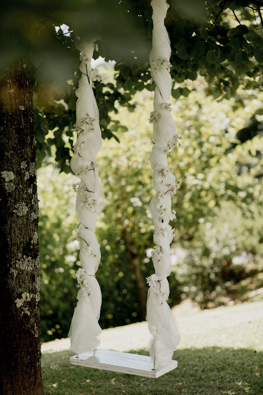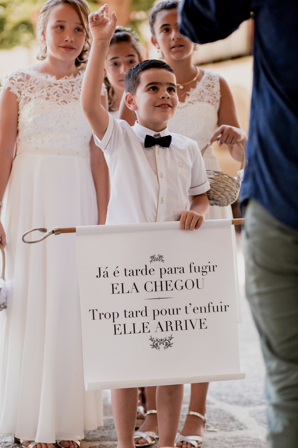 Nous nous sommes mariés au Portugal et plus précisément dans la région d’Amares car ce sont les origines familiales de Marc. Nous avons été charmés par les lieux de réception, la gentillesse des personnes et le sanctuaire où a eu lieu la cérémonie. En plus, la rue du domaine de réception porte le nom de la famille. Rires. Au-delà de ça, le civil ayant lieu en France et comme c’était un mariage de deux pays et de deux langues, il était bien de faire une partie de ce dernier également à l’étranger dans l’autre famille.