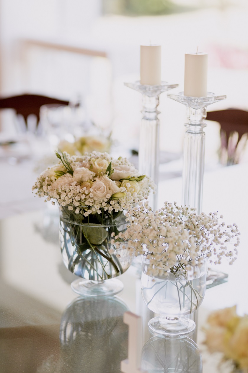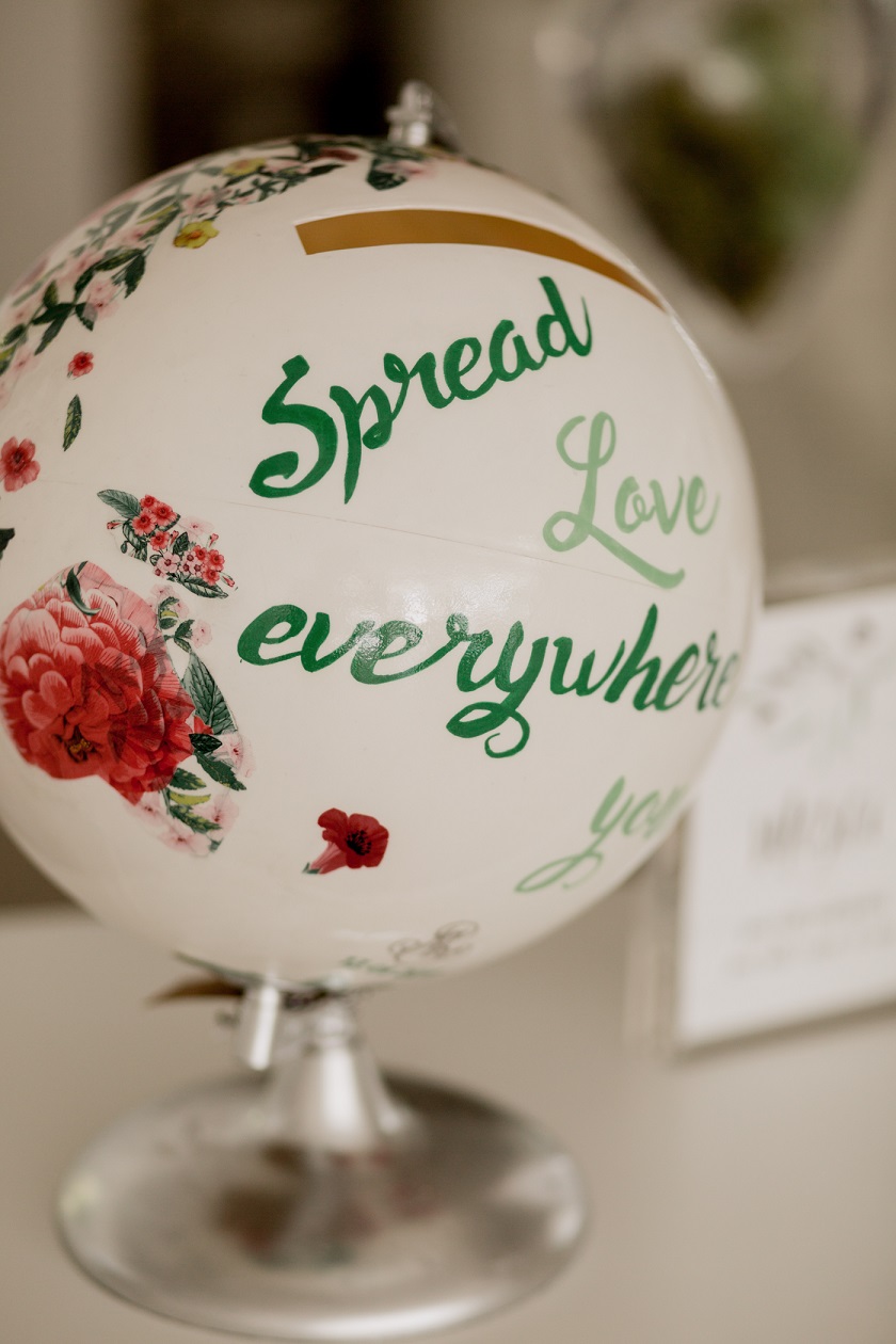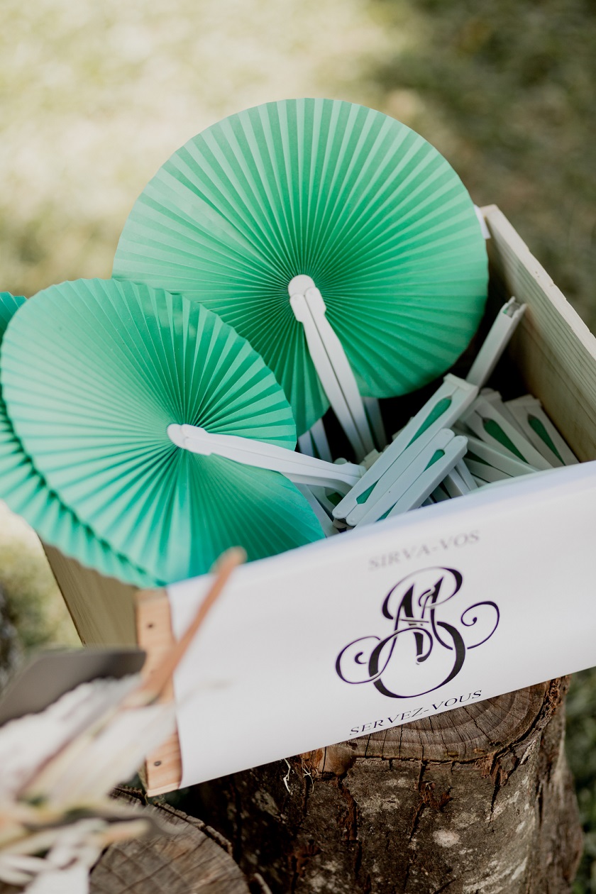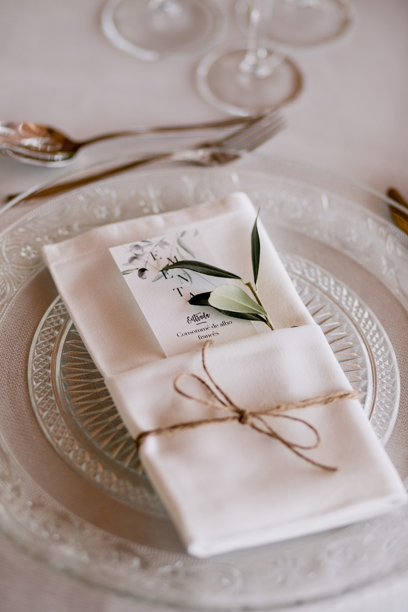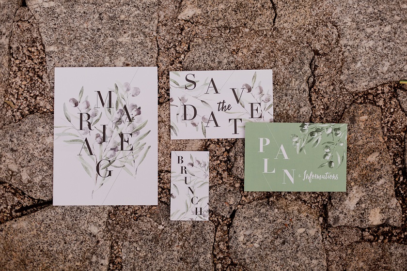 Nous n’avons pas vraiment choisi de thème mais plus des couleurs, le blanc et l’argent étaient notre base pour l’élégance et la simplicité. Puis, nous avons rajouté le vert, d’une part, pour le Portugal et ses oliviers et, d’autre part, pour faire honneur à l’entreprise des parents de Marc, dont le logo est de la même couleur. Puis, nous l’avons décliné sur toute notre papeterie de mariage avec la complicité de Marie Eve, nos éléments de décorations avec Tiana pour les nœuds papillons, tambour de mariage, etc.., Carole pour notre urne-globe.