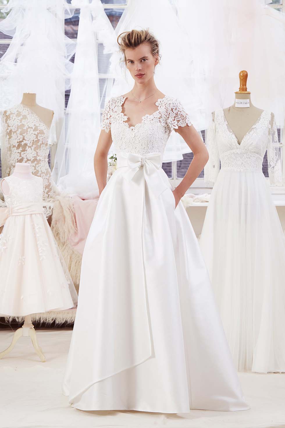 Aujourd’hui, nous vous proposons des robes aux noués plus ou moins structurés et souples pour vous aider dans le choix de votre tenue de mariage.