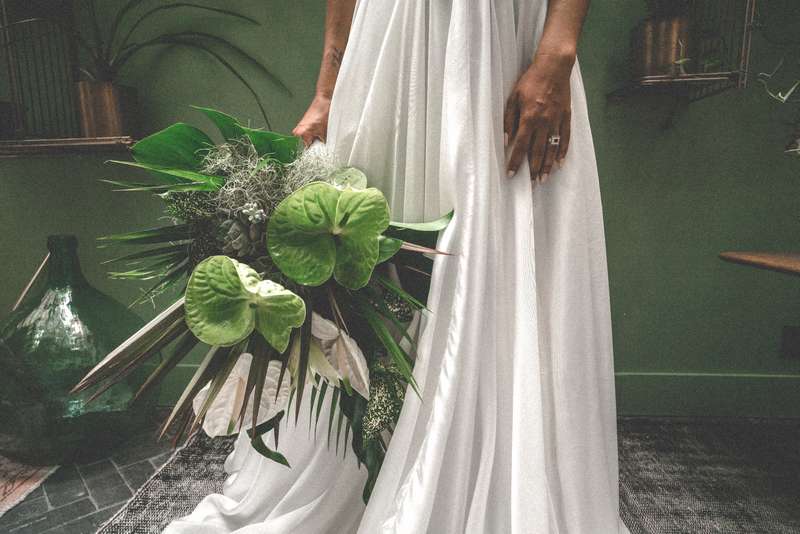 « Mes inspirations sont les photos d’ambiances californienne des années 70 en argentique, avec ses couleurs retro, grain, esprit libre et léger. L’idée avec toute l’équipe (en or) était de faire quelque chose de possible à reproduire pour des futurs mariés qui ont choisi ce thème. Bien sûr, tout en gardant mon style, mon grain. » Abraham Haben.