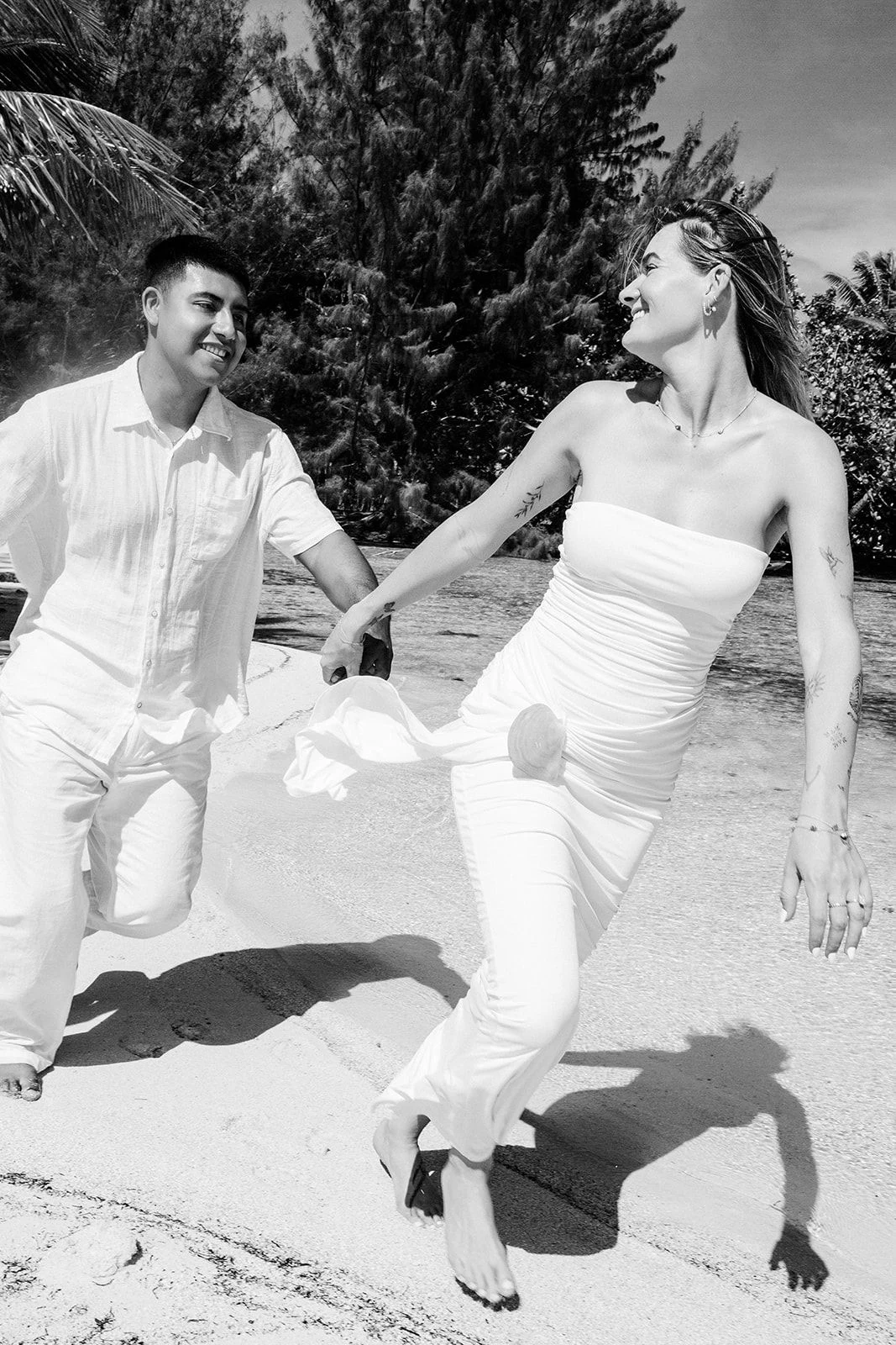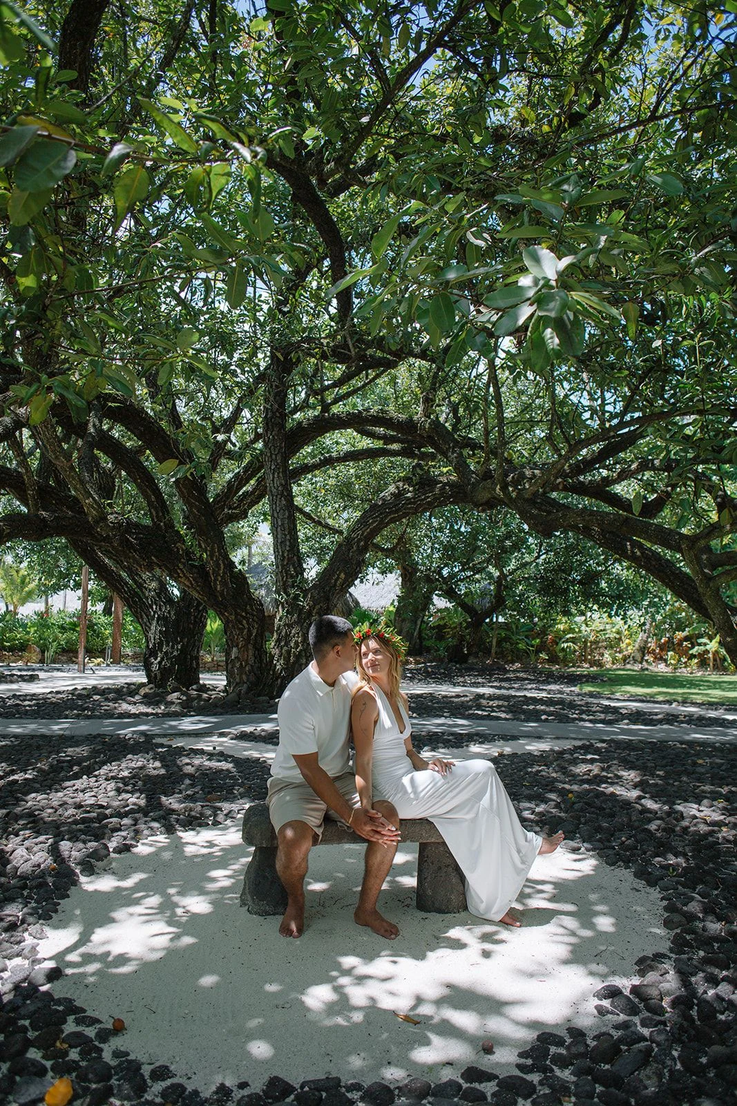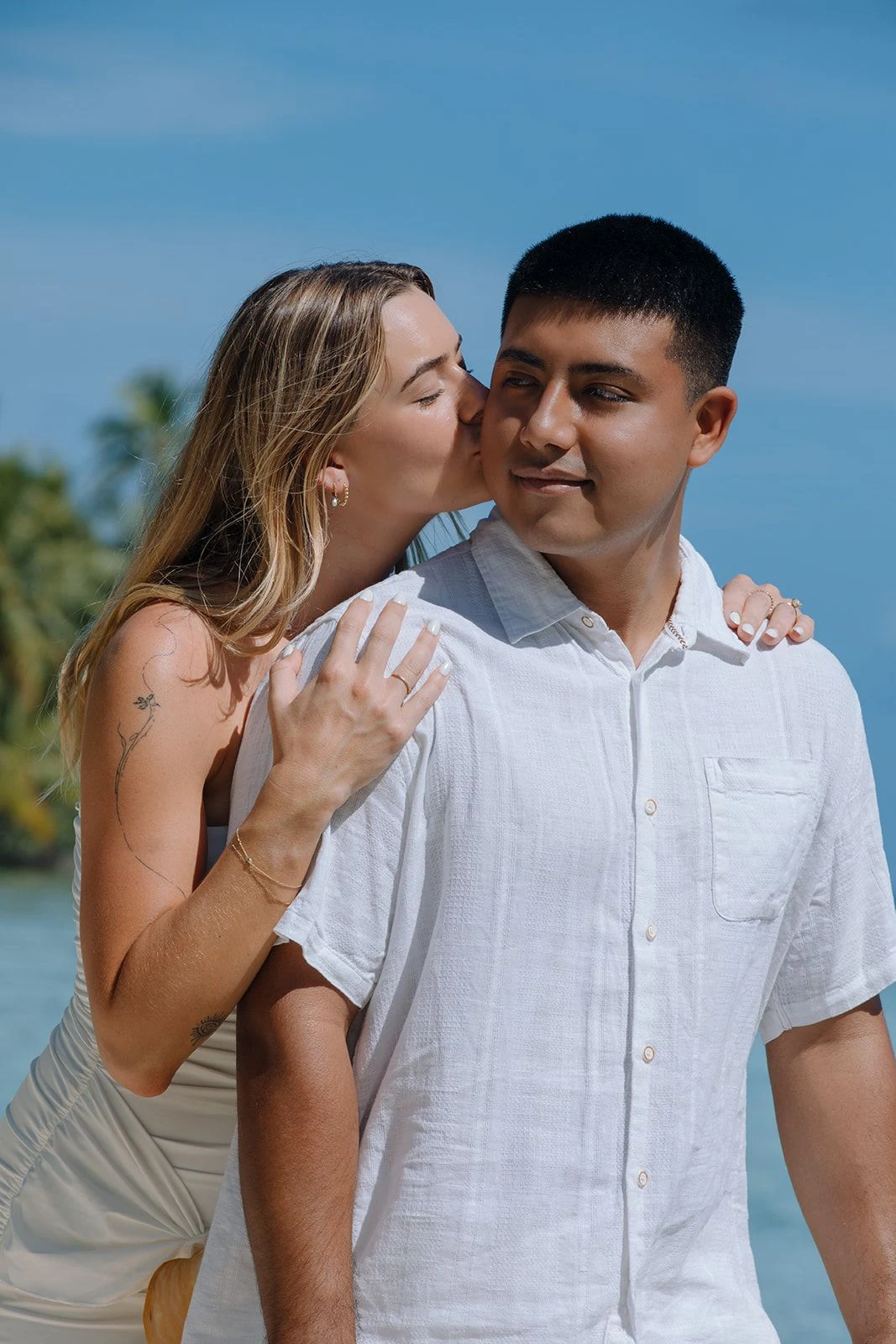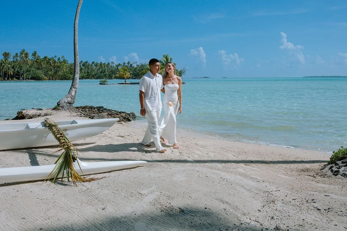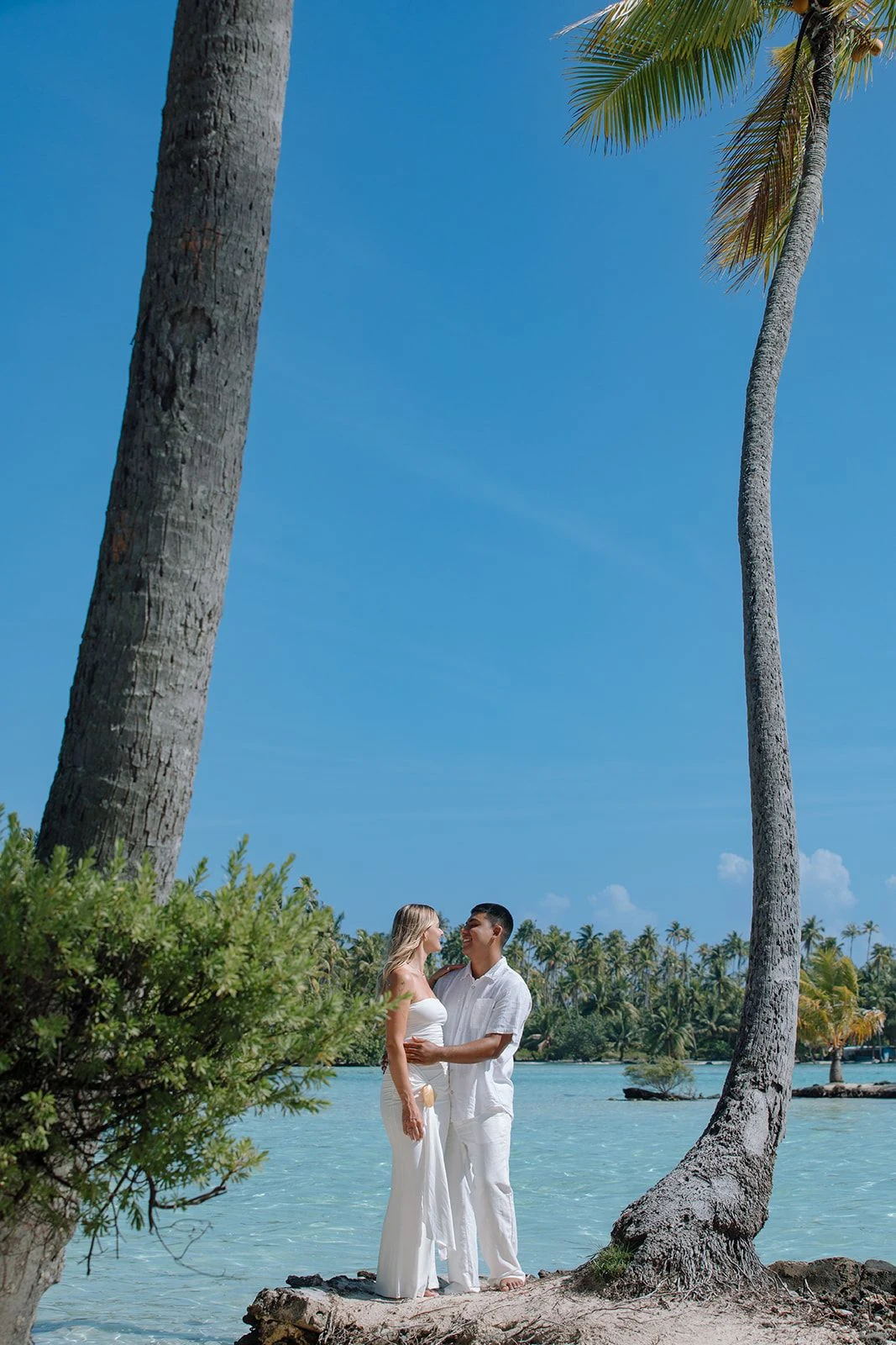 “Sierra et Josh… c’est une histoire qui commence bien avant cette séance. Ils se connaissent depuis l’âge de 12 ans, tombent amoureux à 18 ans, et depuis ils ne se sont plus lâchés. Tous les deux vivent à San Diego, en Californie. Sierra, elle, connaît la Polynésie presque par cœur : elle y vient chaque année depuis l’enfance avec sa famille. Quand Josh a demandé Sierra en mariage quelques jours avant leur séjour au Taha’a, la décision s’est imposée d’elle-même : c’est ici, dans cet hôtel et surtout en Polynésie que la famille de Sierra aime depuis longtemps, qu’ils allaient faire leurs photos de fiançailles. La Polynésie est le cadre idéal pour poser les premières images d’un nouveau chapitre.