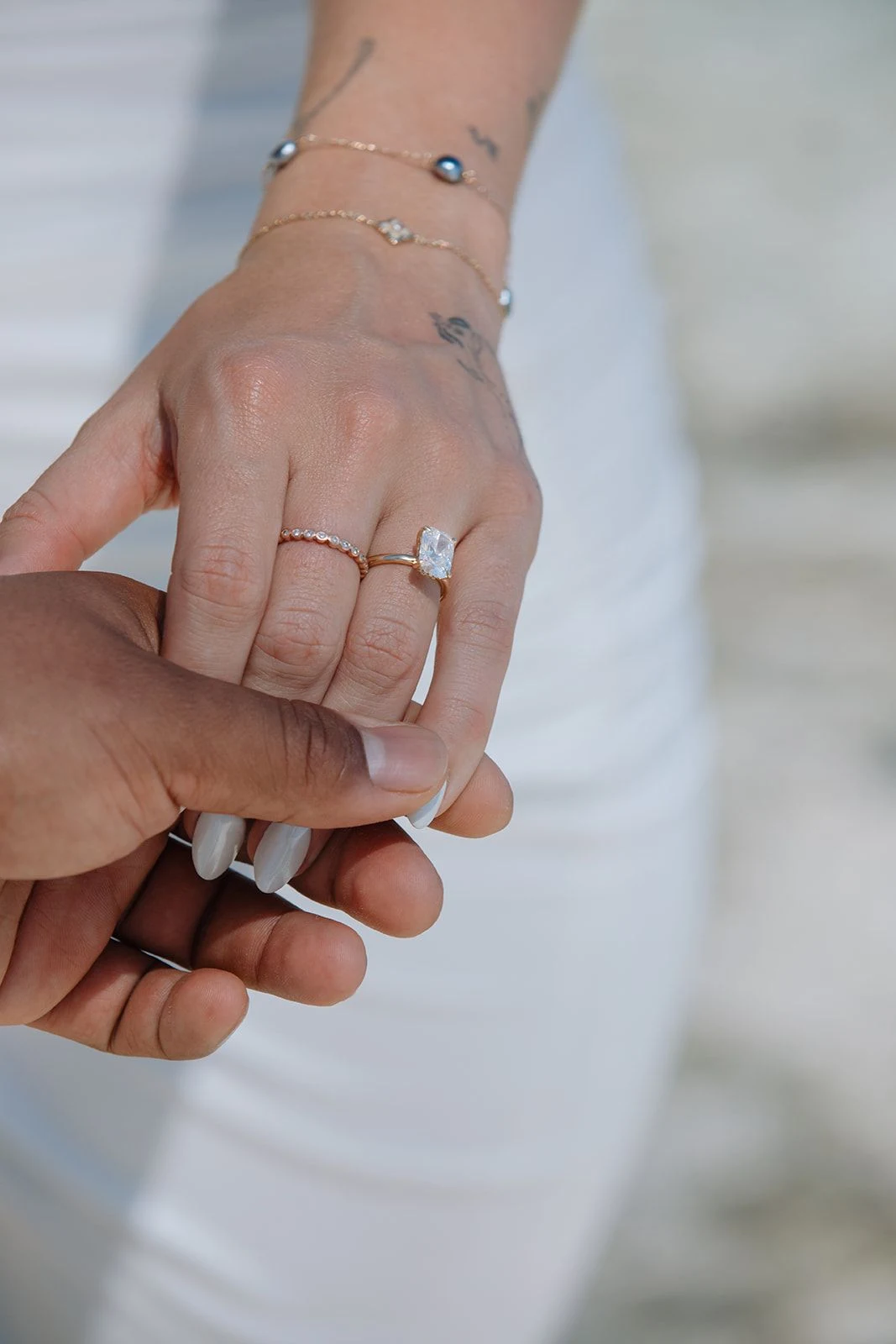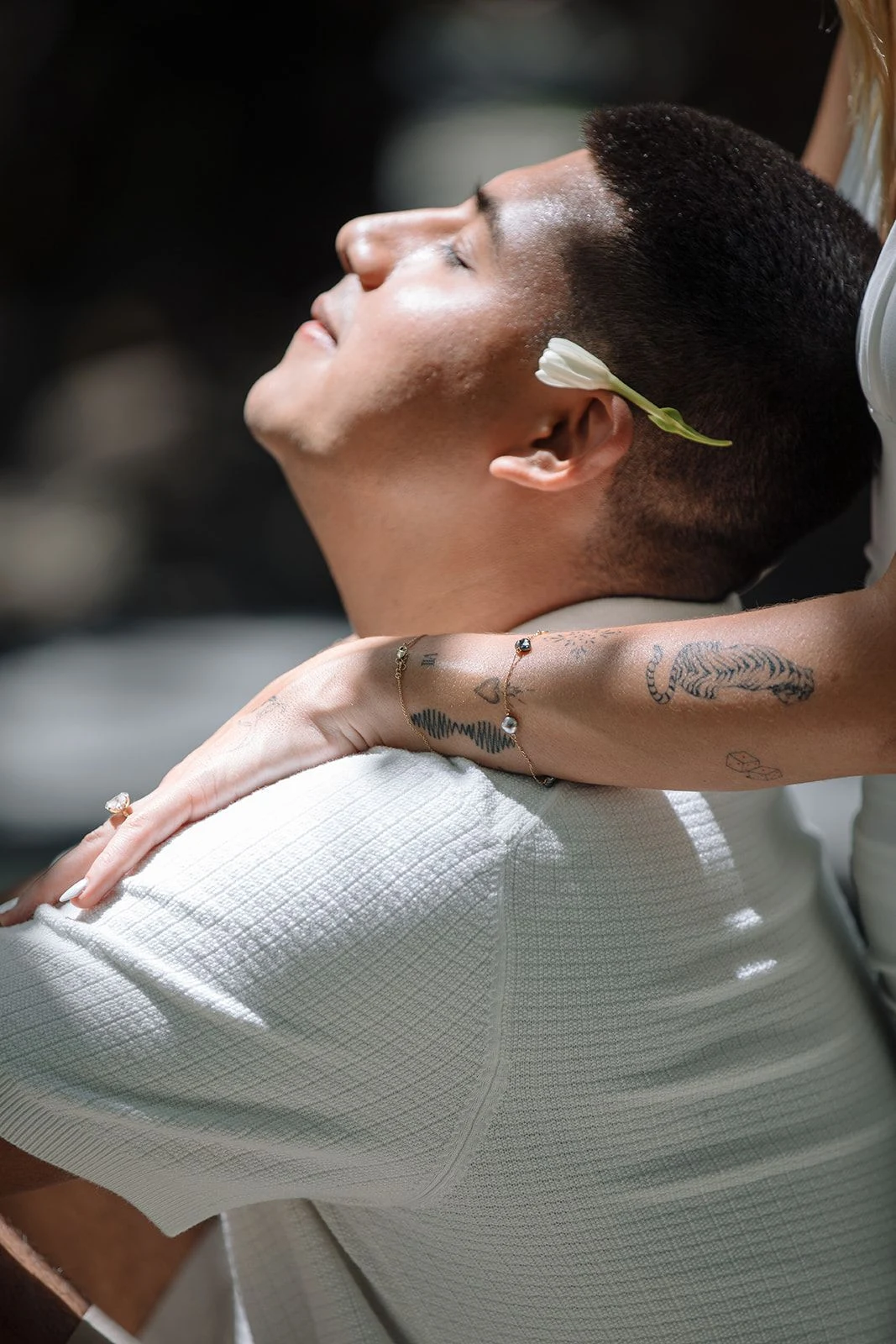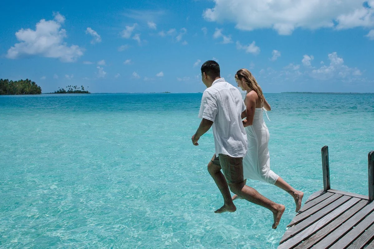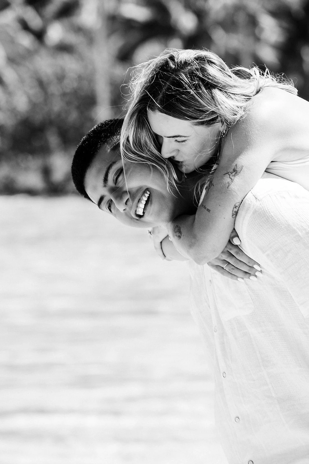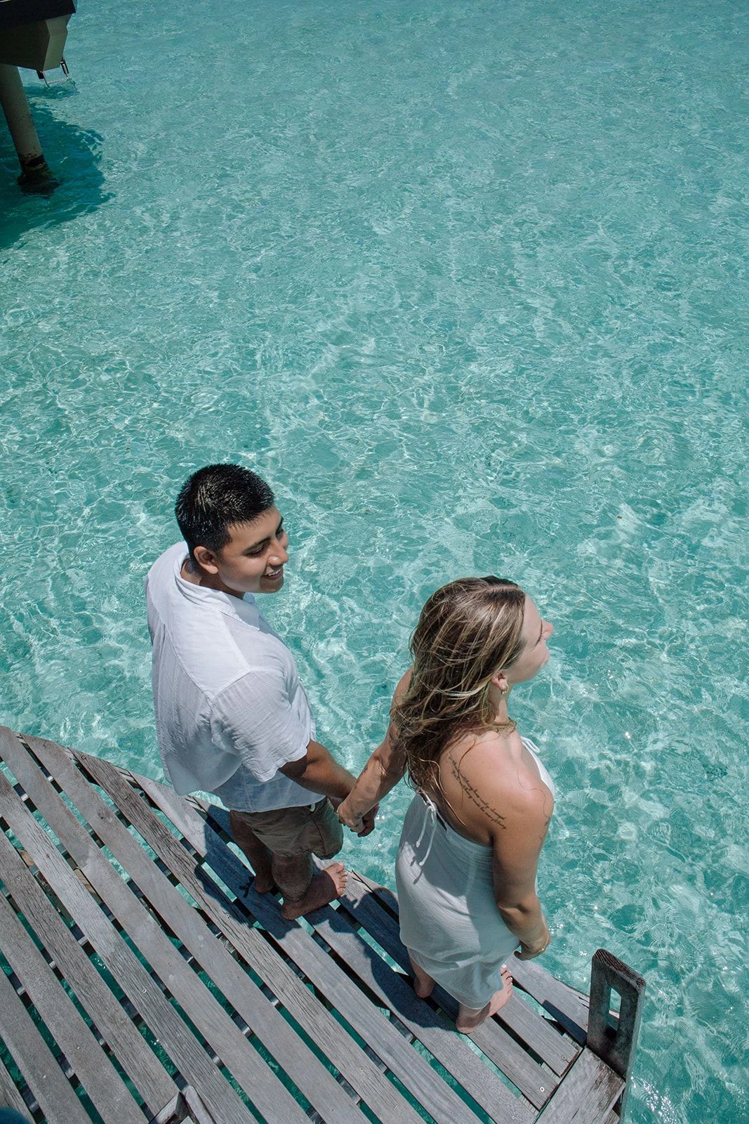 “Sierra et Josh… c’est une histoire qui commence bien avant cette séance. Ils se connaissent depuis l’âge de 12 ans, tombent amoureux à 18 ans, et depuis ils ne se sont plus lâchés. Tous les deux vivent à San Diego, en Californie. Sierra, elle, connaît la Polynésie presque par cœur : elle y vient chaque année depuis l’enfance avec sa famille. Quand Josh a demandé Sierra en mariage quelques jours avant leur séjour au Taha’a, la décision s’est imposée d’elle-même : c’est ici, dans cet hôtel et surtout en Polynésie que la famille de Sierra aime depuis longtemps, qu’ils allaient faire leurs photos de fiançailles. La Polynésie est le cadre idéal pour poser les premières images d’un nouveau chapitre.