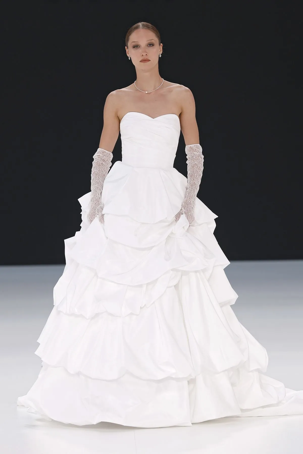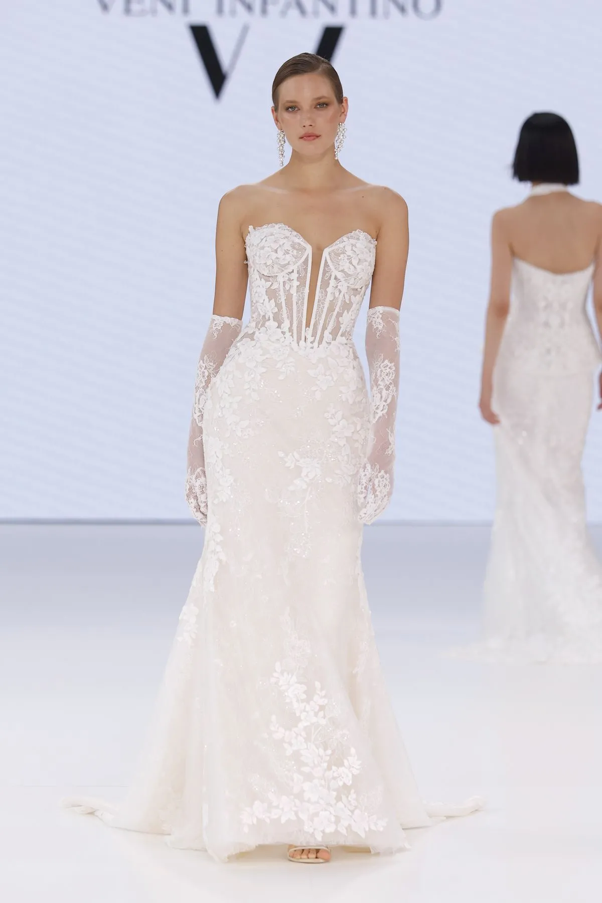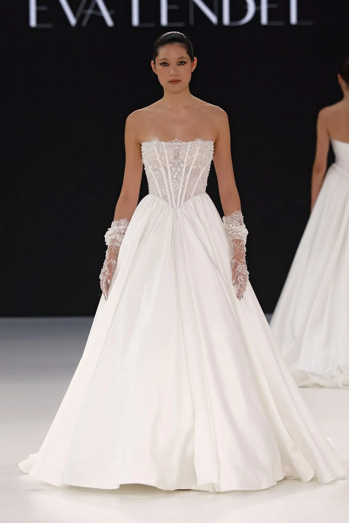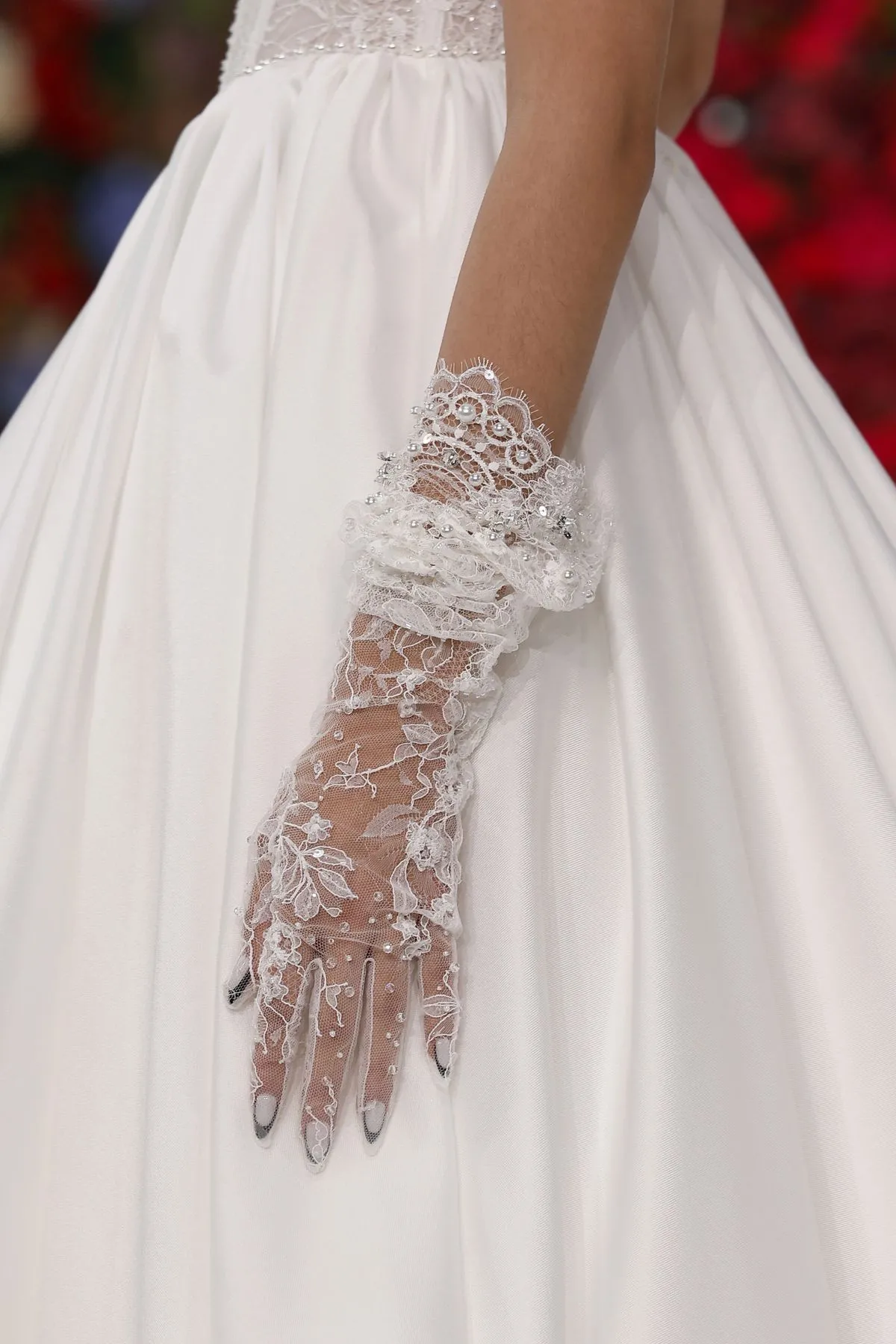 La Barcelona Bridal Fashion Week 2025, véritable baromètre des tendances internationales, a confirmé cet engouement. De nombreux créateurs y ont présenté des silhouettes habillées de gants élégants et couture, preuve que cet accessoire revient sur le devant de la scène avec modernité et panache.