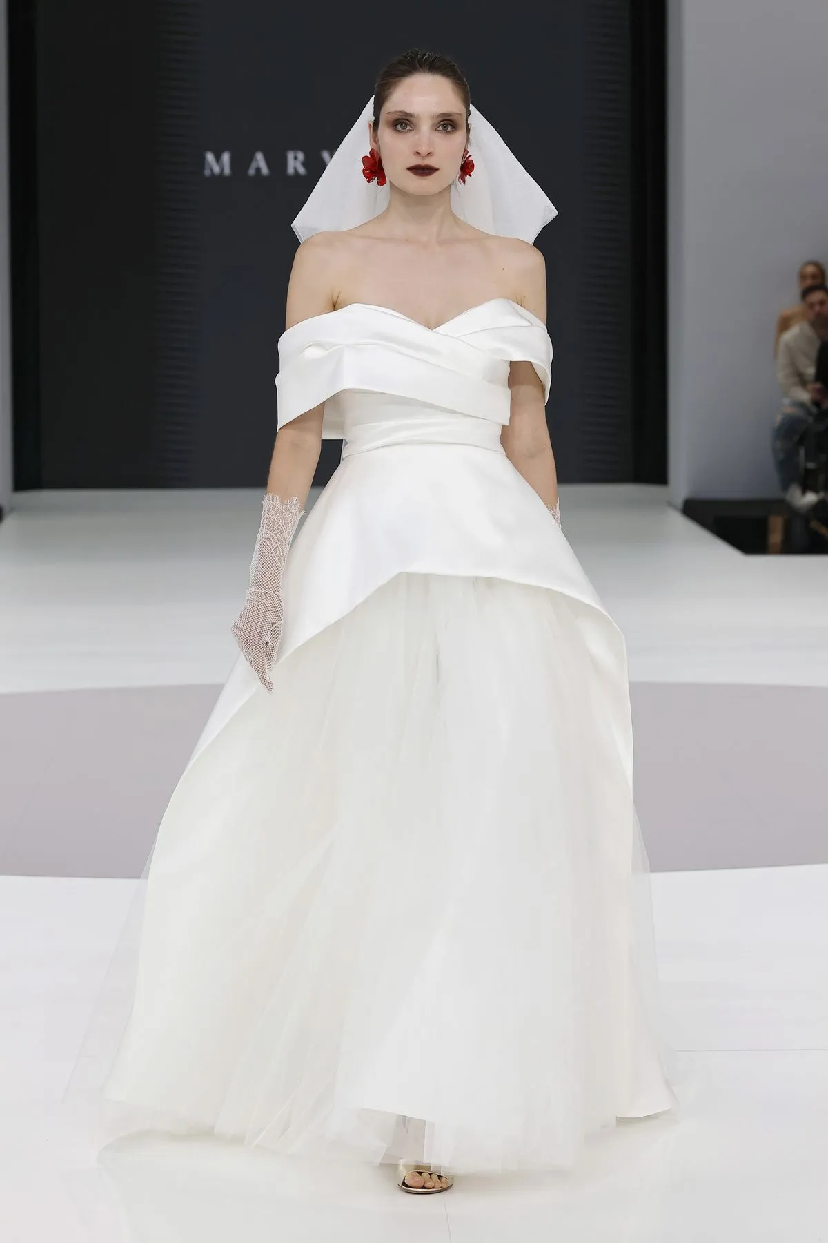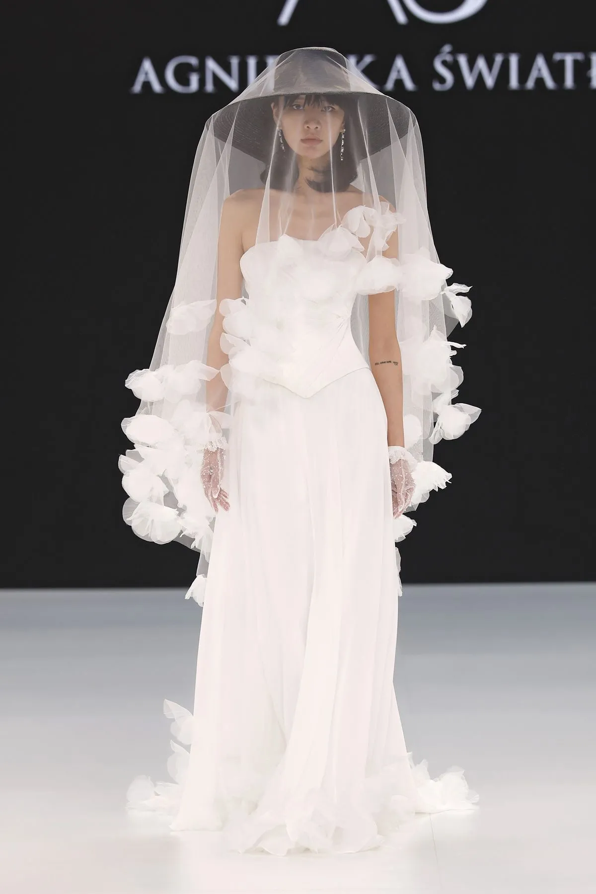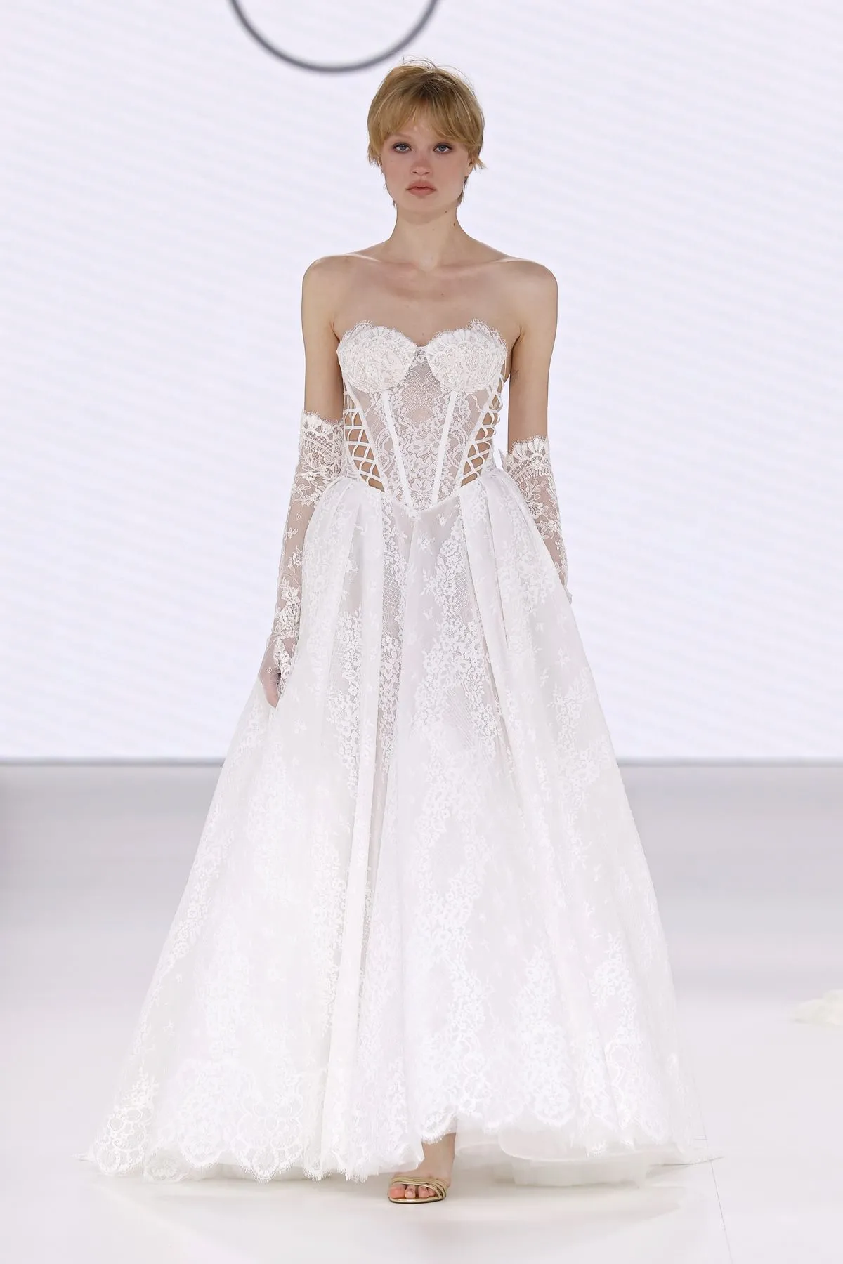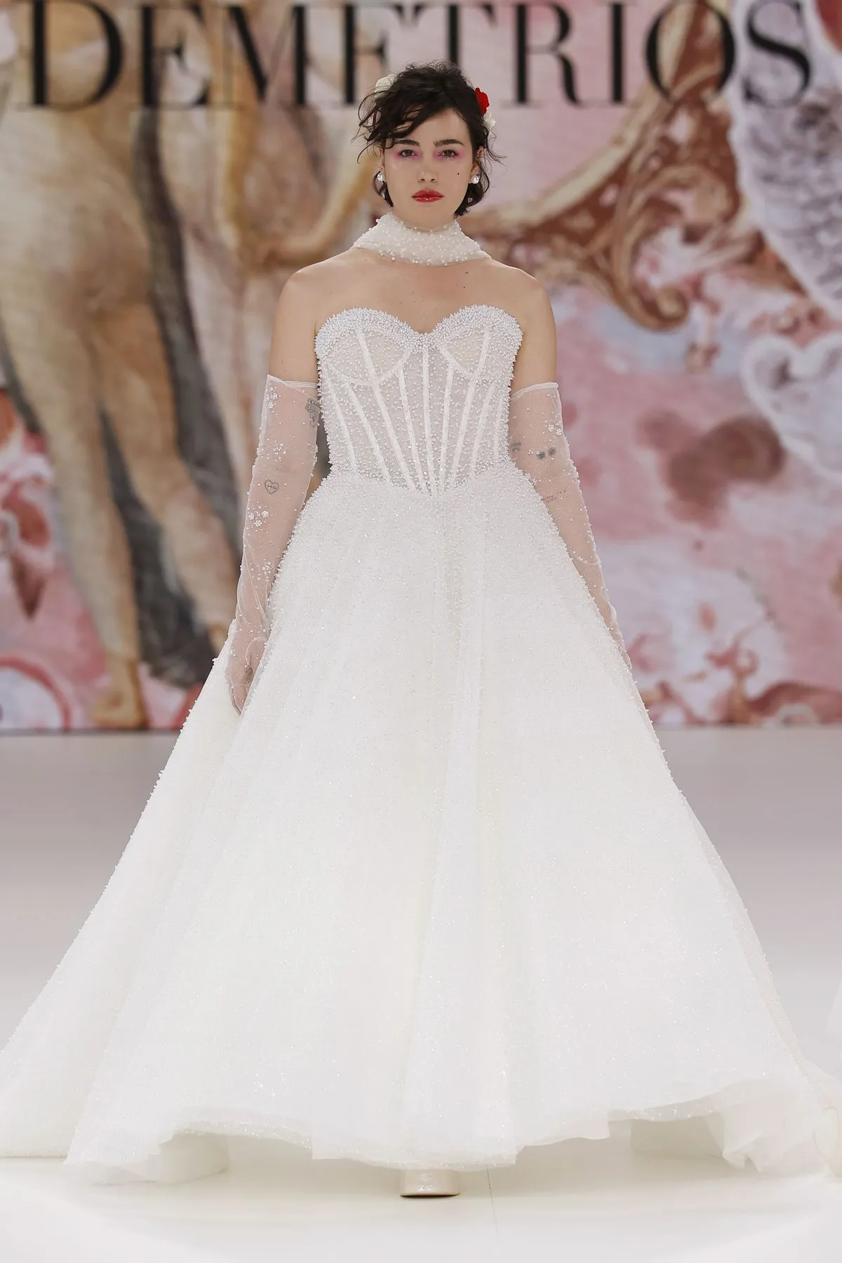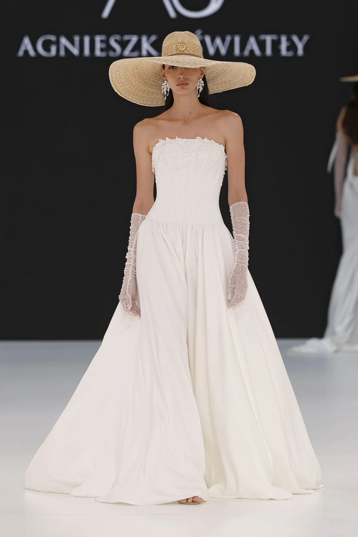 La Barcelona Bridal Fashion Week 2025, véritable baromètre des tendances internationales, a confirmé cet engouement. De nombreux créateurs y ont présenté des silhouettes habillées de gants élégants et couture, preuve que cet accessoire revient sur le devant de la scène avec modernité et panache.