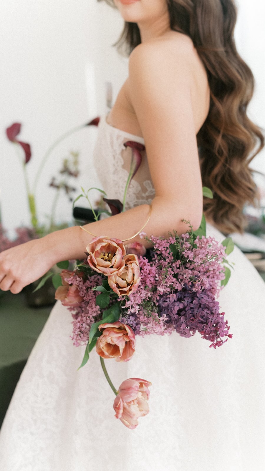 Ce bouquet revisité ne se contente pas d’être un simple accessoire floral. Il devient une pièce forte, au même titre que la robe ou les chaussures. Le bouquet pochette se coordonne à la tenue, à la palette de couleurs du mariage, voire à l’univers complet du couple : bohème, urbain, minimaliste, etc.