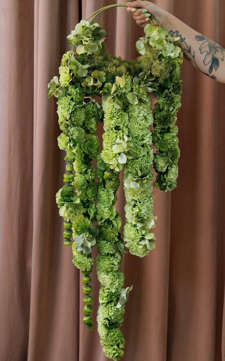 Chaque création devient une extension du look de la mariée, un objet sur mesure entre œuvre végétale et accessoire mode.